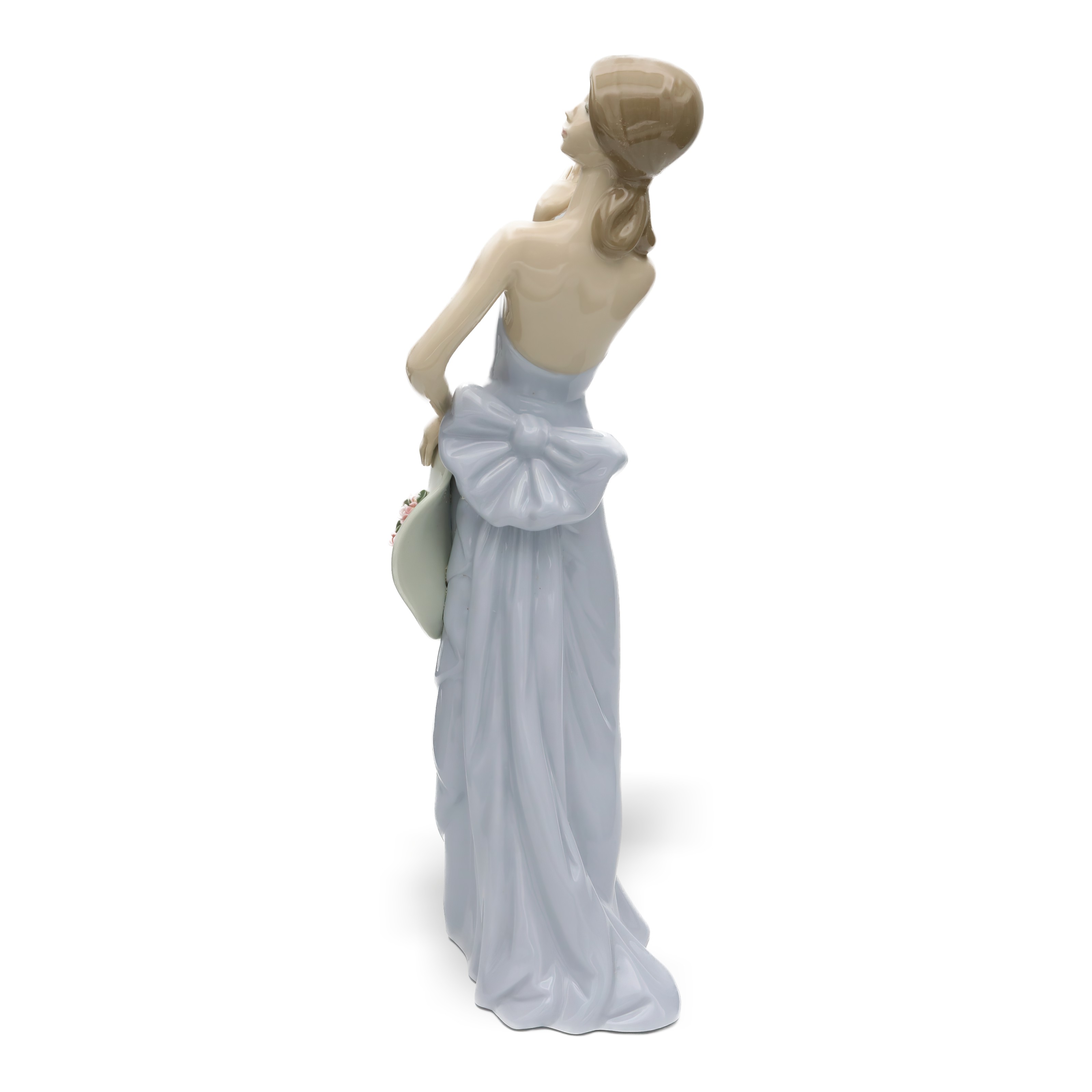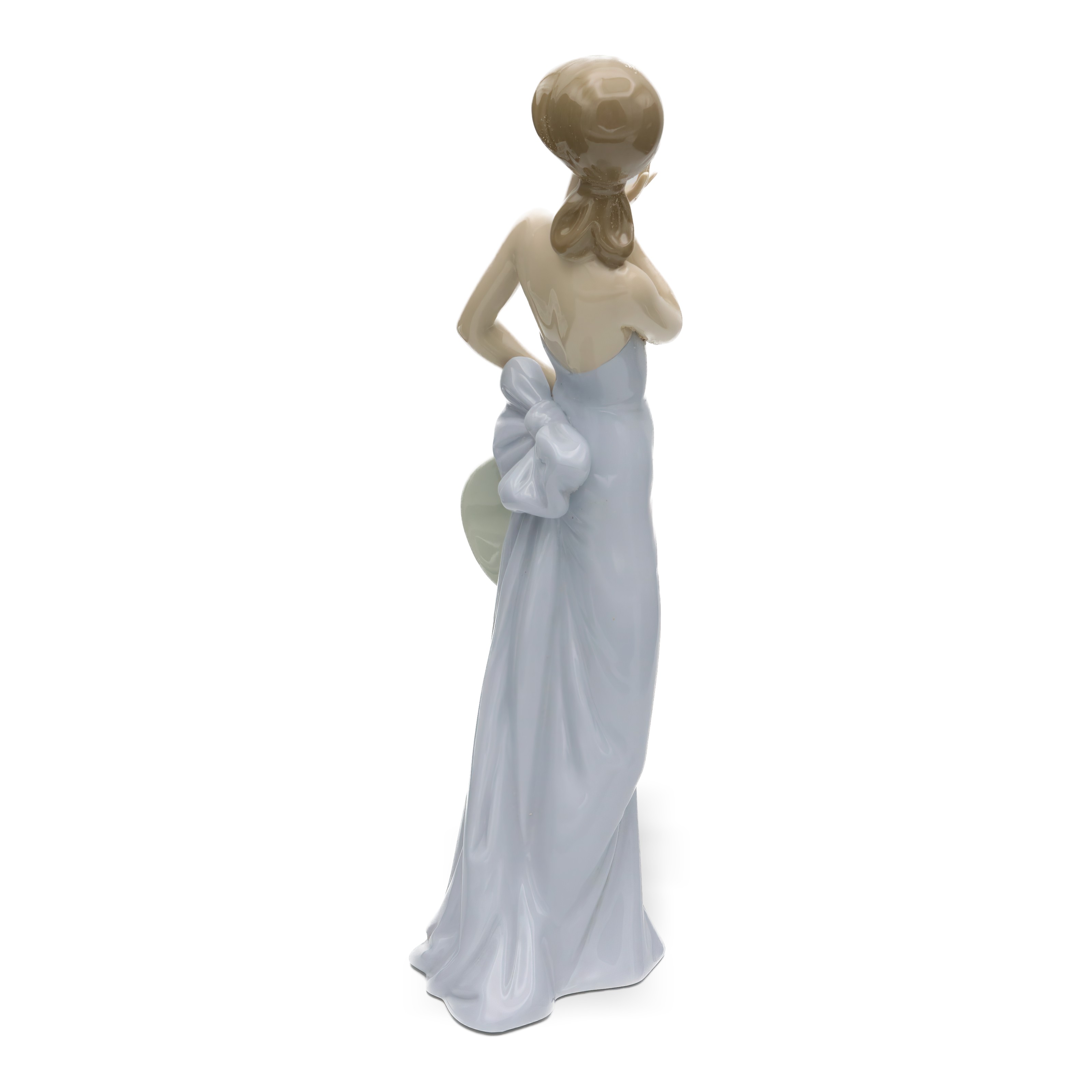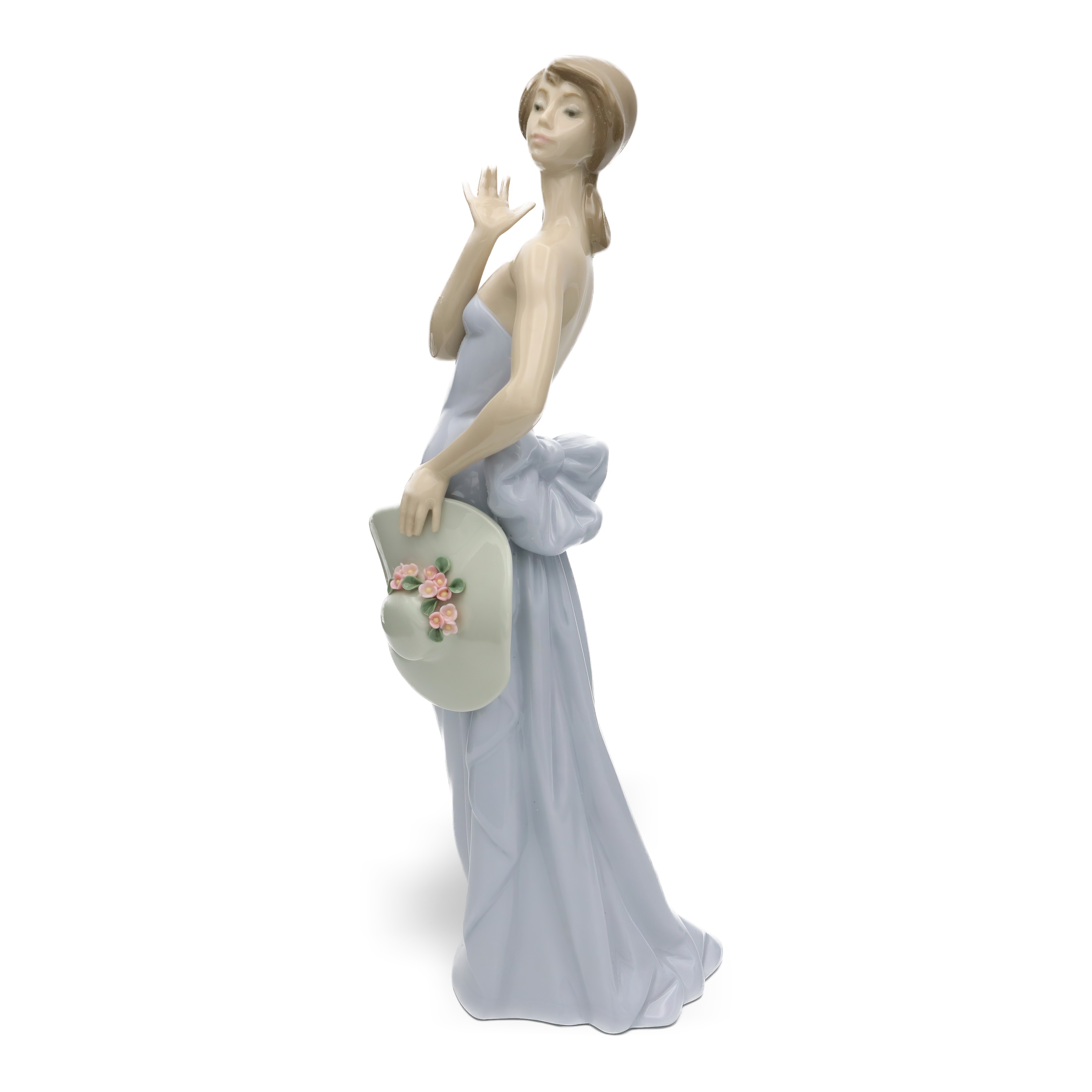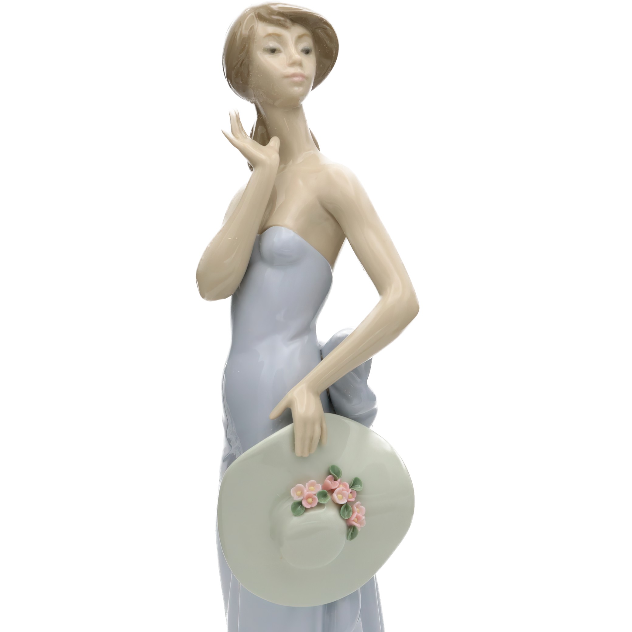 This Lladro porcelain figurine, known as the “Elegant Coquette Girl Holding a Hat,” was crafted in 1970, capturing the grace and charm of another era. Standing at 8.5 inches tall, it’s a true testament to the intricate artistry of its time, depicting a young woman exuding elegance with every detail—from the gentle curve of her hand to the delicate blossoms on her hat. Made with the finest porcelain and boasting a near-mint condition despite its age, this piece is a delightful fusion of art and nostalgia. Having been retired, it adds an extra layer of rarity and value for collectors, making it not just a decorative piece but also a prized artifact that echoes the sophisticated style of the early ’70s.