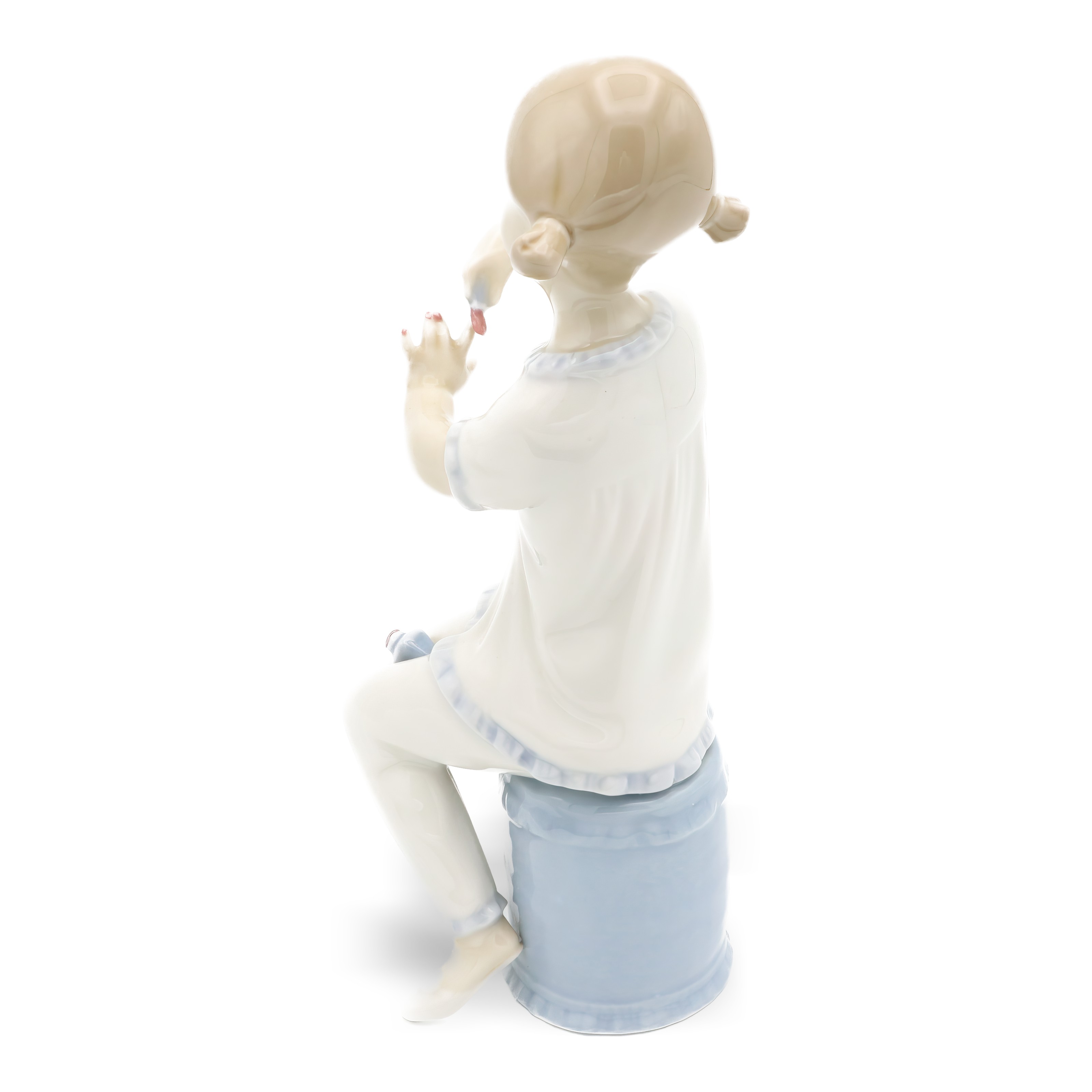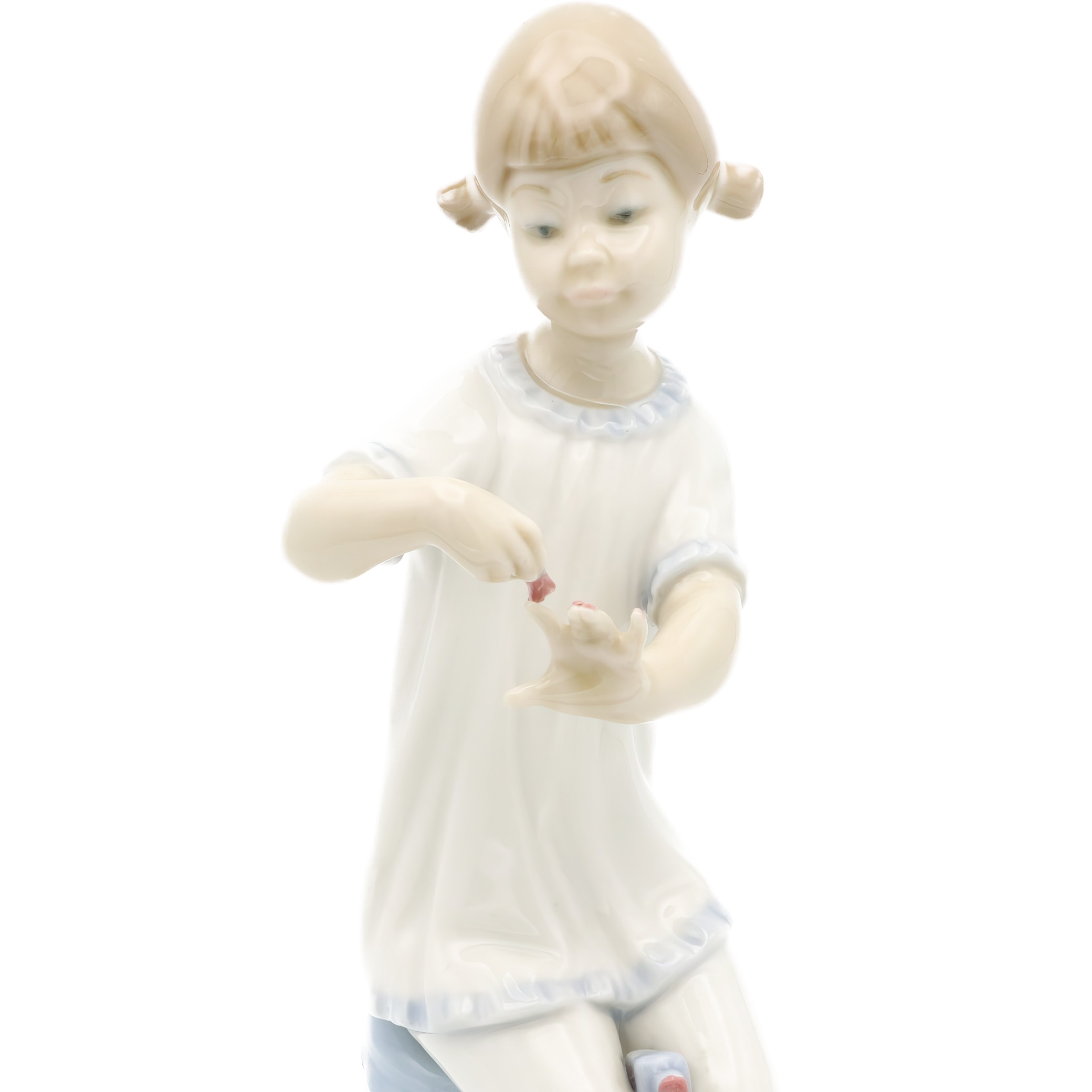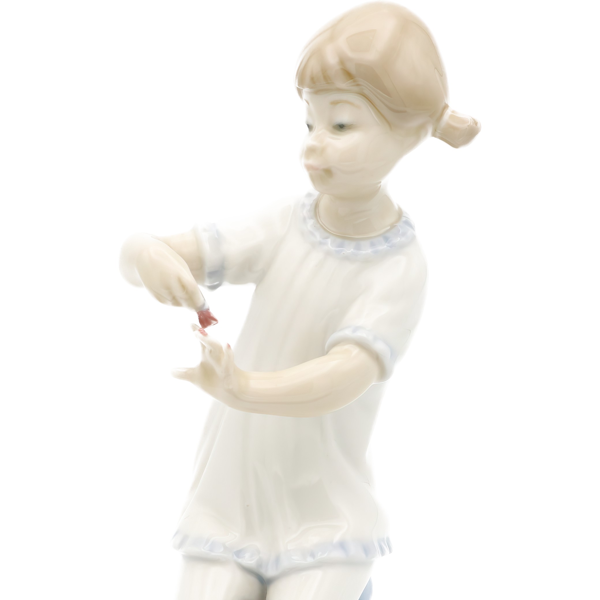 Given its age, dating back to over four decades, and its status as a retired piece, the “Girl Painting Nails” figurine holds significant value both monetarily and sentimentally. Collectors of vintage items often seek out pieces like this for their rarity and the history they represent. In the art and collectibles market, owning a Lladro piece is akin to possessing a small piece of history, encapsulating the artistic trends and cultural sentiments of its time.