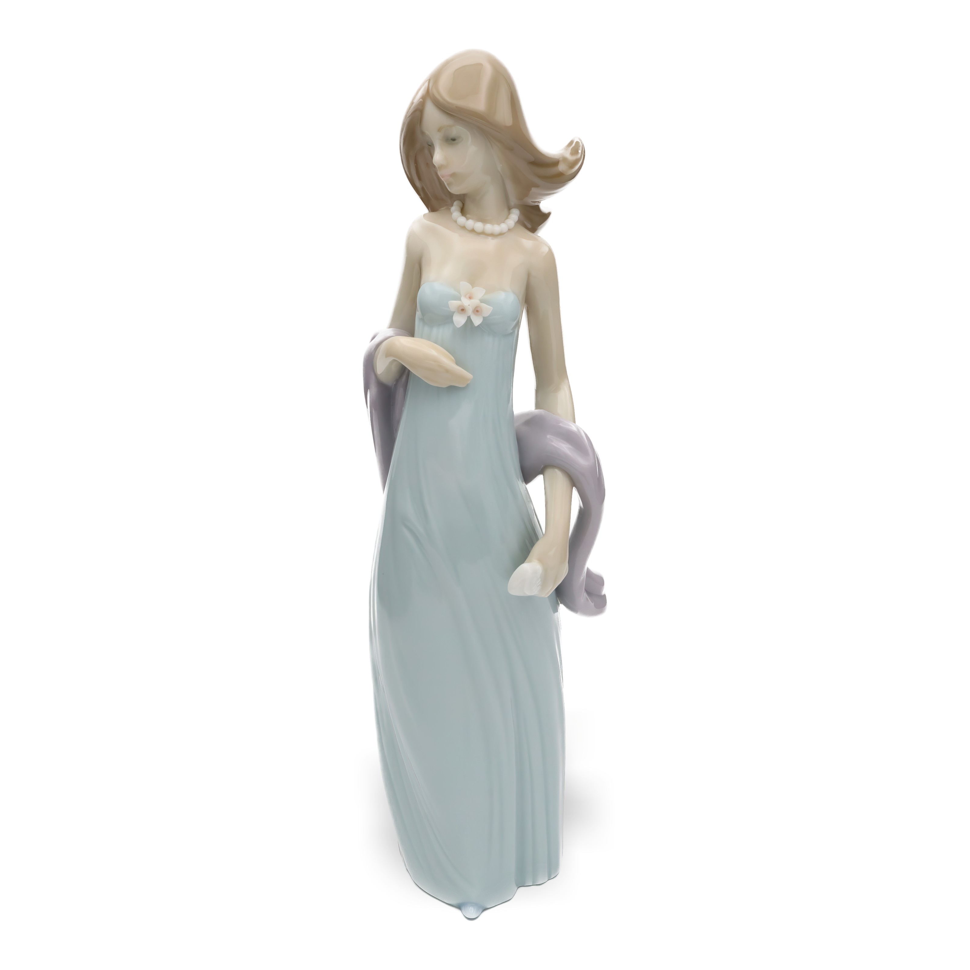 Lladro is a well-respected Spanish brand renowned for producing high-quality porcelain figurines. Founded in 1953 by three brothers in Valencia, the company quickly gained international popularity for its exquisite craftsmanship and intricate designs. Each piece is crafted with meticulous attention to detail, often showcasing themes of romance, nature, and various cultural motifs. The Lladro Ingenue Woman Figurine belongs to a line of collectible sculptures that have attracted a loyal following among enthusiasts and collectors alike. These figurines are often considered vintage treasures, especially those, like this one, which have been retired from production.