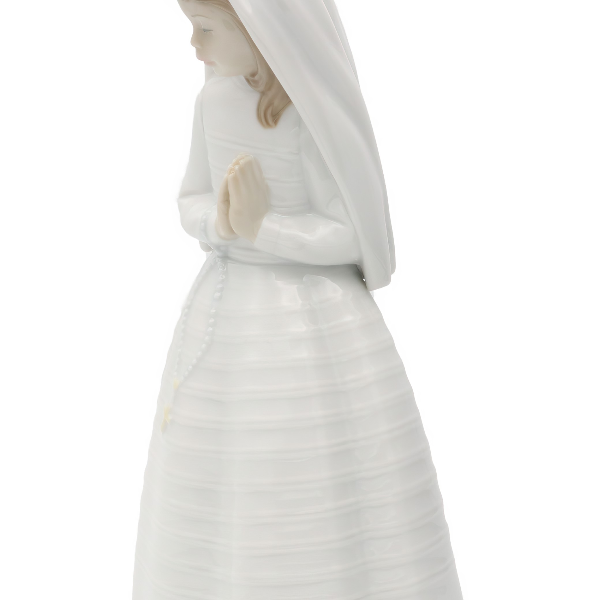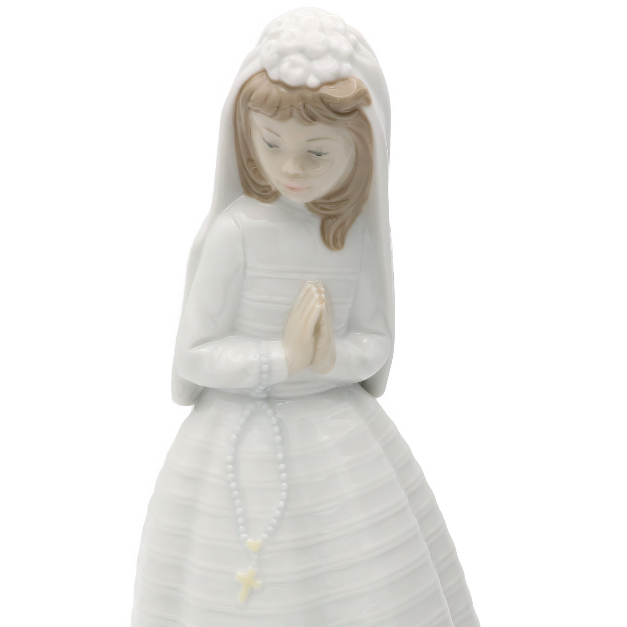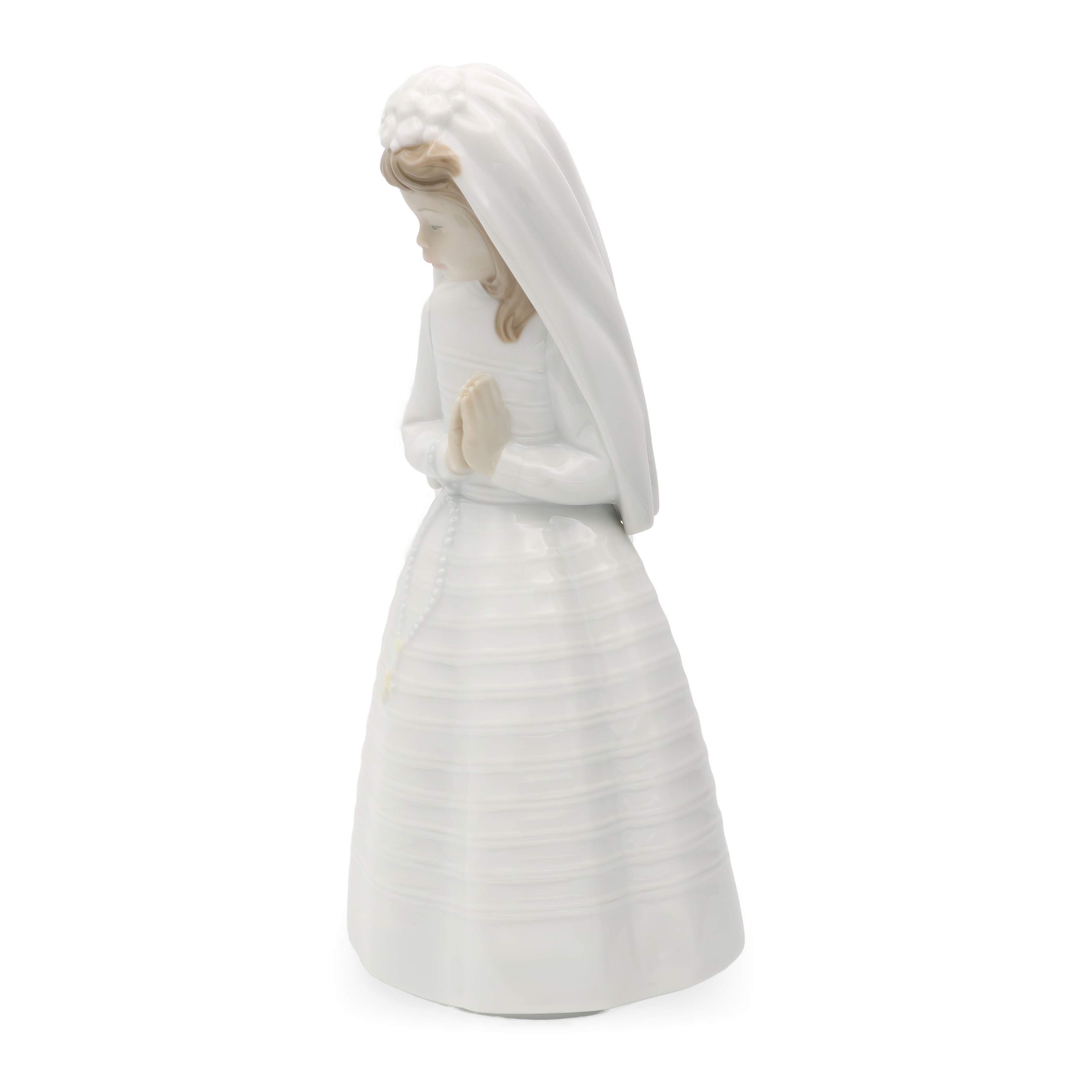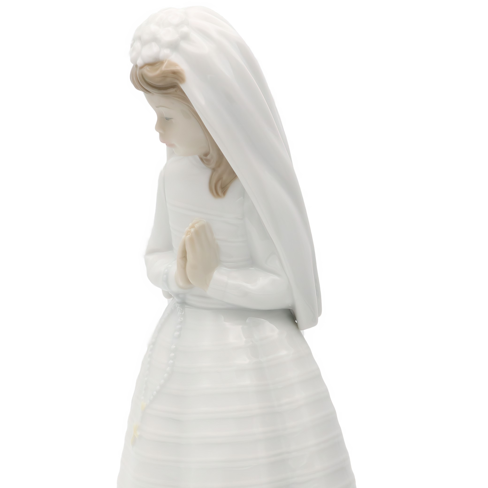 The age of such a vintage item adds to its charm, sitting at the intersection of art and emotion. It invites nostalgia, perhaps reminding people of their own First Communion or religious ceremonies. Given its rarity, especially in excellent condition, it’s a prize among collectors. People often seek these kinds of artifacts not just for their aesthetic value, but for the stories and memories they encapsulate. Having this figurine on display is like having a piece of history, a reminder of faith and family gatherings from times past. For those who appreciate finer details, the intricate work on her dress and the serene expression are testaments to Lladro’s mastery in porcelain artistry.