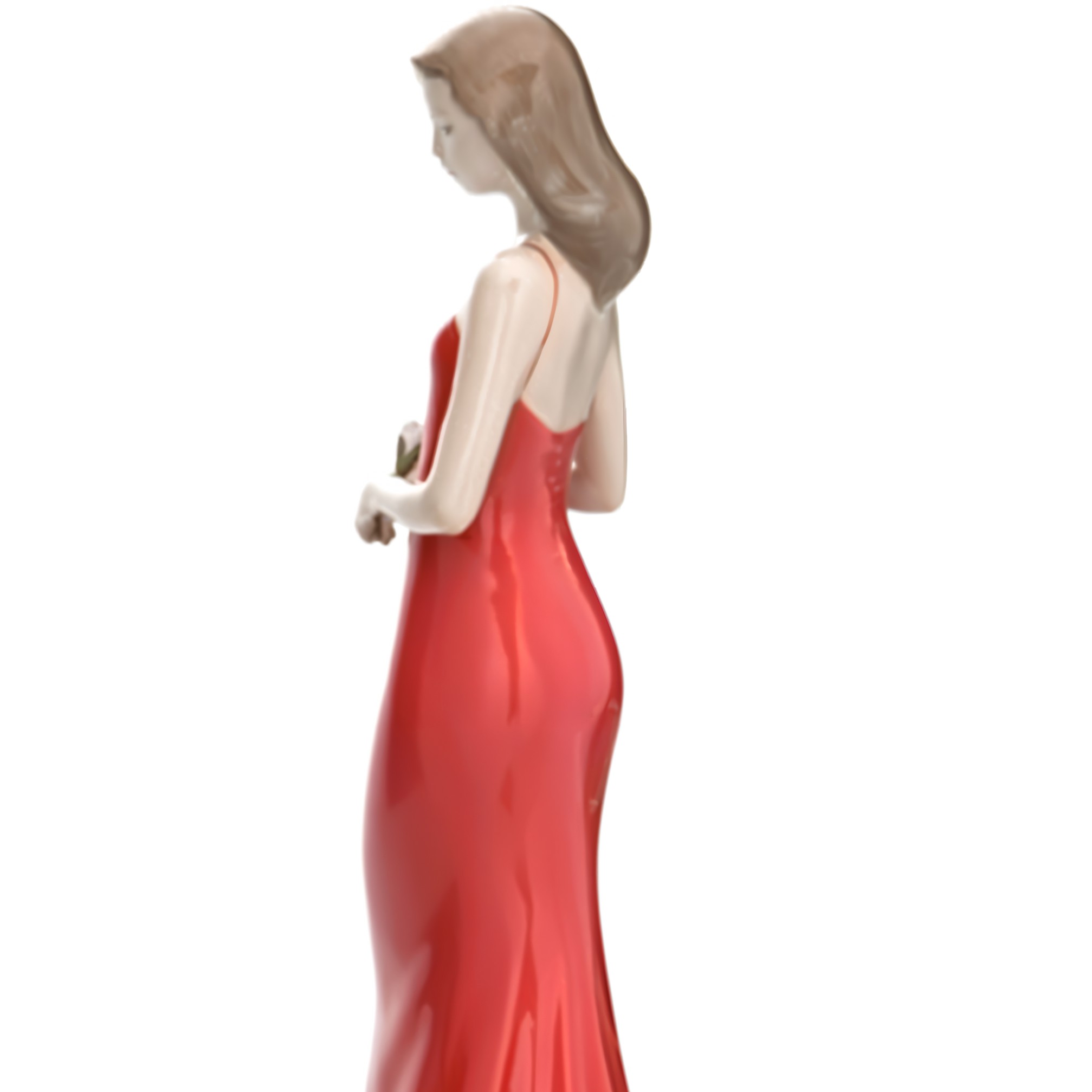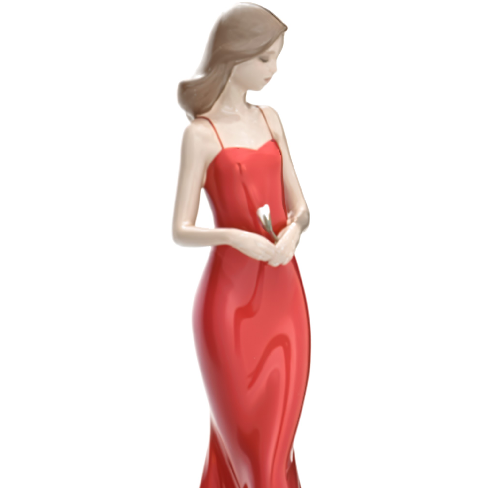 Lladro Porcelain Figurine NAO The Elegance of A Rose - Elegant Woman In Red Dress Collectible Spanish Porcelain Hand Painted