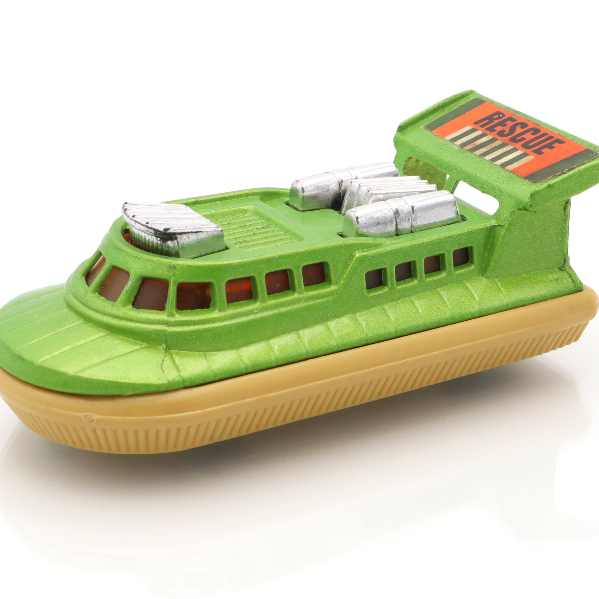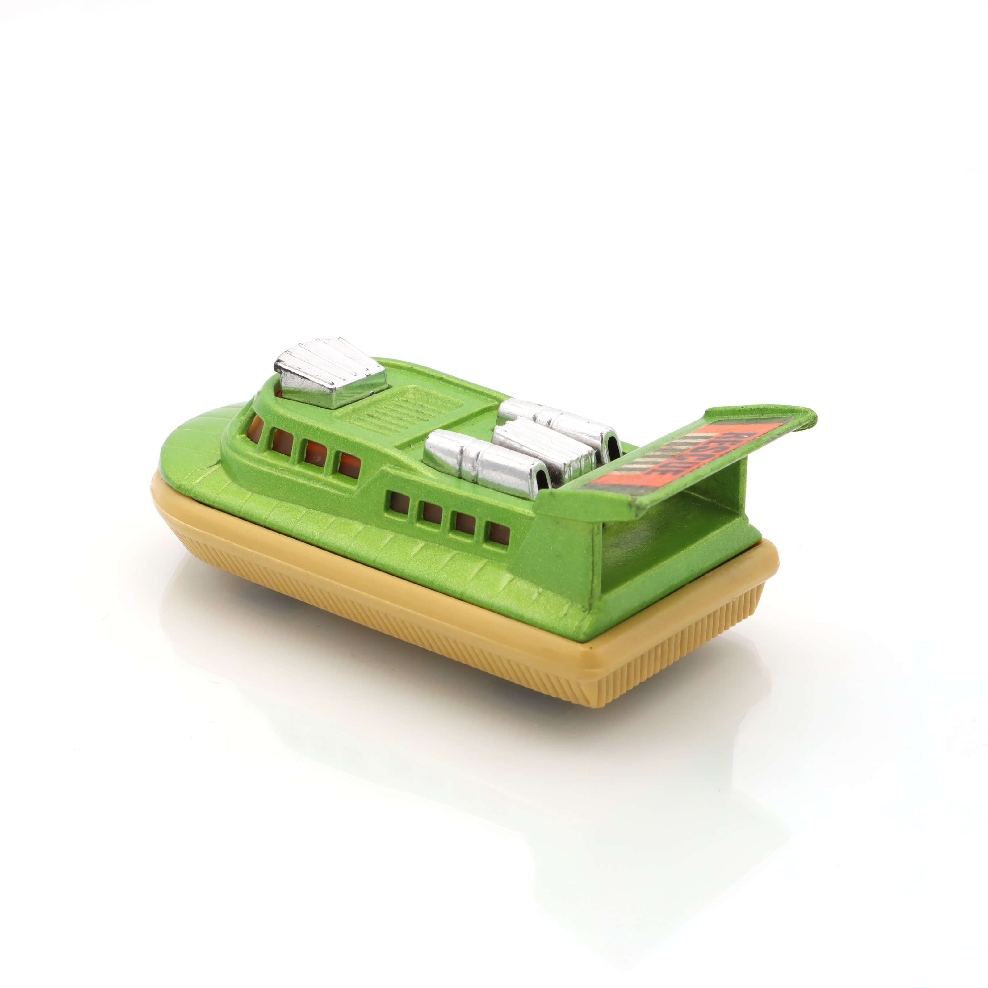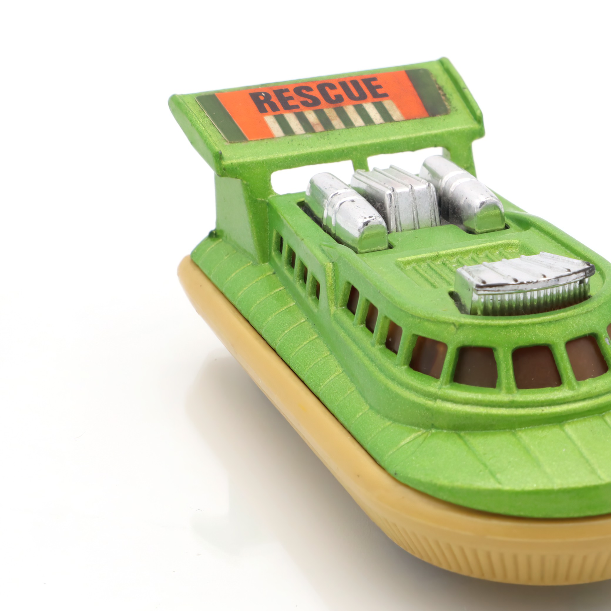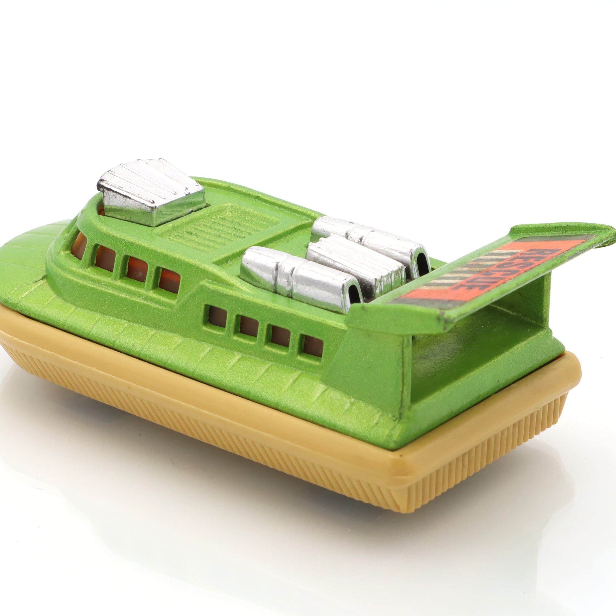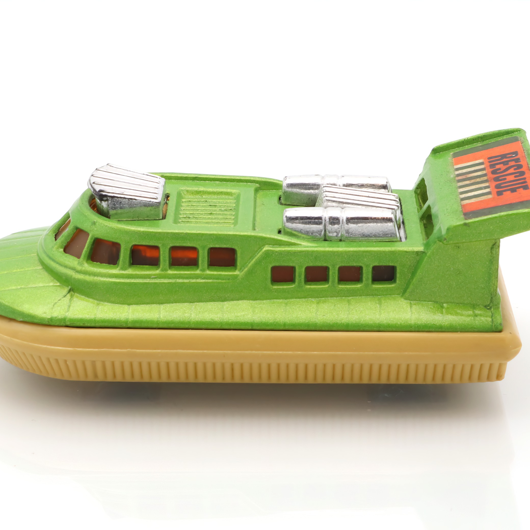 Matchbox is a brand that holds a special place in the world of toy vehicles. It was established in 1953 and quickly became a favorite among kids and collectors thanks to its affordable and intricately detailed diecast models. The Superfast series, introduced in the late 1960s, marked a significant evolution for the brand. These toys were equipped with low-friction wheels for quicker movement, catering to the growing demand for fast-paced play. The Rescue Hovercraft, part of this series, is a reflection of that innovative spirit and creativity. Range of interesting themes in the Matchbox line, from rescue operations to construction sites, provided countless hours of imaginative fun. Today, these toys are treasured for their nostalgic value, capturing a charming slice of mid-century play culture. Their rarity increases with age, and excellent-condition pieces like this hovercraft are particularly prized by collectors.