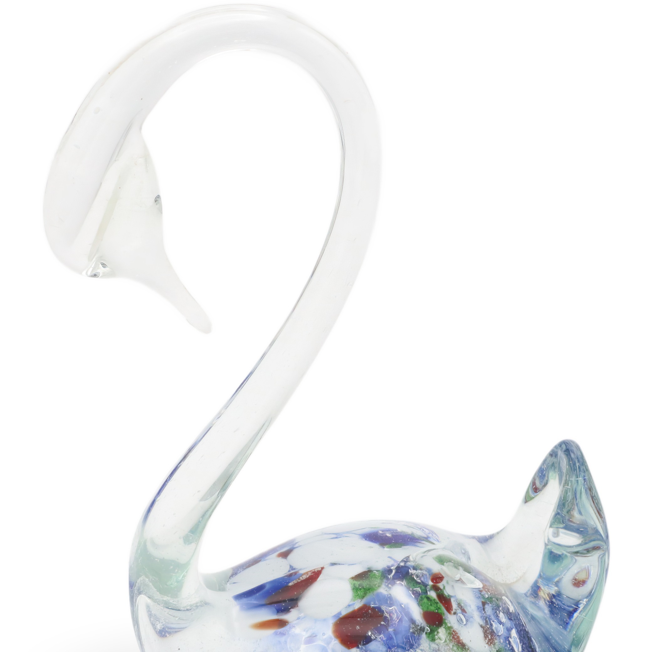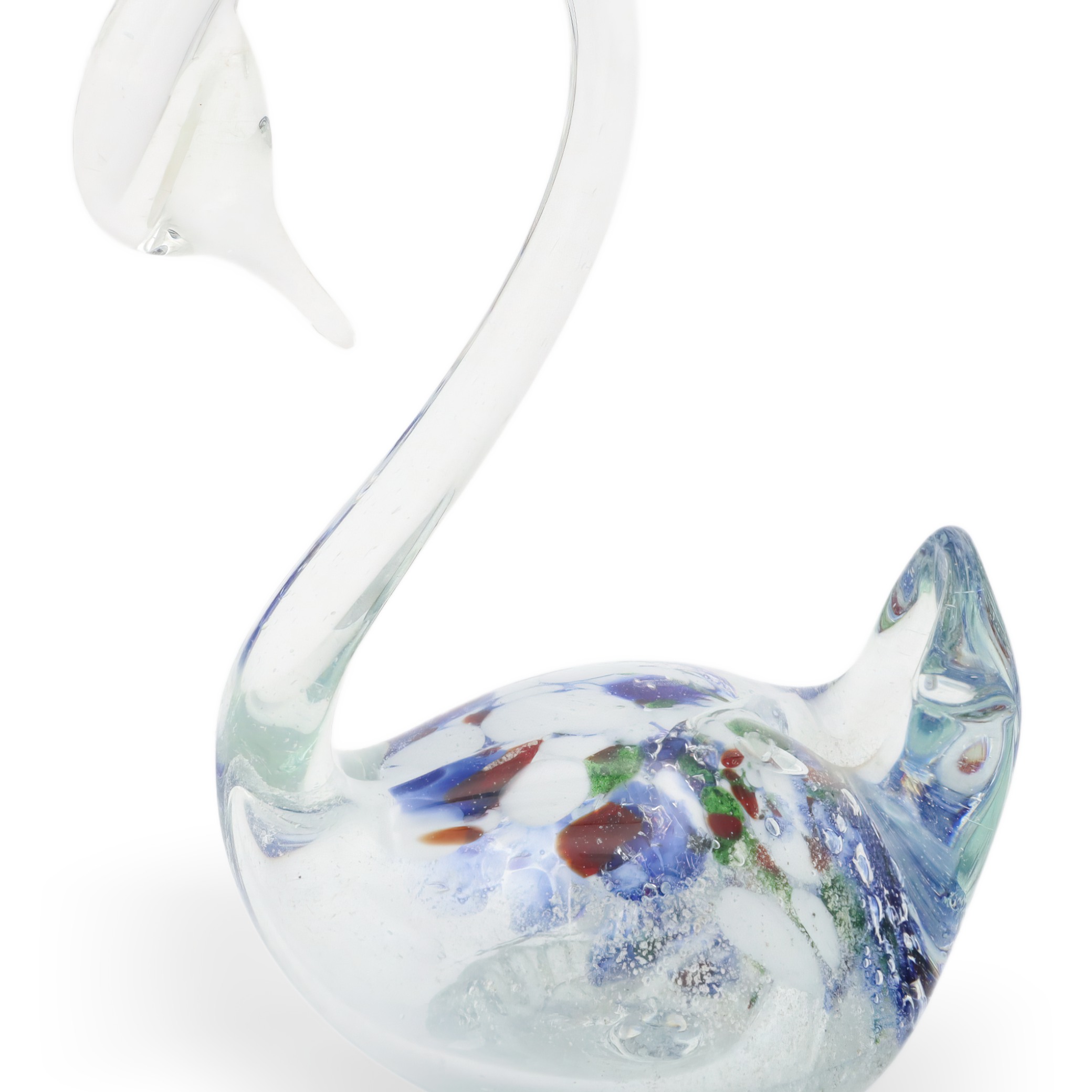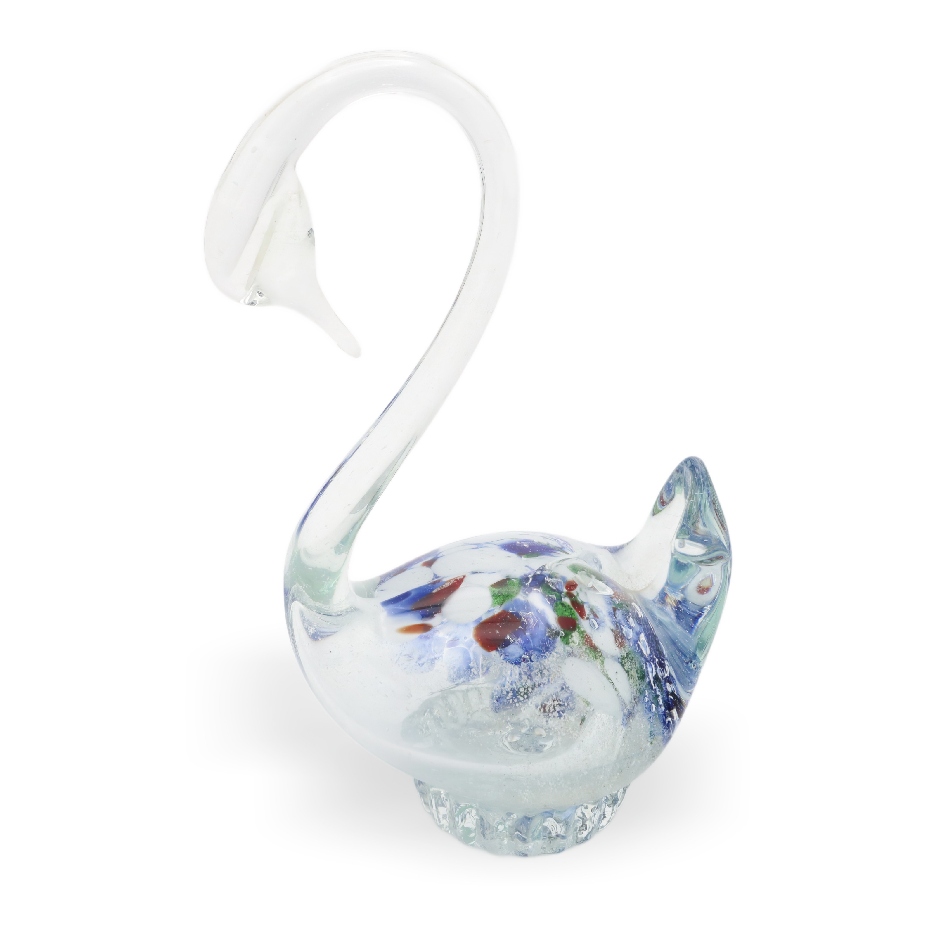 Murano glass has a rich history that dates back centuries, originating from the small cluster of islands near Venice, Italy. Each piece, like this swan figurine, is handcrafted by skilled artisans who use traditional methods passed down through generations. The uniqueness of Murano glass lies in its vibrant colors and delicate designs, making each item a one-of-a-kind collectible. During the mid-20th century, such pieces gained popularity as elegant modern accents, appealing to those who appreciate artistry and craftsmanship. Today, items from this era, particularly in excellent condition like this swan, are considered rare and valuable to collectors and those who admire vintage decor. Murano glass continues to be renowned worldwide, symbolizing a blend of creativity, tradition, and enduring appeal.