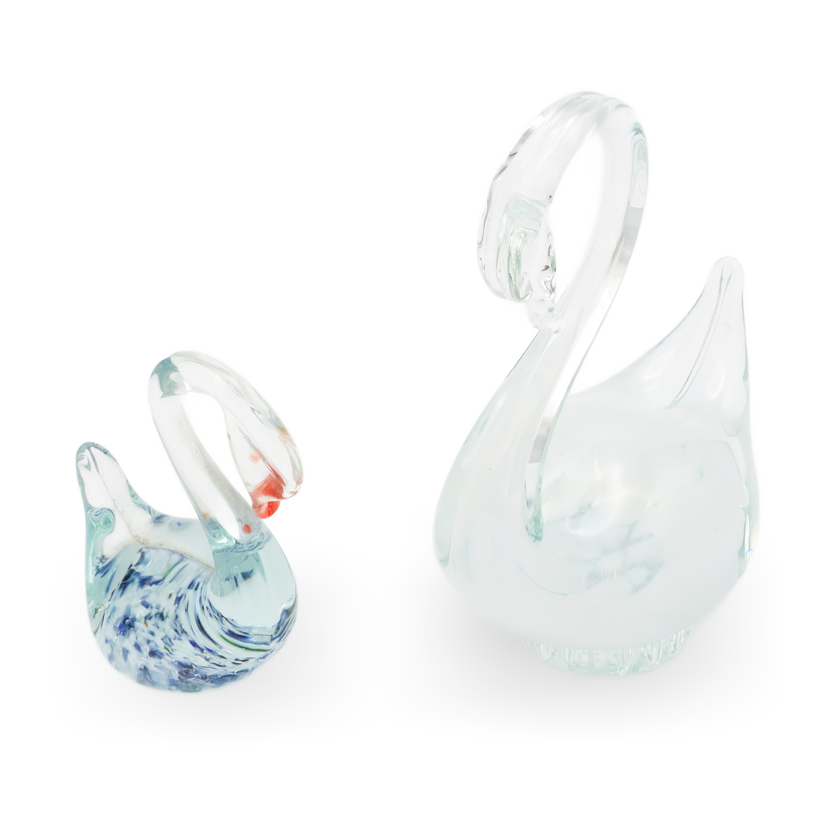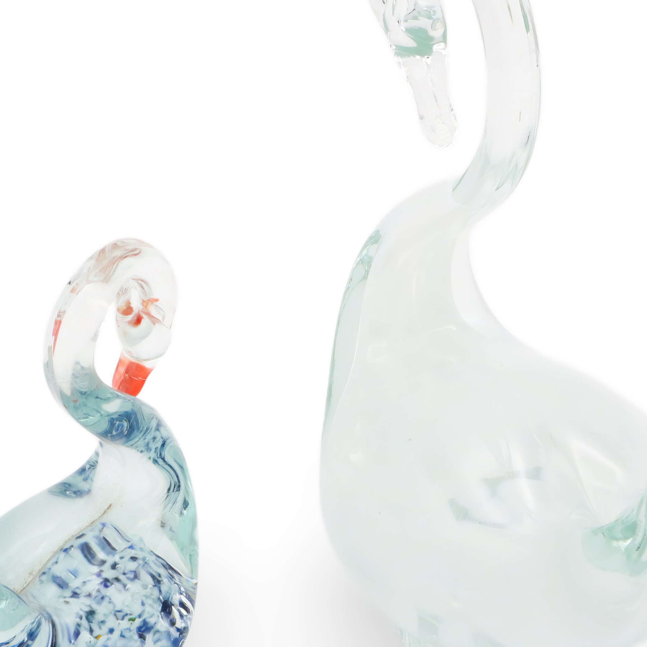 Hand Blown Glass Swans - Mid Century Modern Decor - Collectible Murano Figurines
