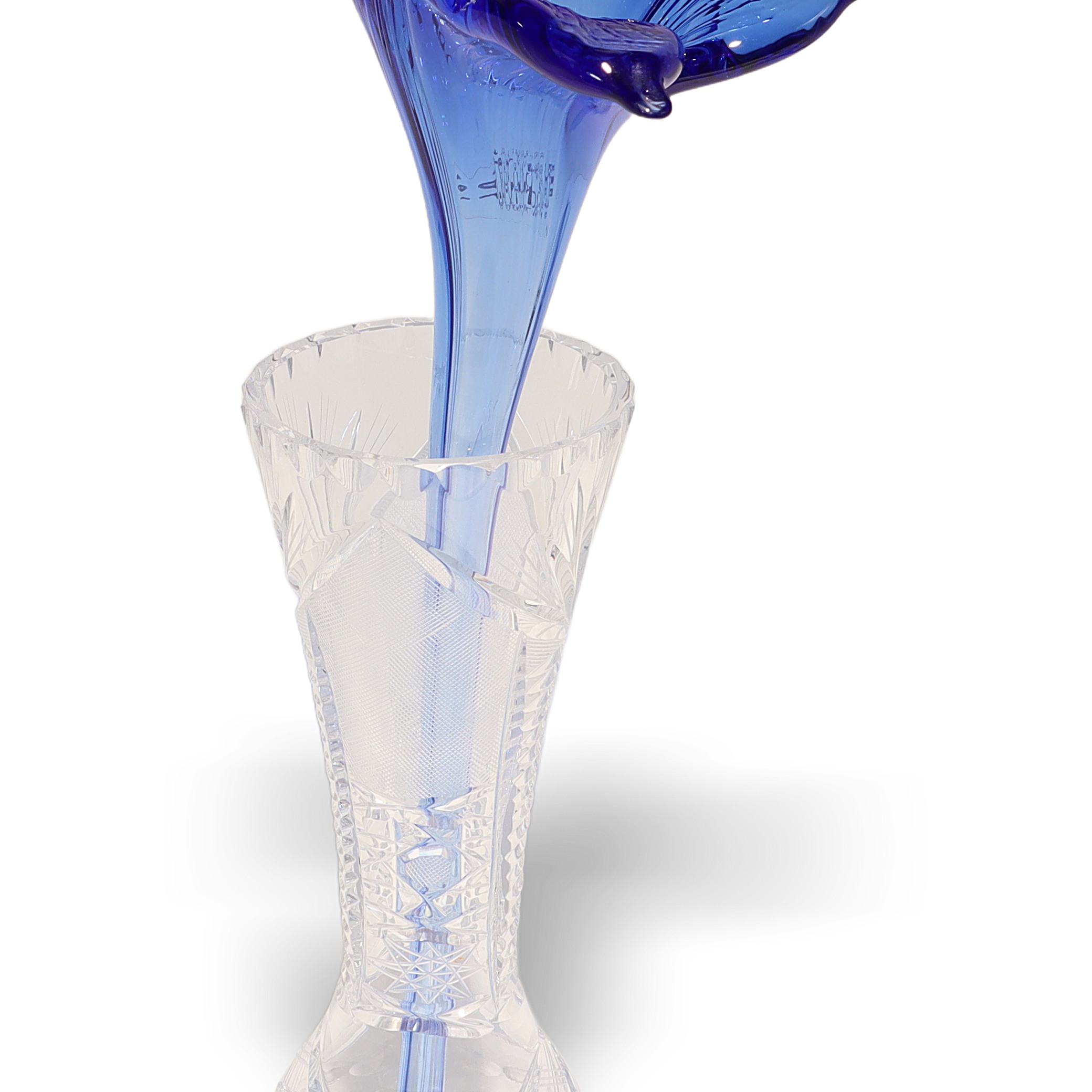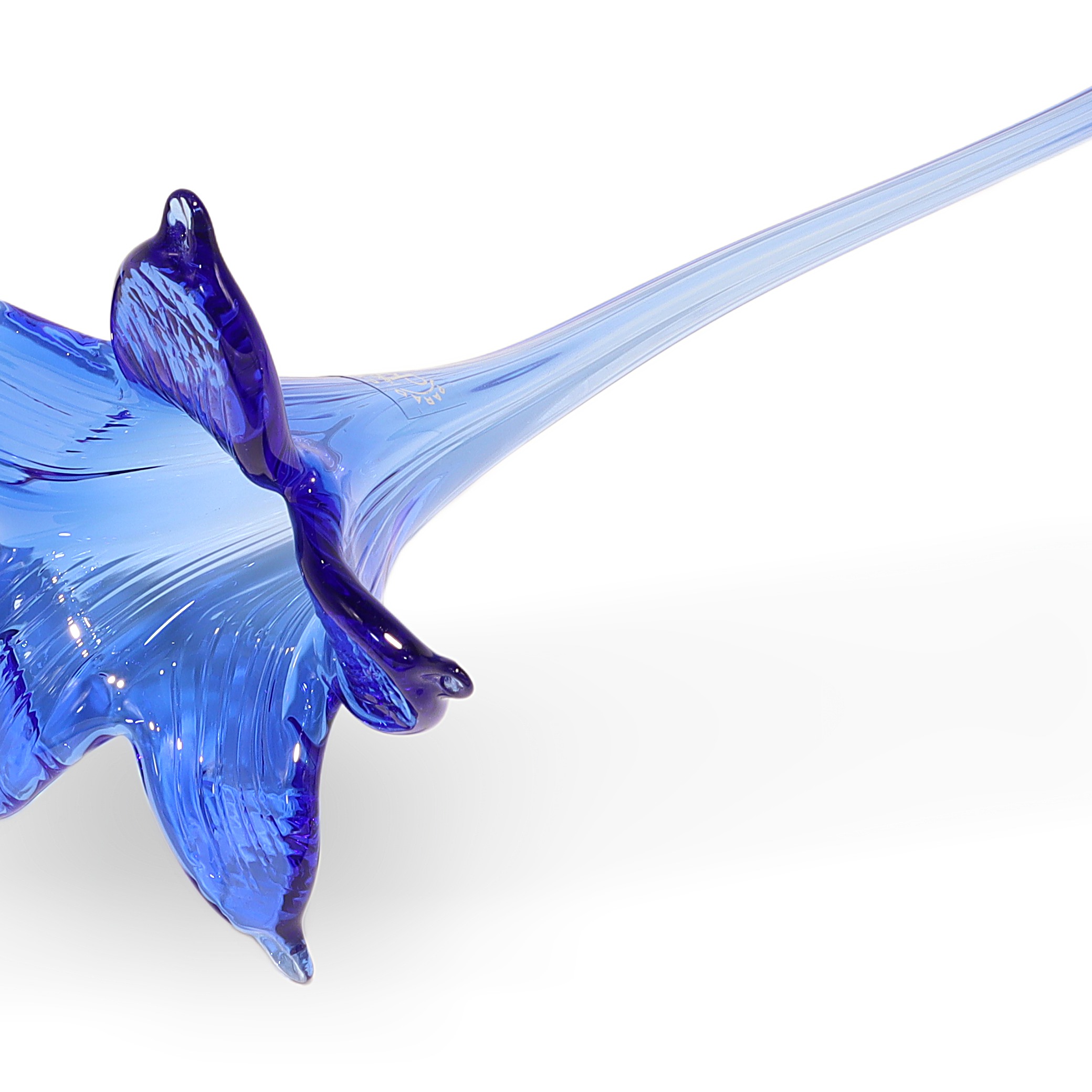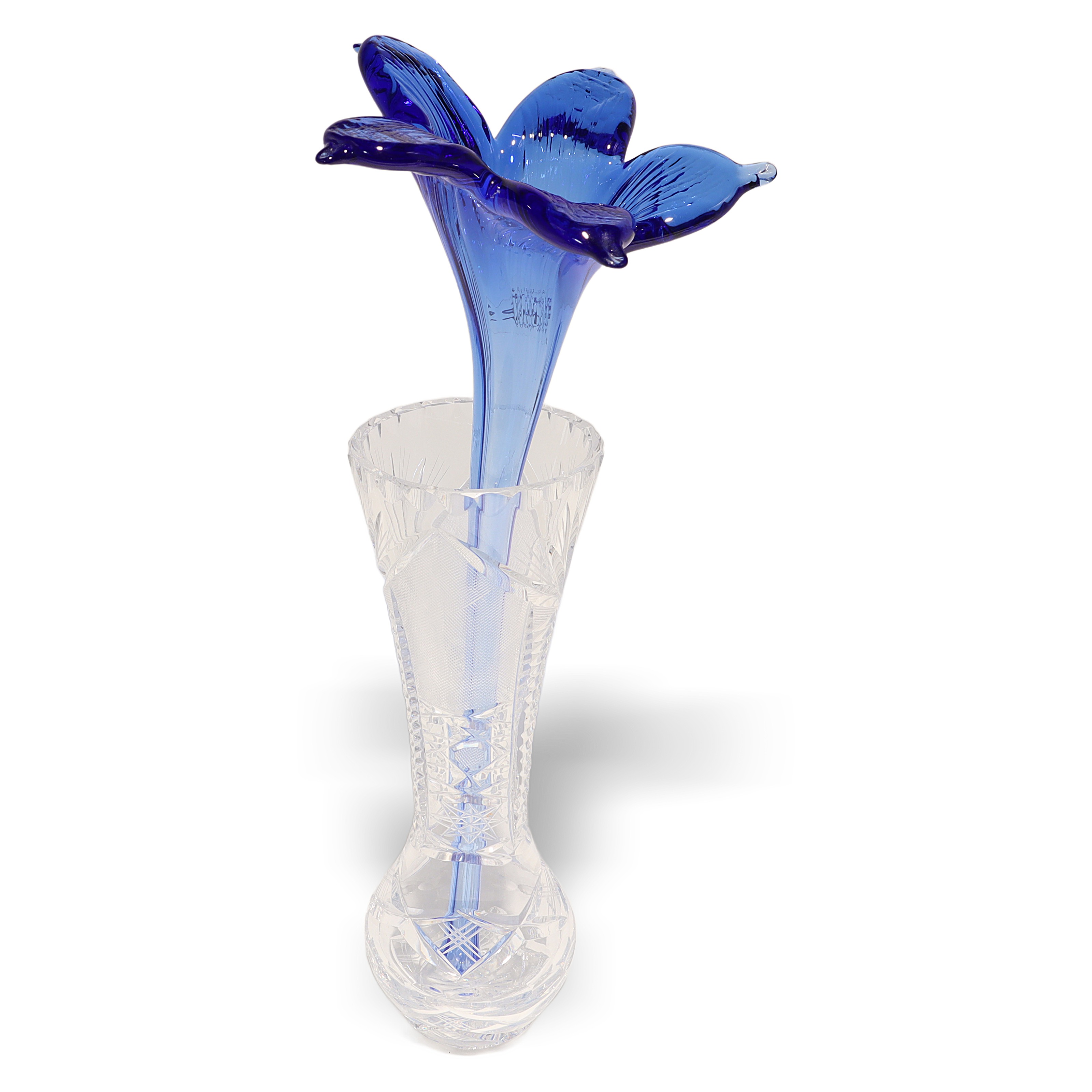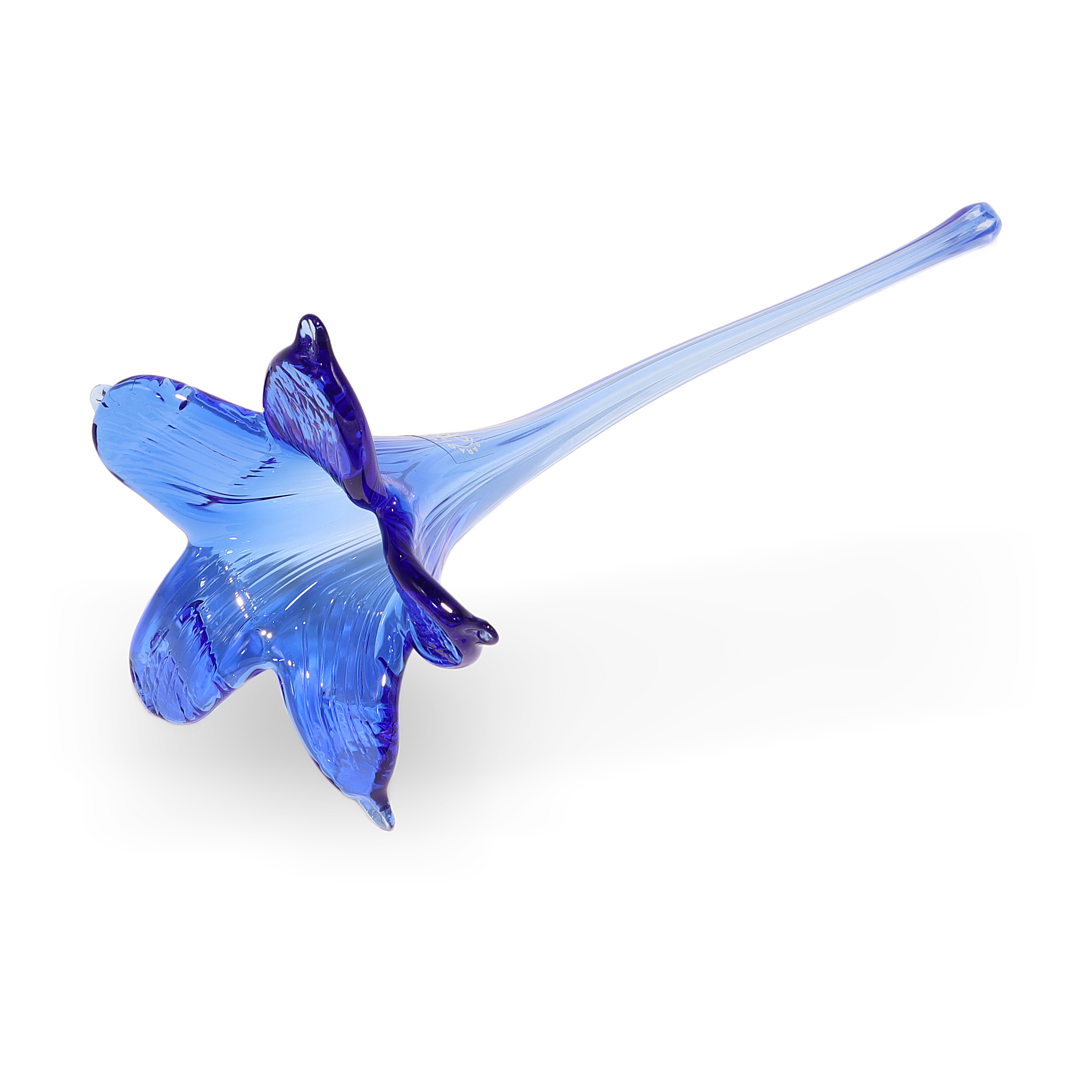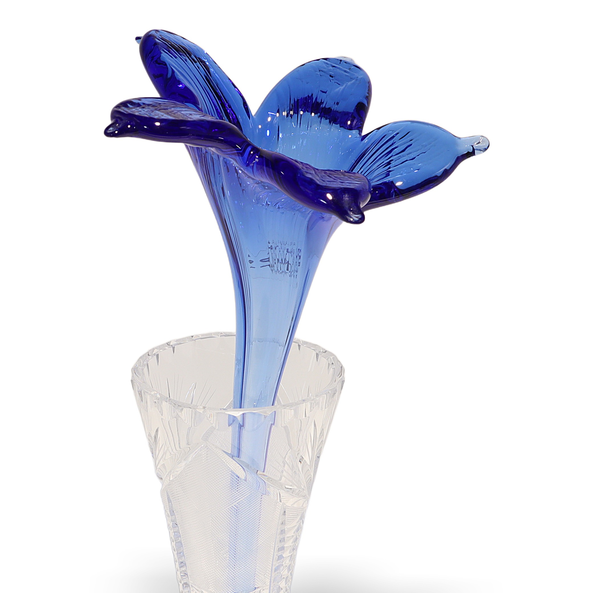 This beautiful piece you’re looking at is a Paradi Crystal Glass Hand Made Flower from around 1980. It stands about 12 inches tall and measures roughly 4 inches wide and across. Made entirely of glass, its craftsmanship really shows off the care and attention given to each petal and curve. The blue hues catch the light in a striking way, making it a real eye-catcher for any shelf or display case. With its age—now over 40 years old—it’s already considered vintage and is in near mint condition, which is pretty rare for something so delicate. You can really see the Art Deco influence in the elegant shape and flowing lines, making it both a decorative item and a work of art.