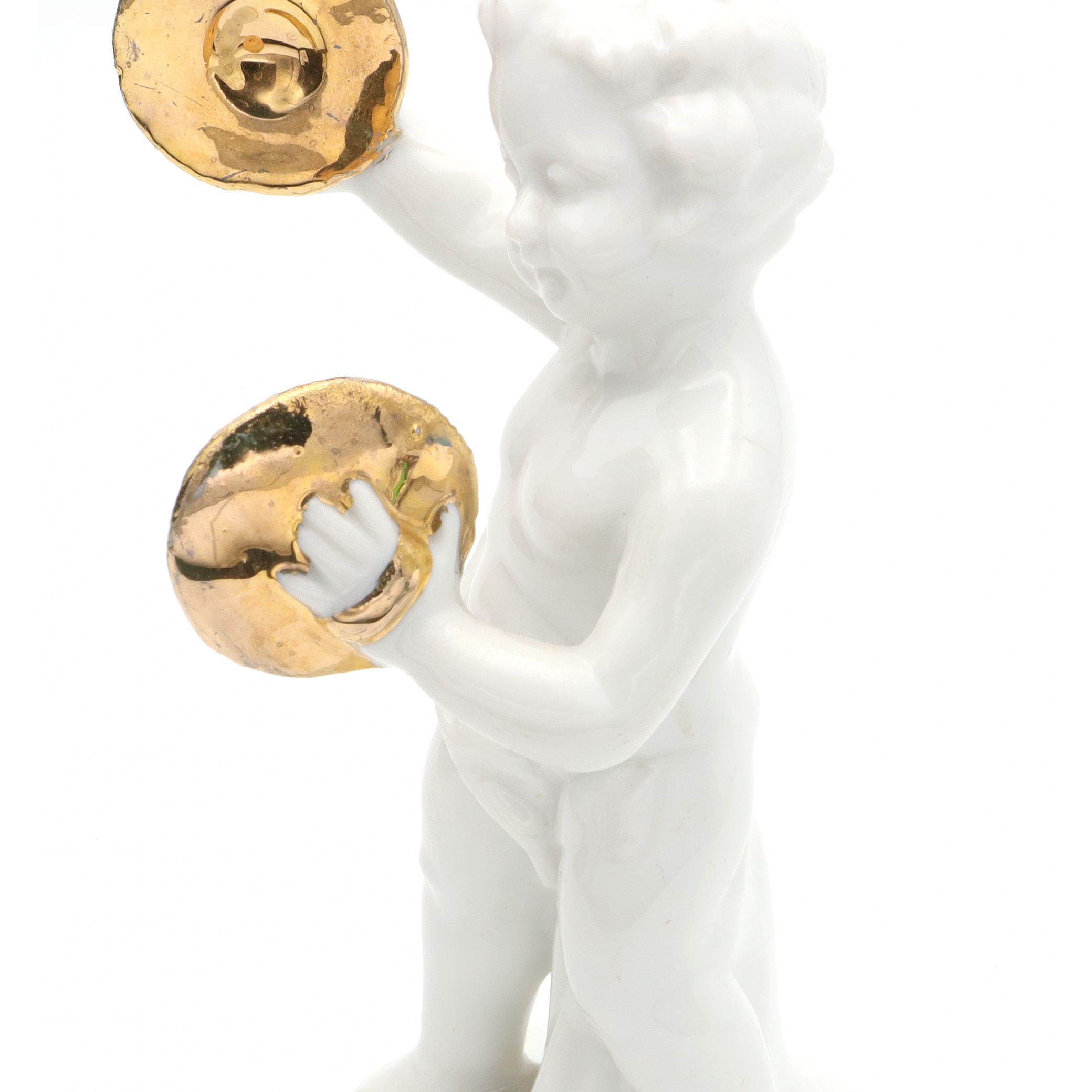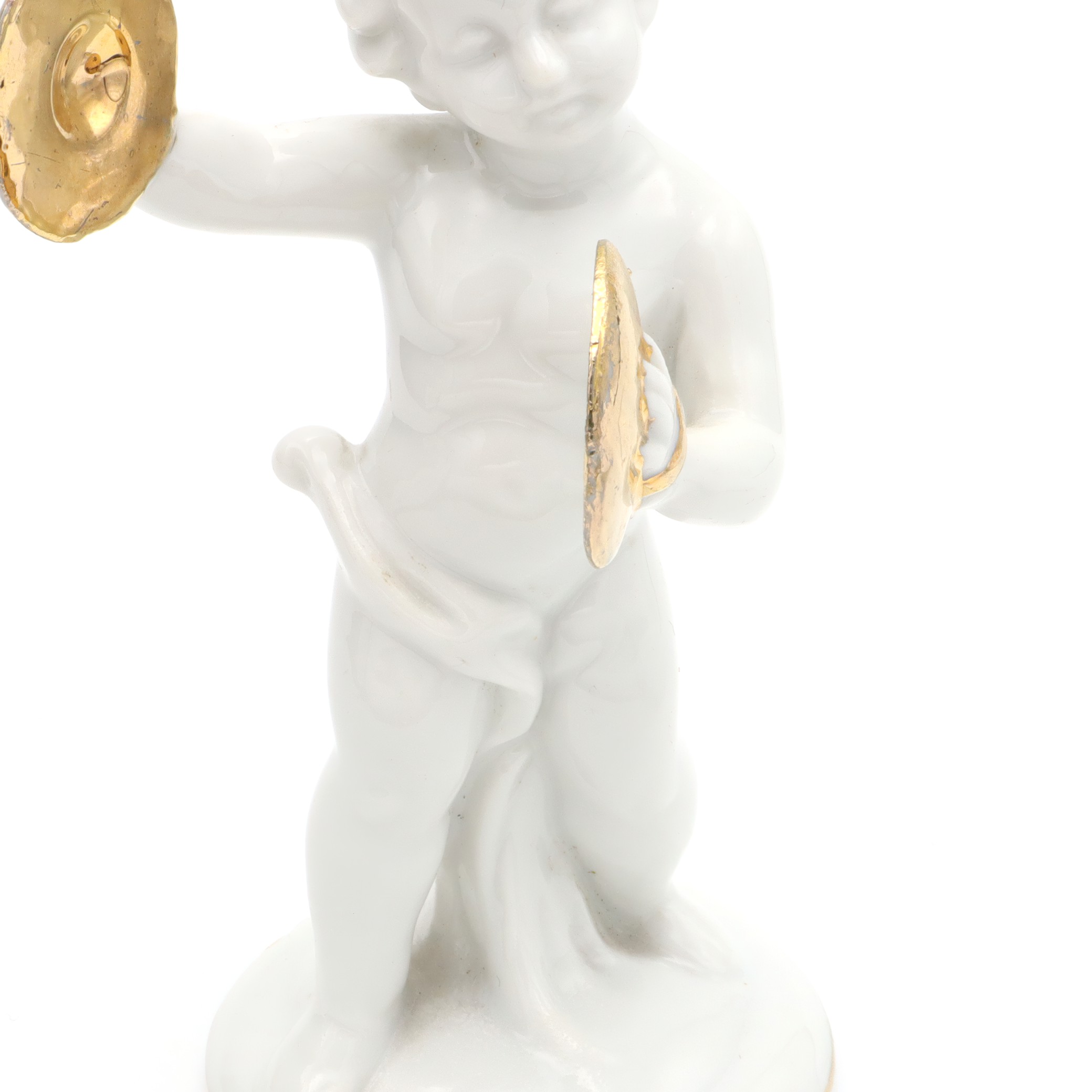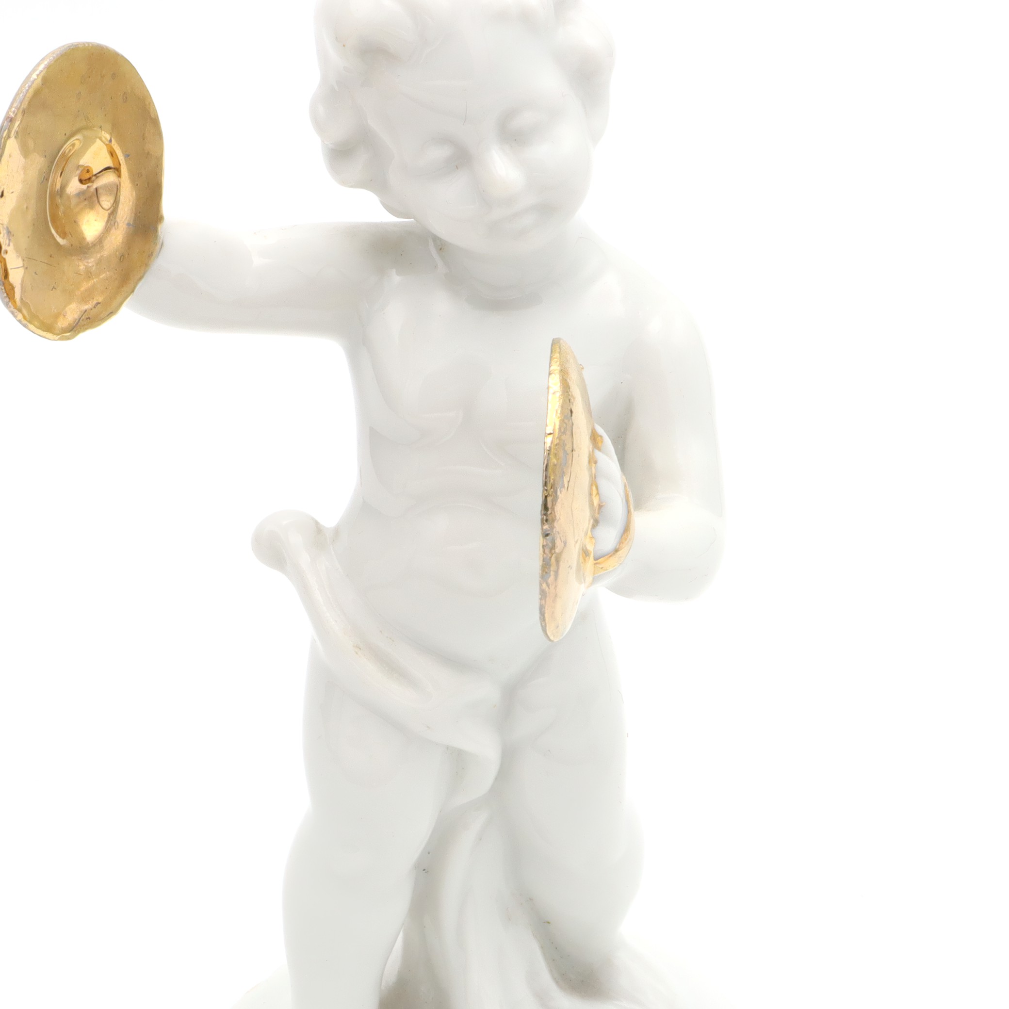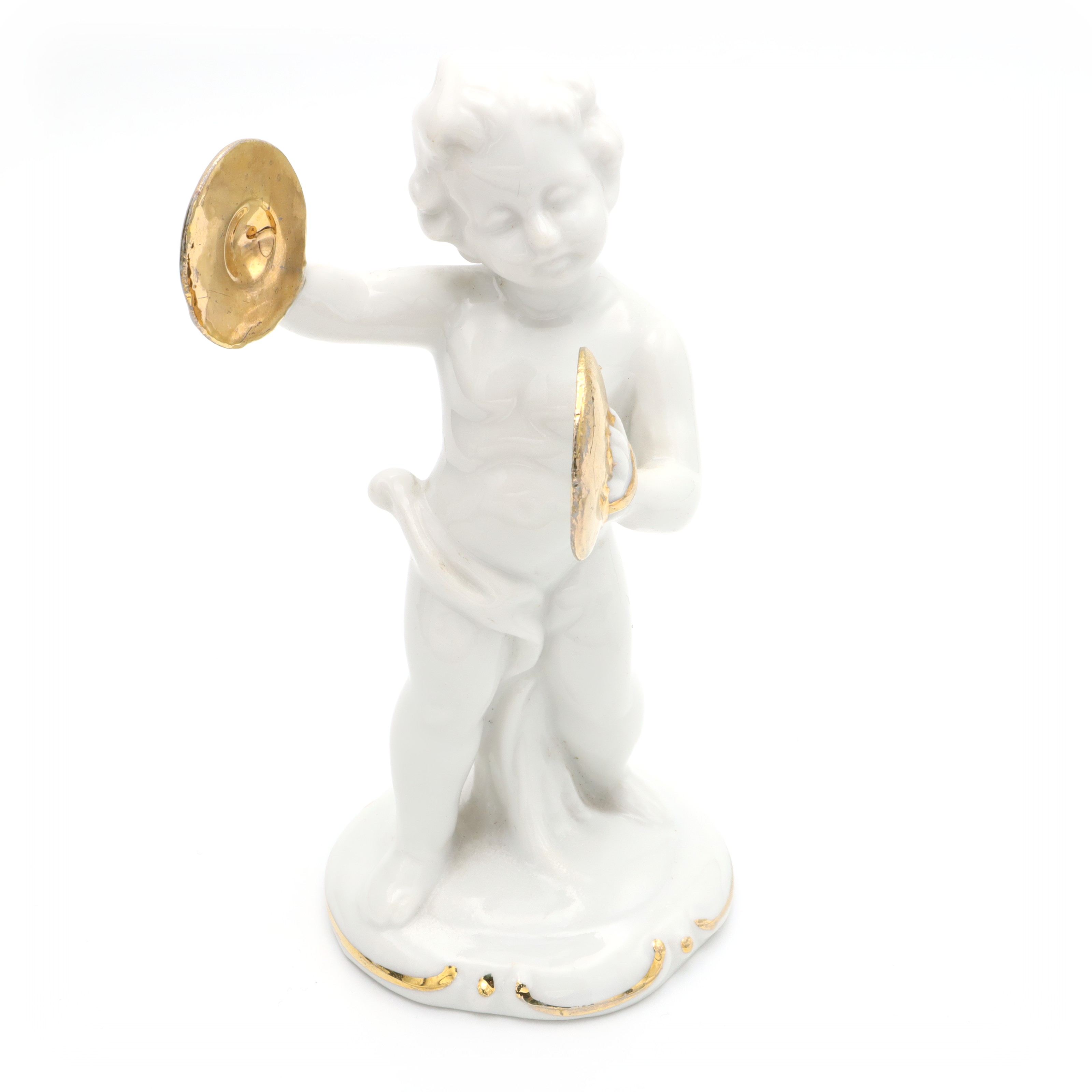 Porcelain Figurine Statue Miniature Decorative Ornament Capodimonte Angel Cherub Gold-Plated Cymbals Art Deco Hand Painted - Vintage Ceramic Collectible Sculpture