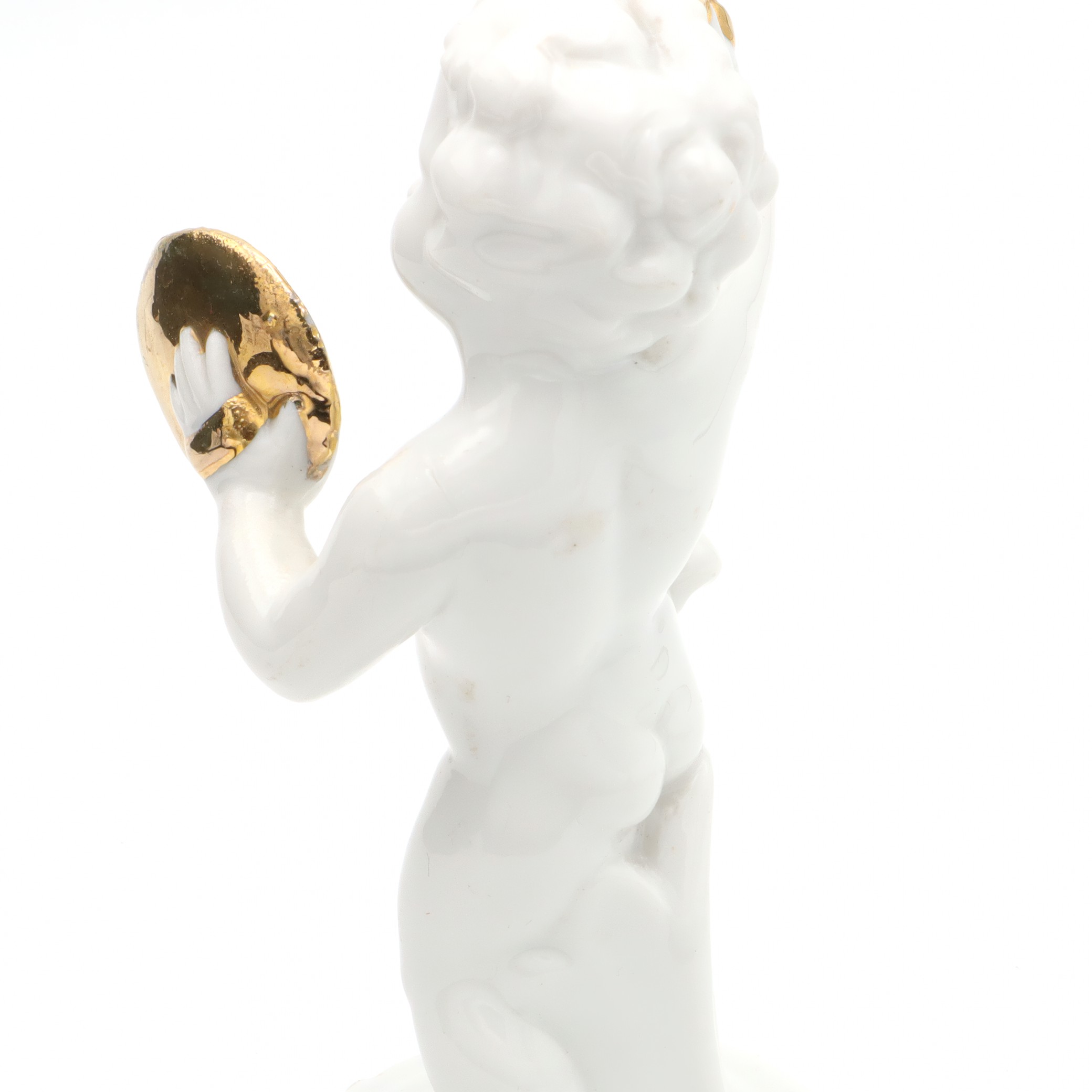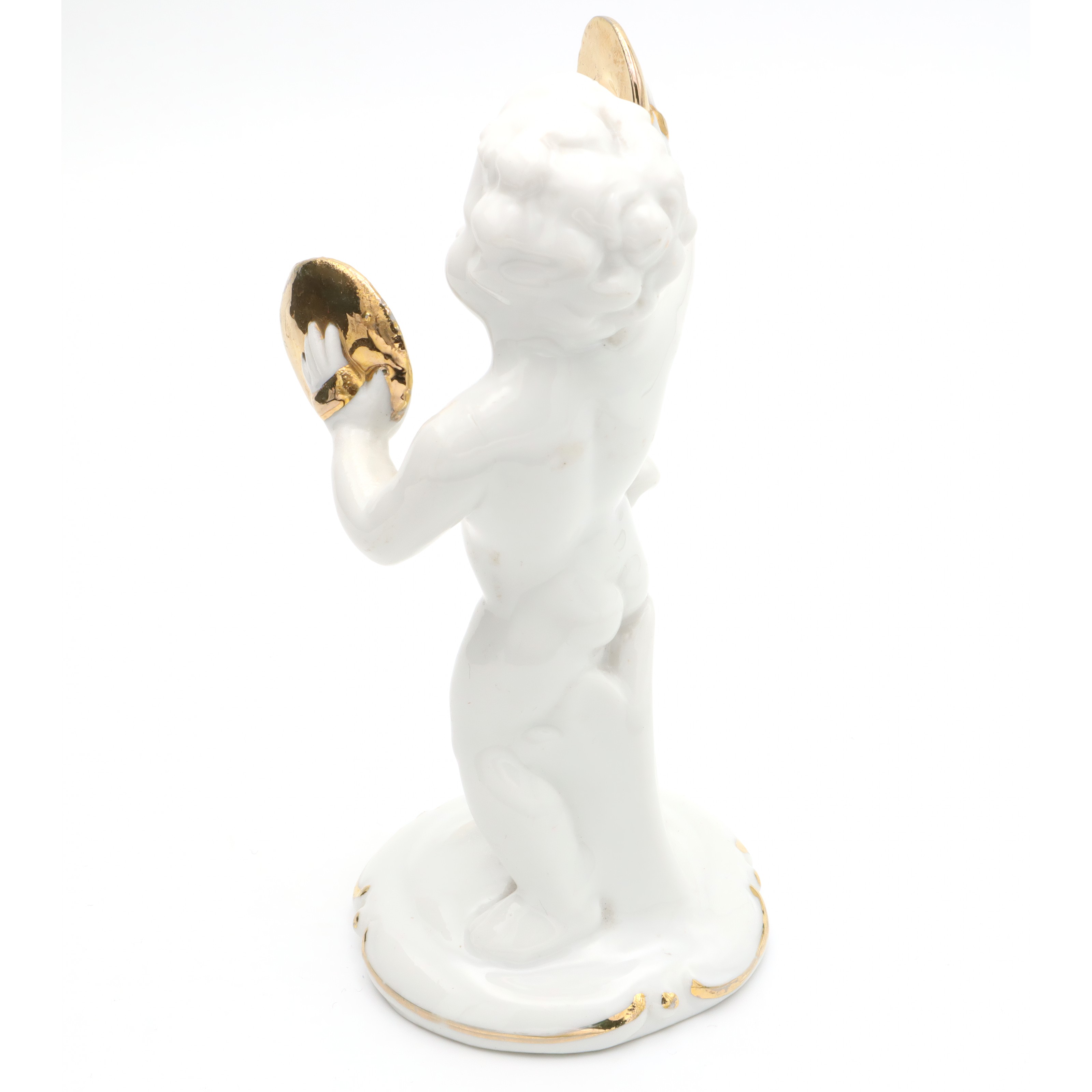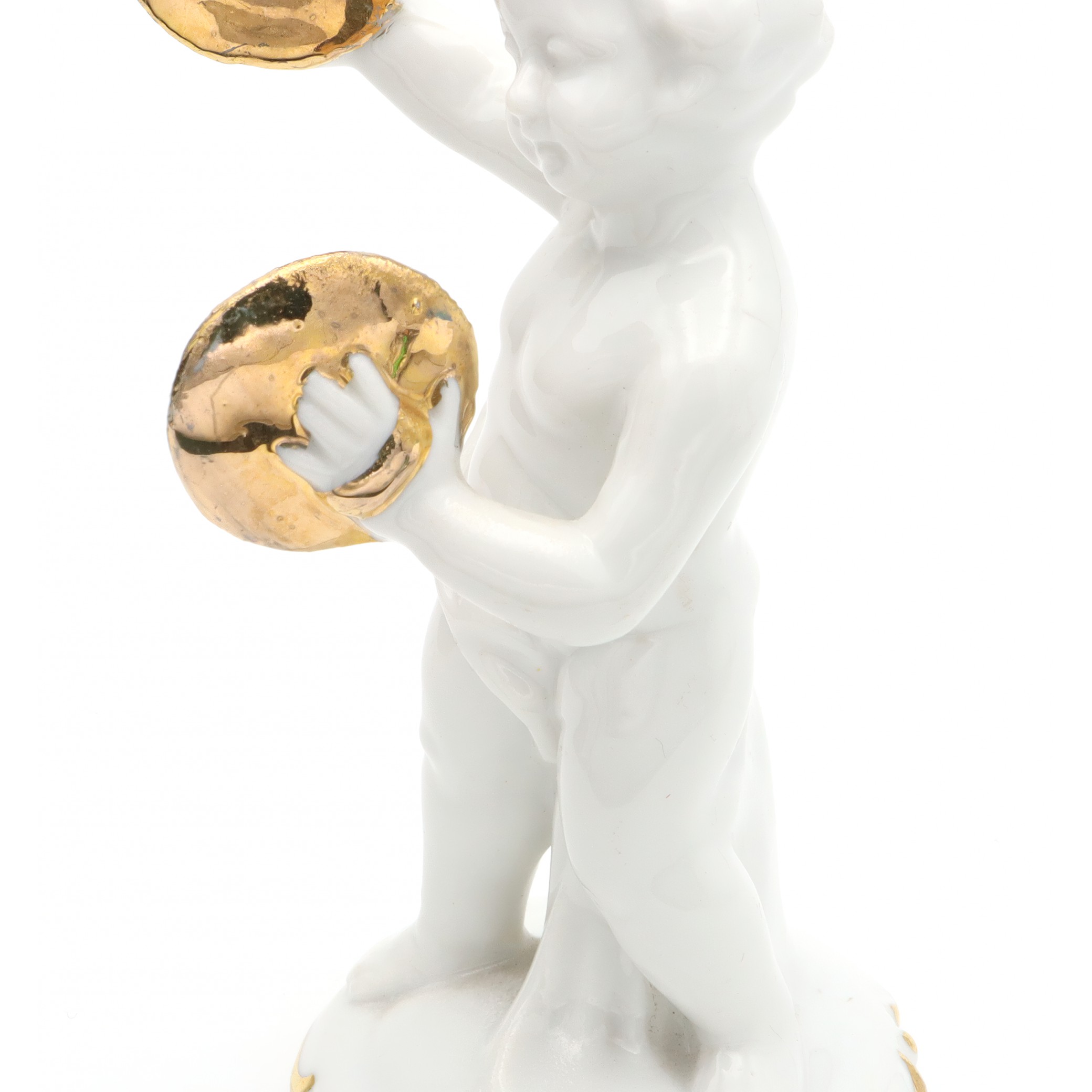 Porcelain Figurine Statue Miniature Decorative Ornament Capodimonte Angel Cherub Gold-Plated Cymbals Art Deco Hand Painted - Vintage Ceramic Collectible Sculpture