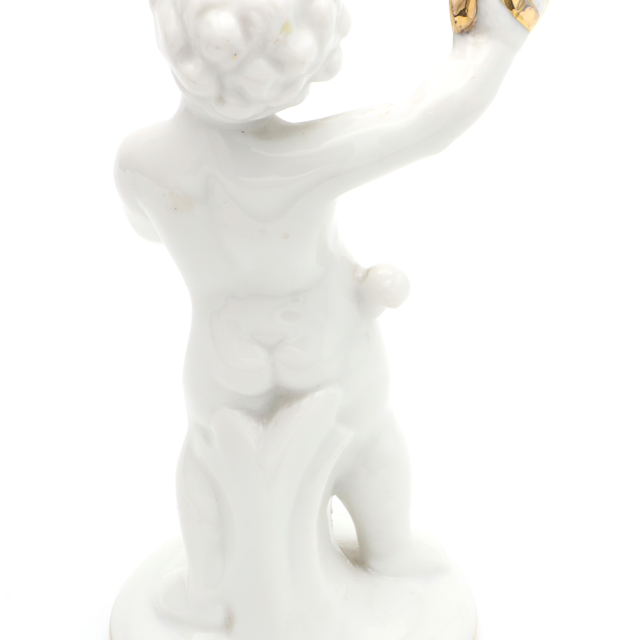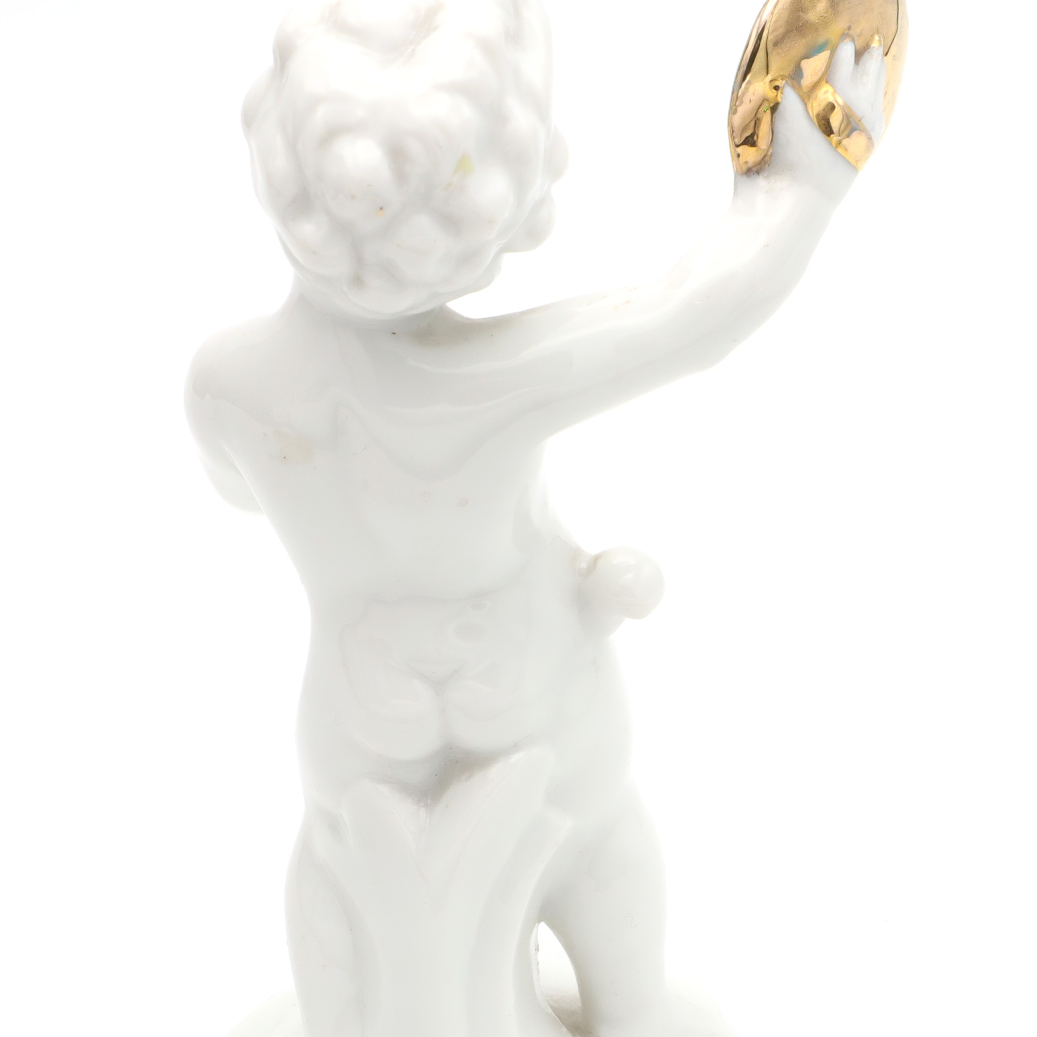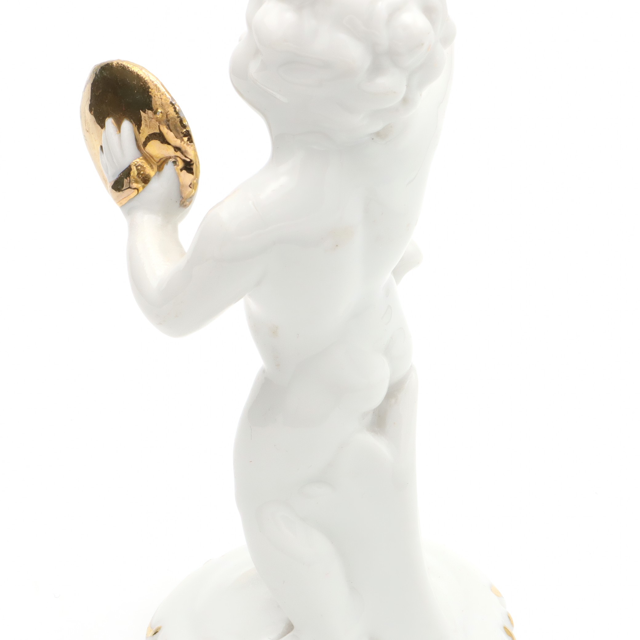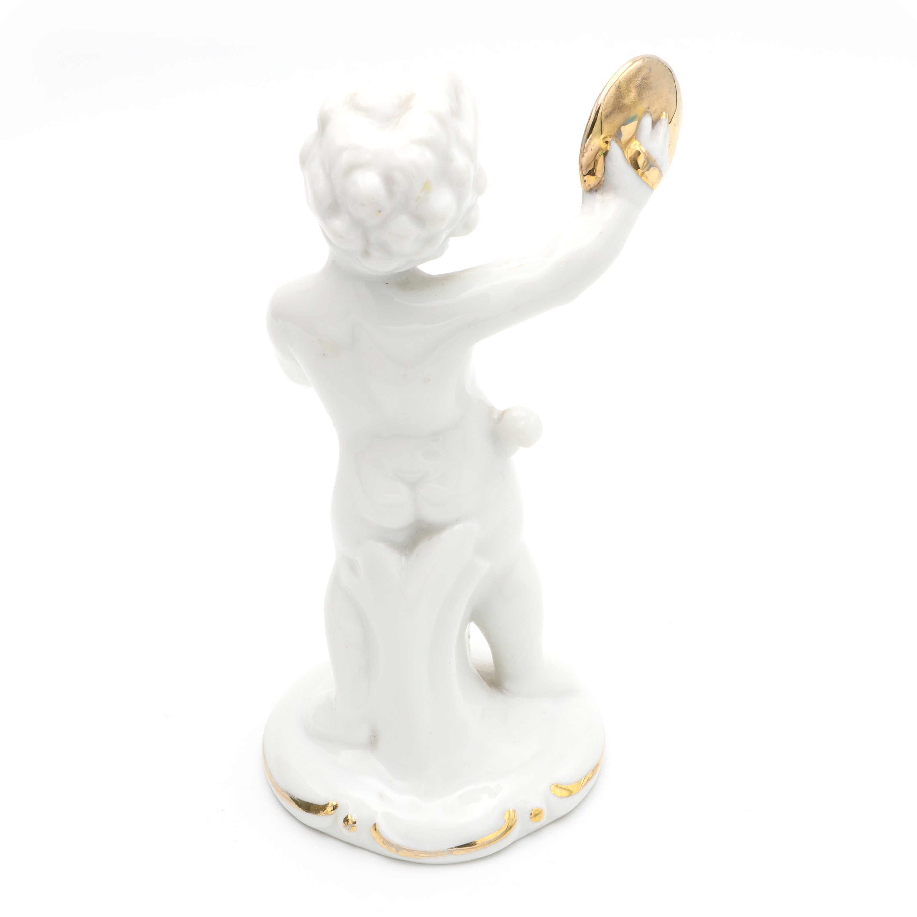 Porcelain Figurine Statue Miniature Decorative Ornament Capodimonte Angel Cherub Gold-Plated Cymbals Art Deco Hand Painted - Vintage Ceramic Collectible Sculpture