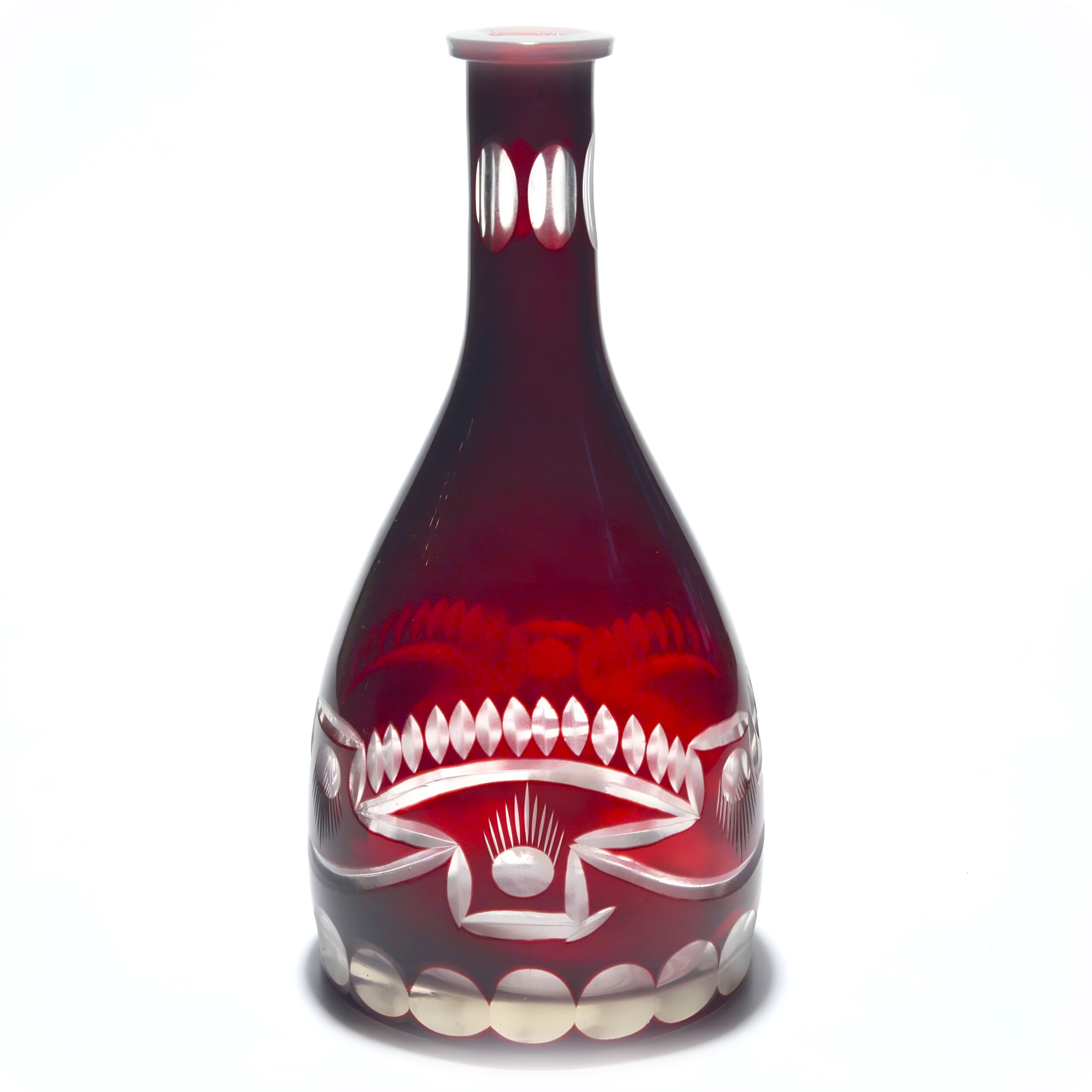 The Bohemian glass industry has a rich history, renowned for its high-quality crystal and intricate designs. Originating from the Czech Republic, Bohemian glass became a hallmark of luxury and sophistication in the 19th and 20th centuries. This particular vase, made around 1950, reflects the post-war era’s shift towards more modern designs while still holding onto the traditional craftsmanship that Bohemian artisans were known for. During this time, Bohemian glass became popular for its innovation and style, earning a reputation worldwide.