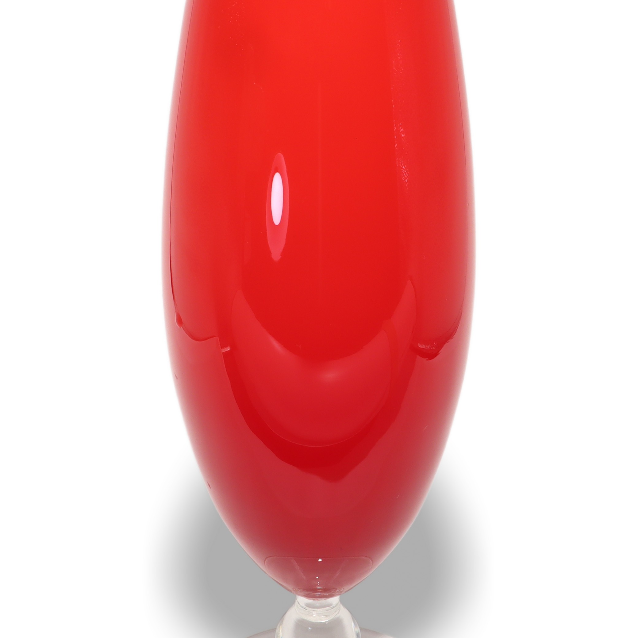 This striking piece is a Red Murano Vase, completely hand blown in Italy around the year 1970. Standing about 12 inches tall and 4 inches wide, it’s a true statement piece for any home, especially with its bold, brilliant red color and elegant clear pedestal base. For something over 50 years old, it’s in near mint condition, which is pretty rare for vintage glassware. The craftsmanship really shows with its smooth curves and the subtle transparency of the material—it’s obvious someone took real pride in making it. Pieces like this are both a pop of color and a touch of history, perfect for anyone who wants their decor to feel both timeless and a little bit daring.