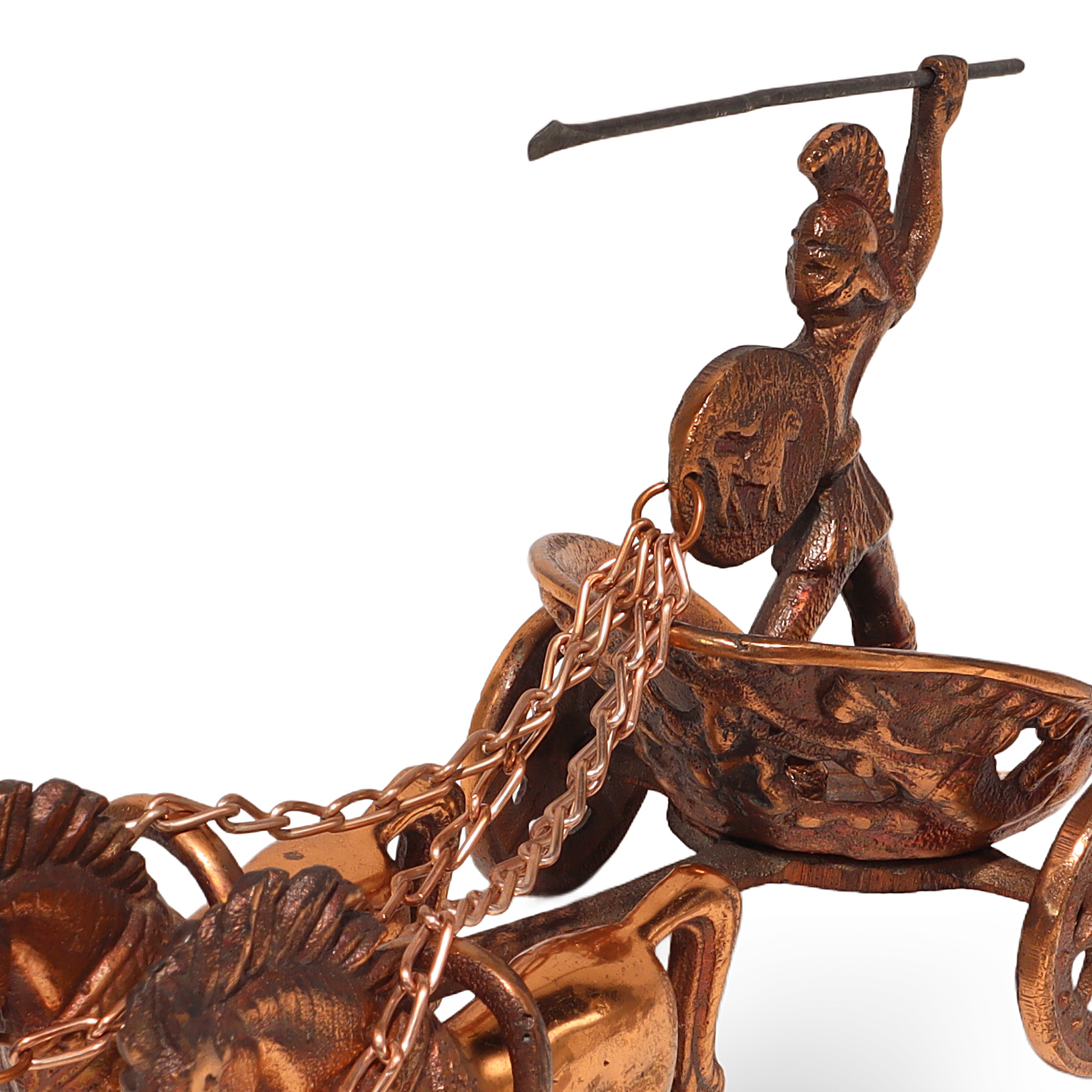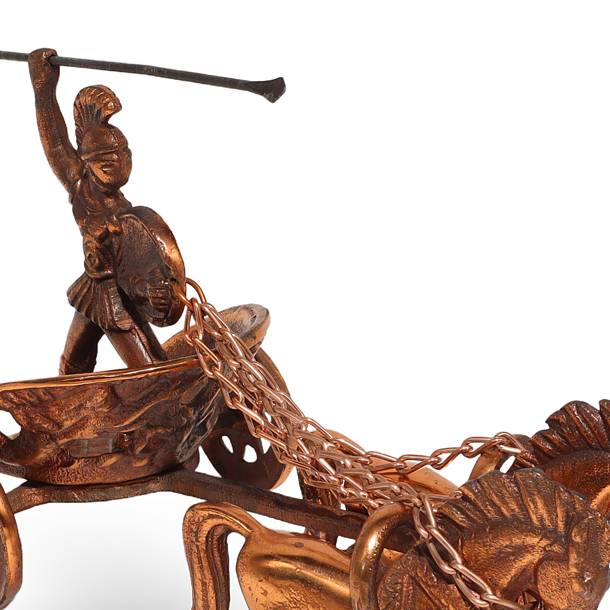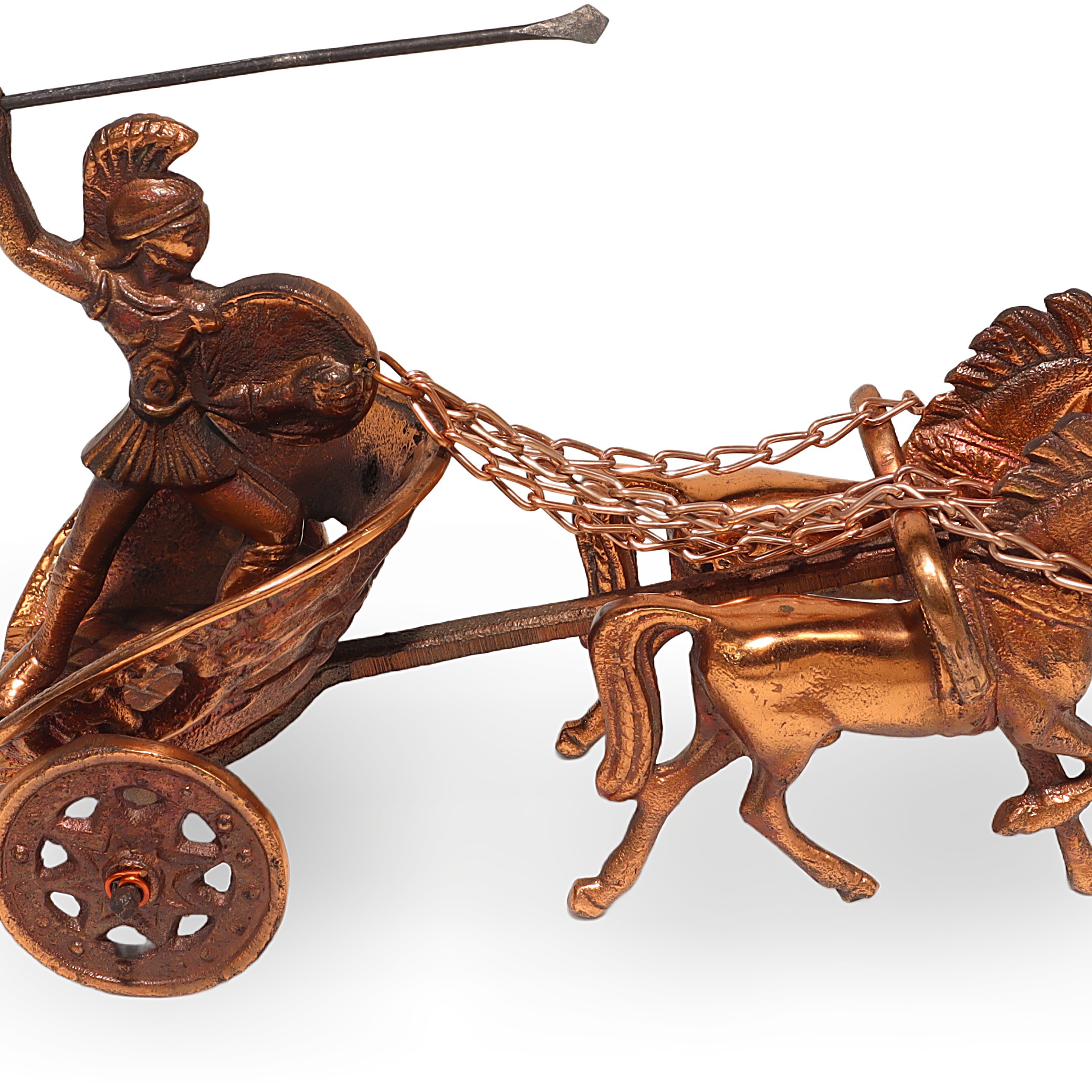 During the late 60s and 70s, decorative bronze and copper figurines surged in popularity, especially those inspired by classical themes. Many people bought these as souvenirs or as conversation starters in their homes. They often came from artisan workshops rather than big brands, so each one has a slightly different hand-finished look. The Roman War Chariot design was a favorite motif—timeless, bold, and symbolizing strength. Because copper figurines from this era were sometimes used and then forgotten on mantles or tucked away in attics, finding one in such pristine condition is a treat for collectors. While not technically an antique yet, it’s well into “vintage” status and can be considered somewhat rare, especially among folks who love retro European-style décor or Roman history-inspired collectibles.