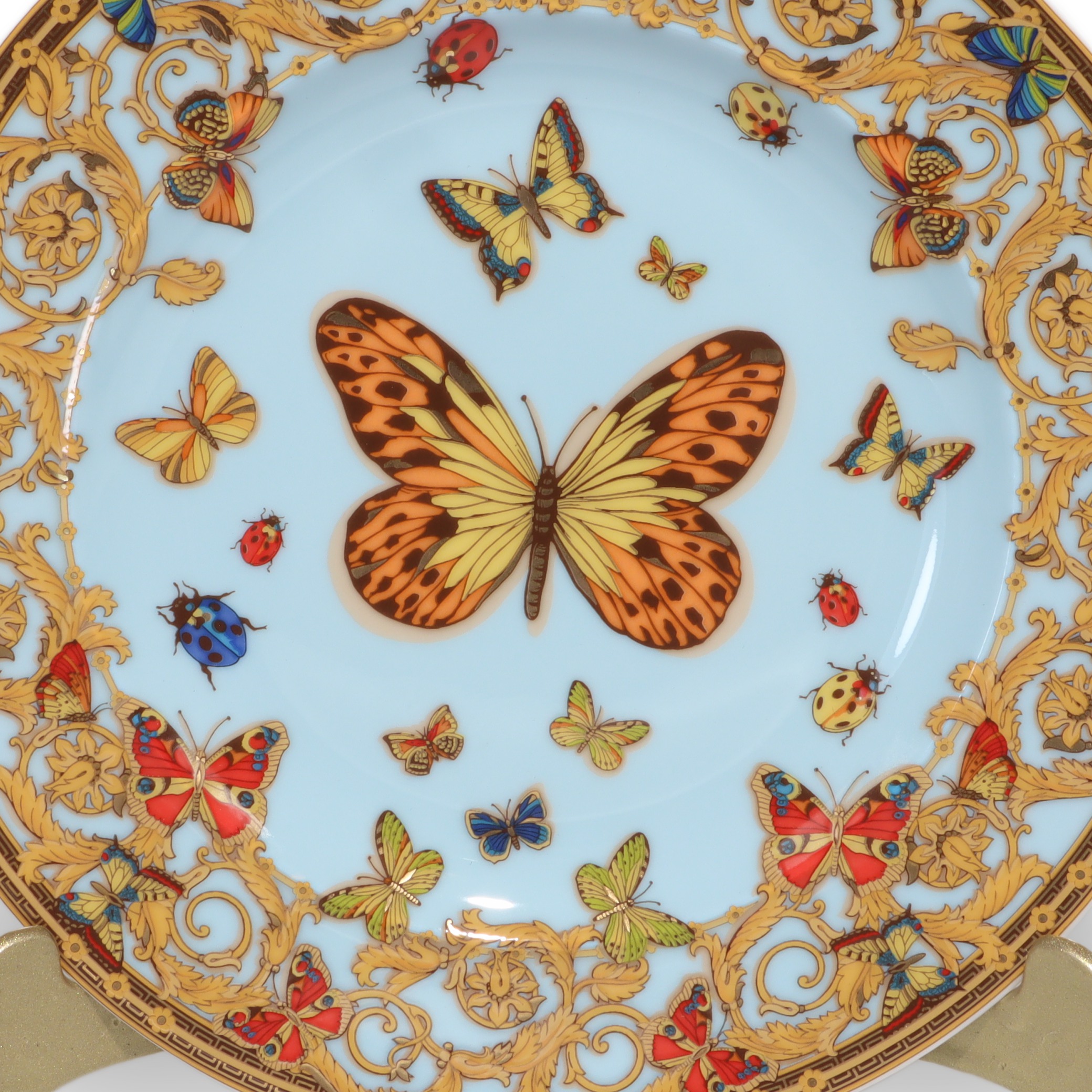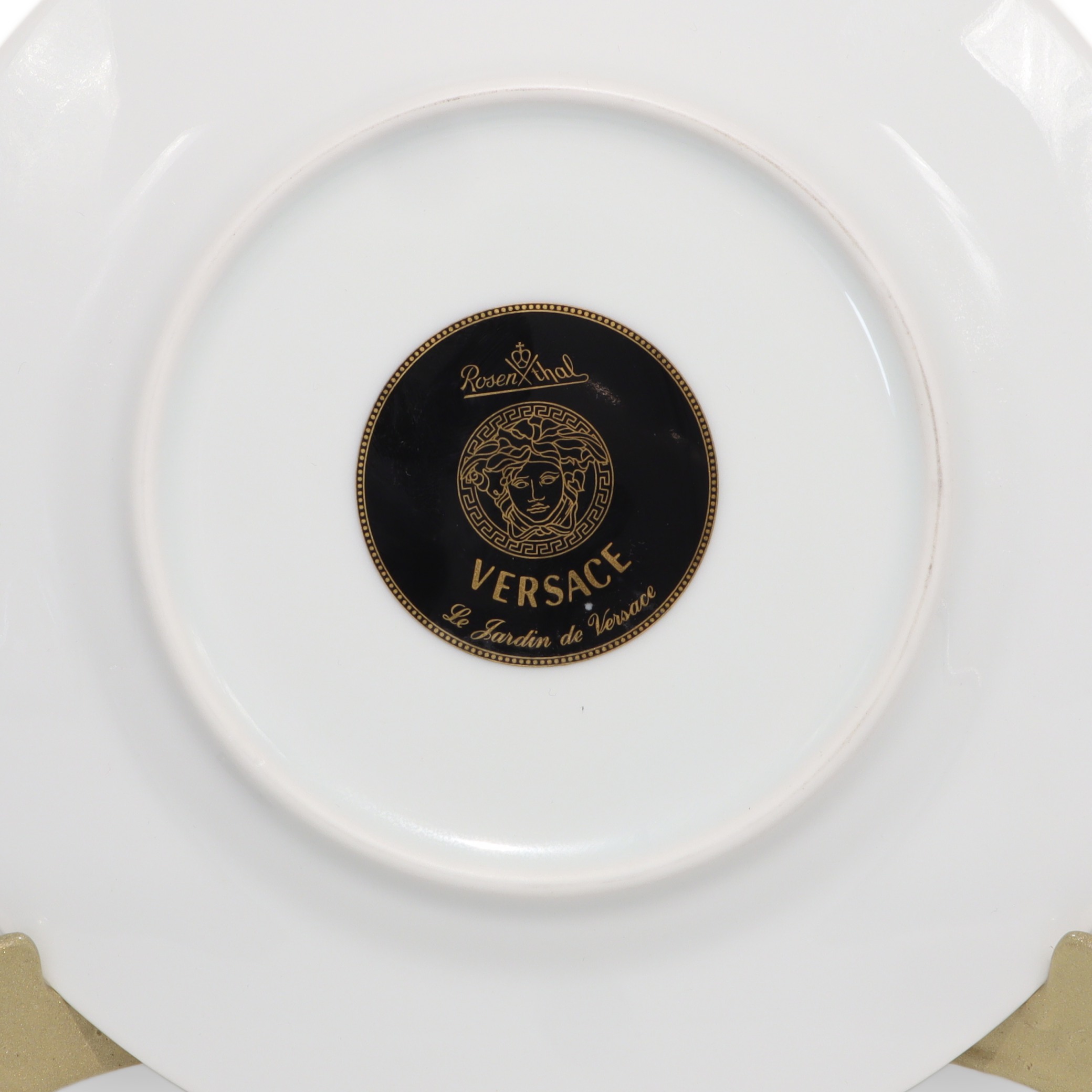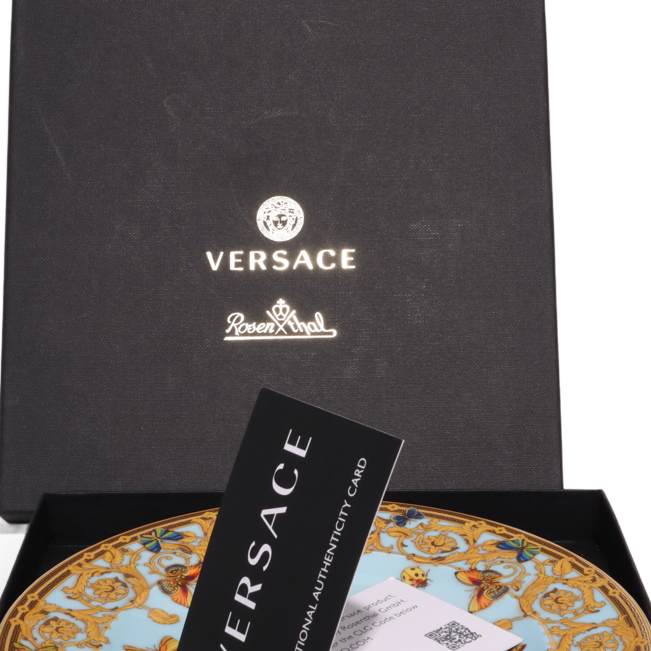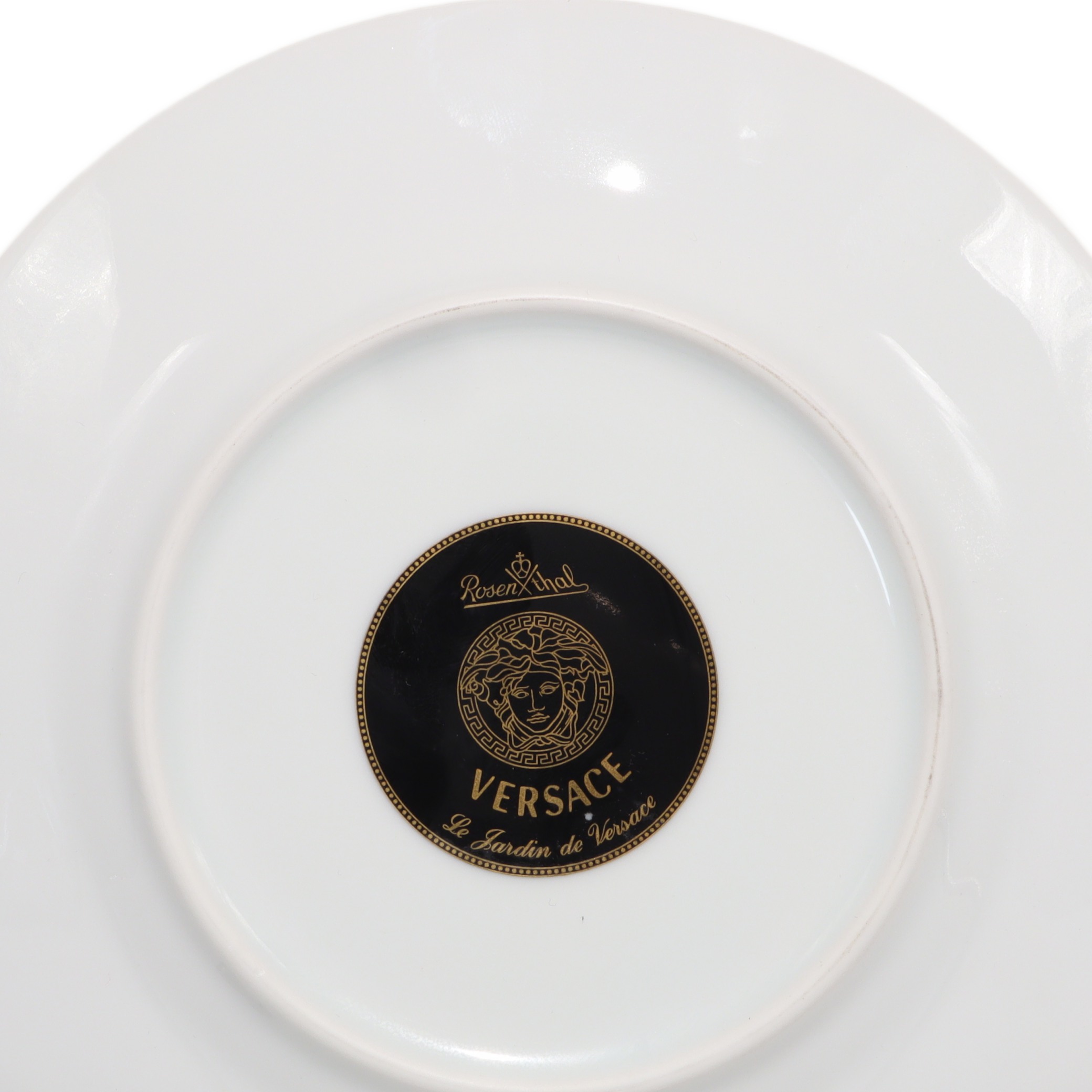 The Versace Butterfly Garden collection was created in partnership with the esteemed porcelain manufacturer Rosenthal, well-known for its high-quality, timeless pieces. The collection is famous for its vibrant, nature-inspired designs—specifically its butterflies and baroque golden curls—making every item in this line not just a piece of dinnerware, but a real statement piece for display. Items from the late 1970s and early 1980s have become increasingly rare and are sought after by collectors and lovers of vintage design. Pieces like this almost forty-year-old tea cup and saucer are especially prized for their craftsmanship, bright colors, and unmistakable Versace flair. If you find one in this kind of condition, it’s a little treasure—perfect for fancy afternoon tea or just to keep on display as a conversation starter.