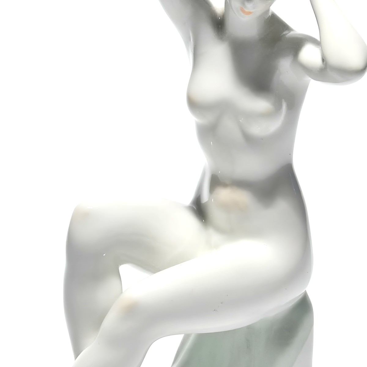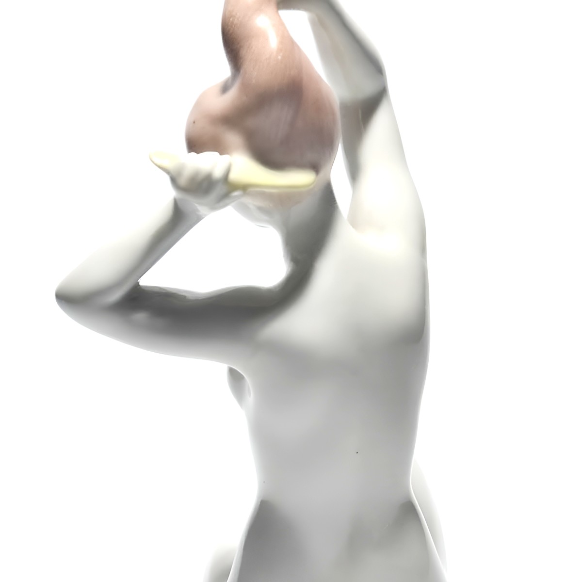 This stunning Vintage Aquincum Porcelain Figurine captures a timeless moment with exquisite detail. Featuring a graceful nude woman in a moment of serene self-care, this sculpture of a woman grooming herself is a beautiful addition to any collection. The soft…