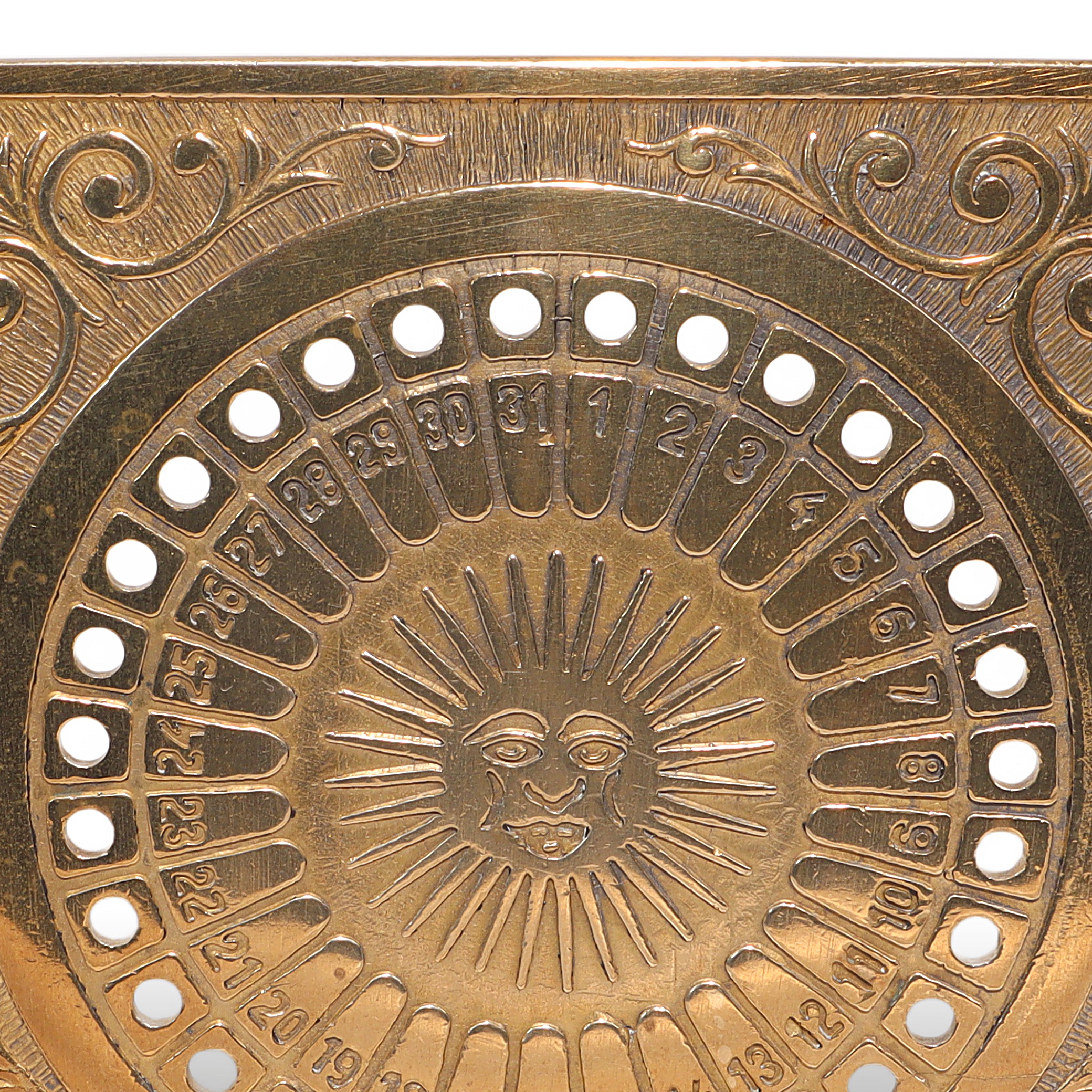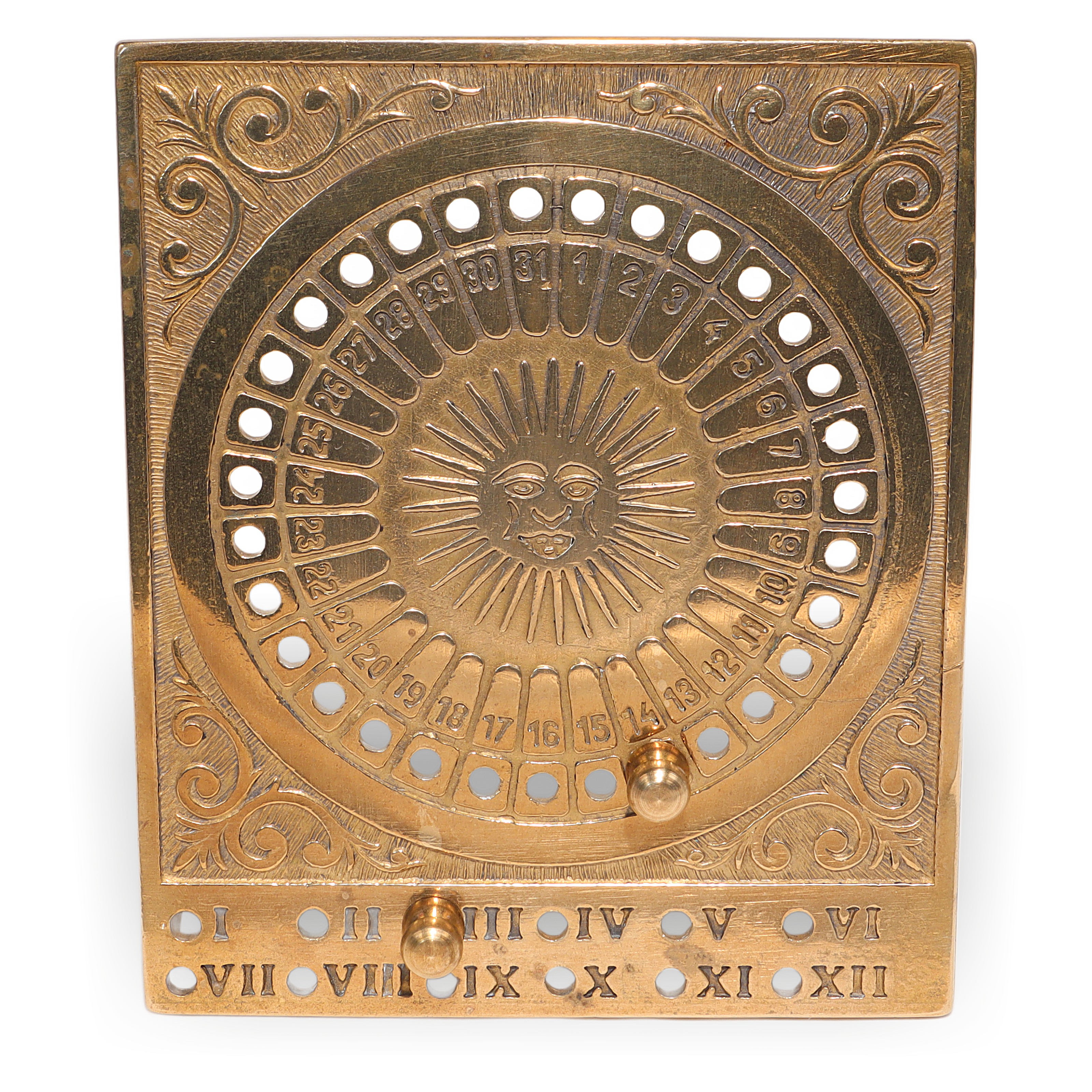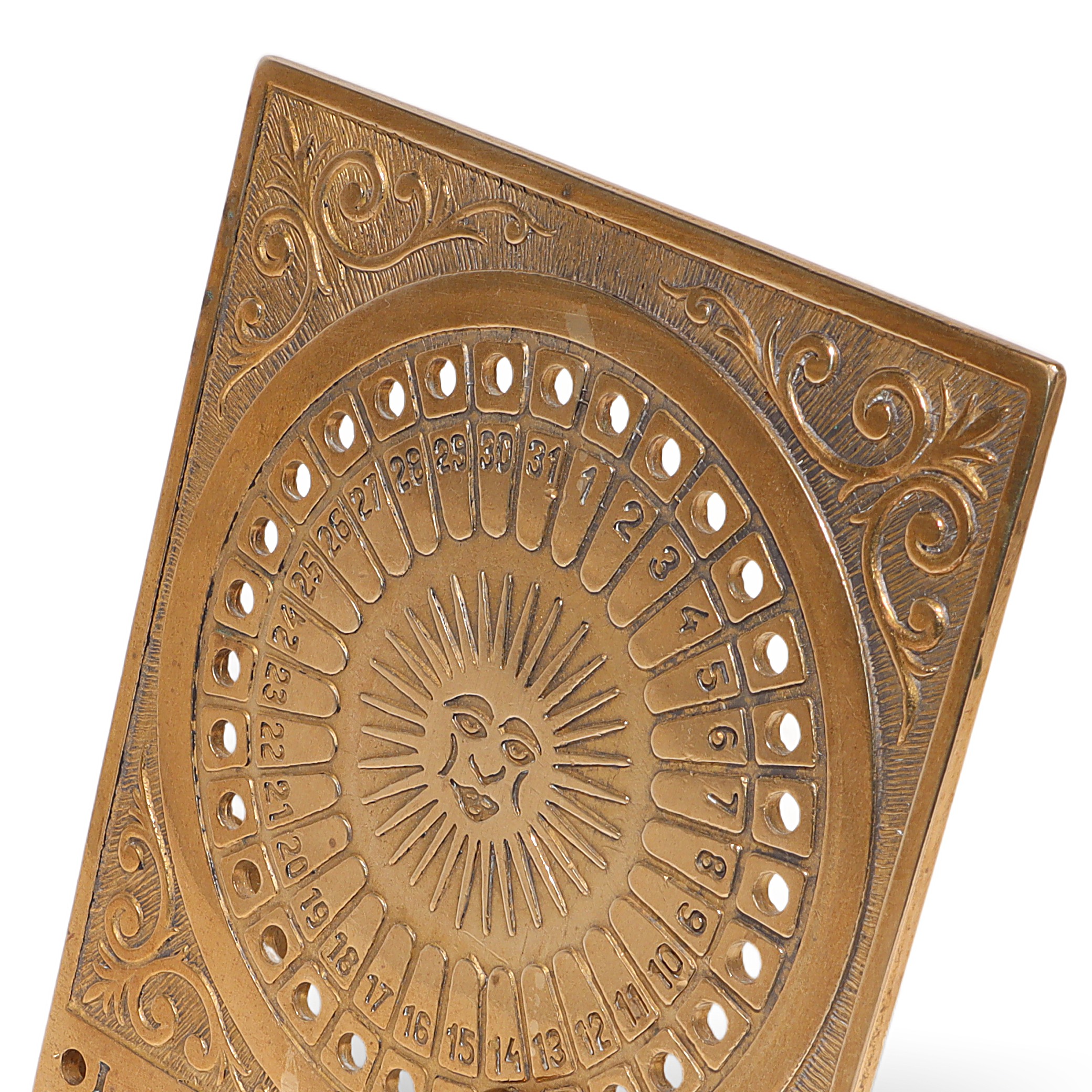 Vintage Brass Sun Perpetual Calendar Engraved Sundial Design - Desk Decor