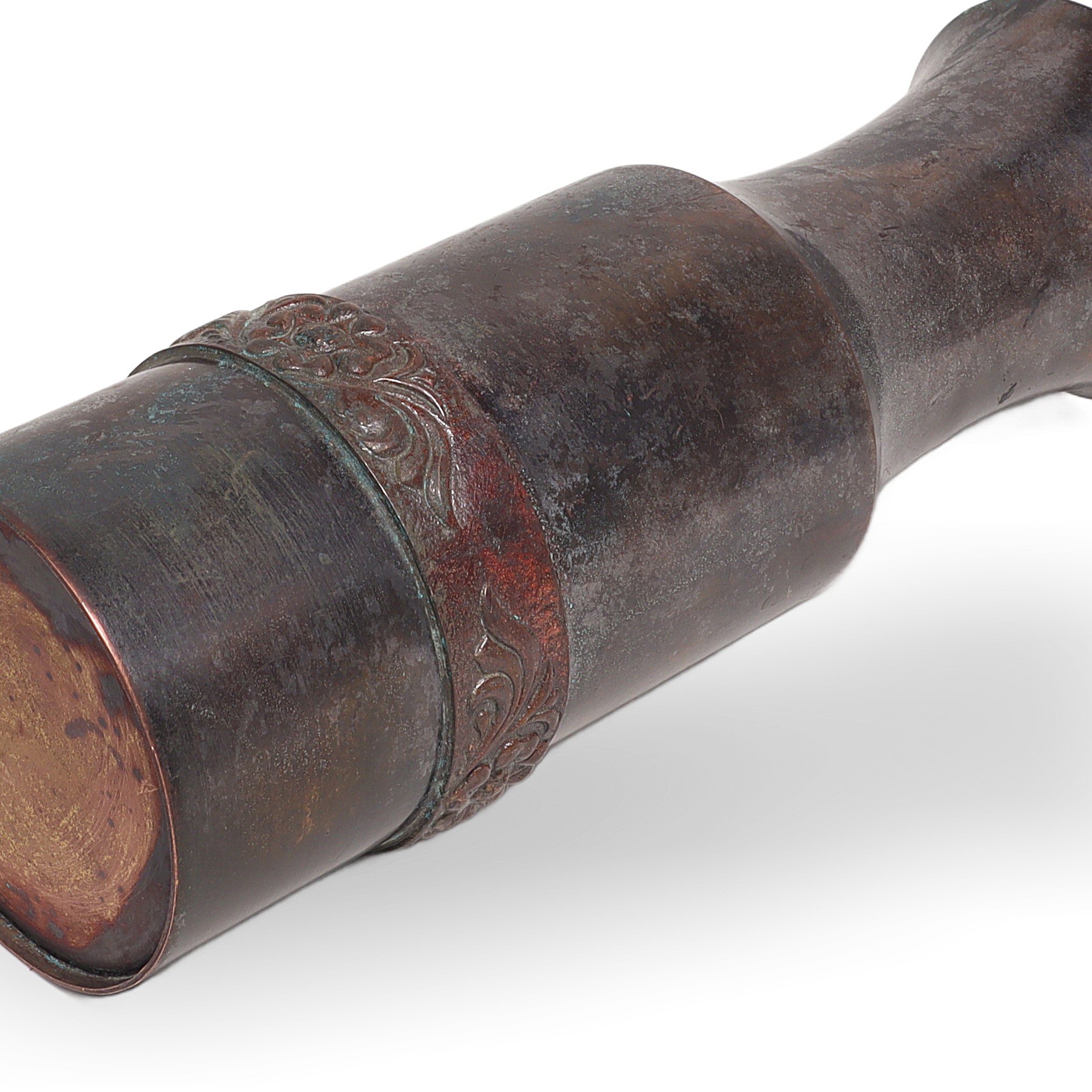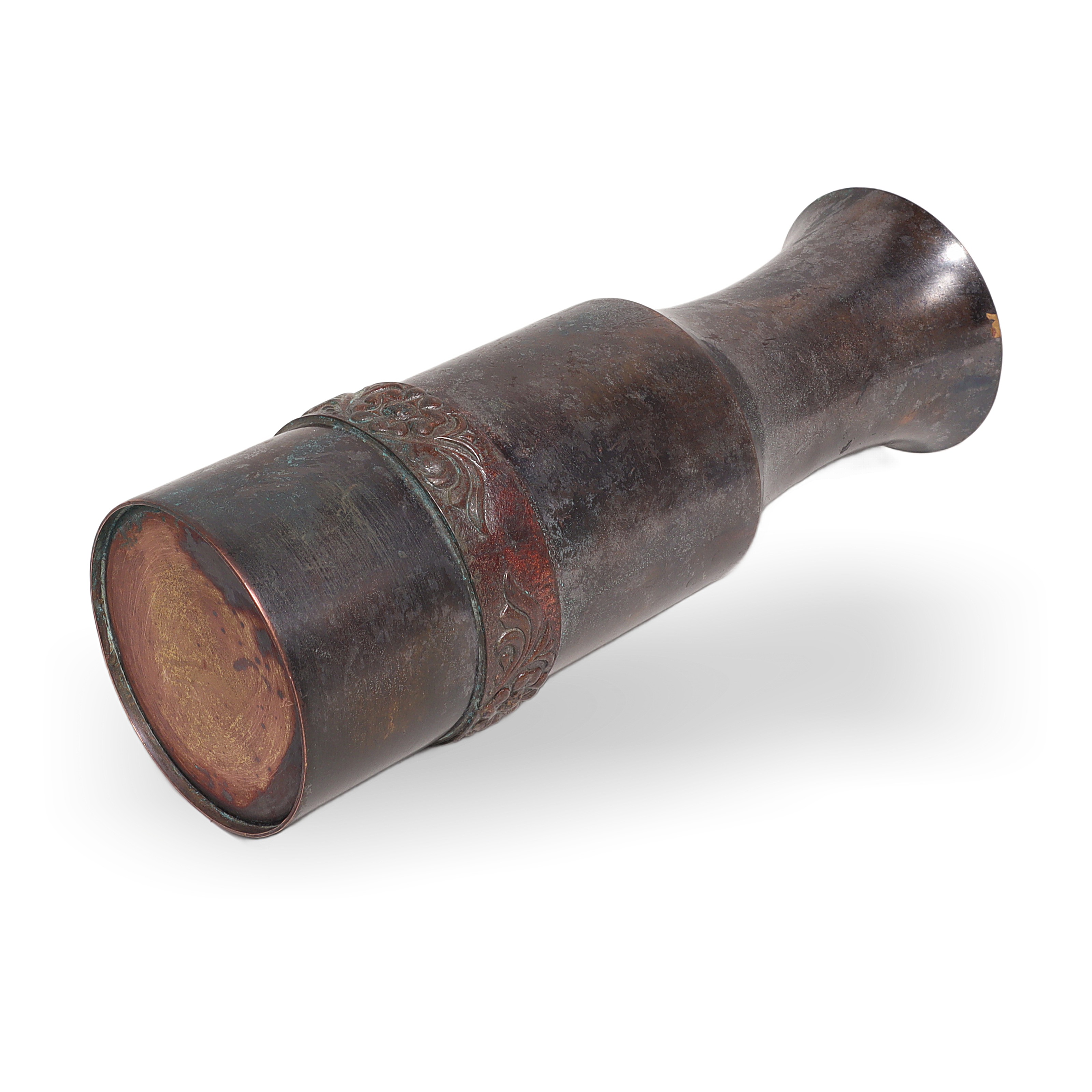 Brass vases like this were quite popular in the late ‘70s and early ‘80s, especially during the rise of the bohemian and mid-century modern trends. Handmade items from this era are really starting to become collectible, since every piece is a little unique, carrying subtle marks of the person who made it. You don’t see these in big box stores anymore, and finding one in this size and condition is a bit of a treat for vintage lovers. This line of handmade brass ware often came from regions skilled in metalwork, such as India, and was imported for people in the West who craved that global, artsy look in their homes. Their durability and style have helped them stick around, so this vase isn’t just a flower holder—it’s a little piece of 1980s decor history, still making a statement after all these years.