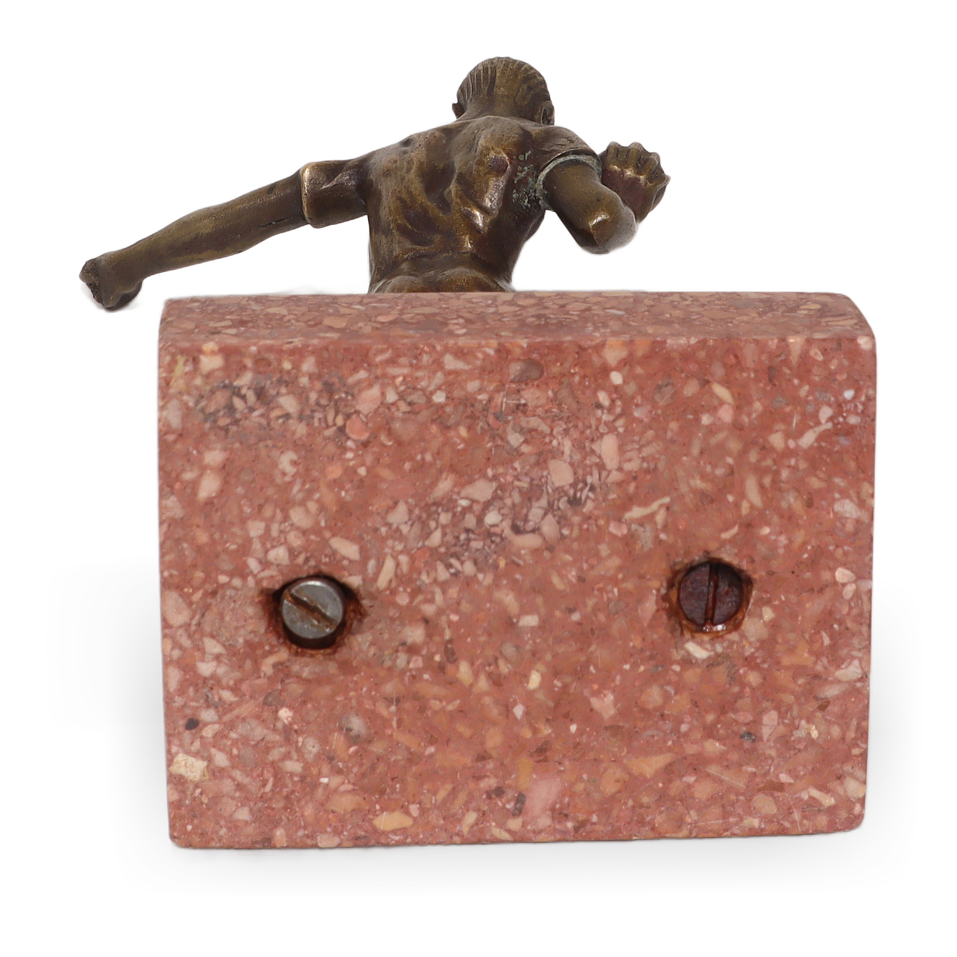 Bronze athletic sculptures from the 1960s and 70s were often made by smaller foundries in Europe, especially in countries like Italy and France, though some were also produced in the US and UK. These pieces sometimes weren’t mass-produced, so there aren’t huge numbers floating around, making them a bit on the rare side. What makes this particular piece special is its Art Deco inspiration—a style known for its bold lines, stylized movement, and celebration of physical form, all of which come through in the sculpture’s posture and muscles. Whether you’re a sports enthusiast, a lover of mid-century décor, or someone searching for a unique hand-me-down with character, this shot putter sculpture stands out as a genuine artifact from its era, capturing the energy and optimism of a bygone sports age.