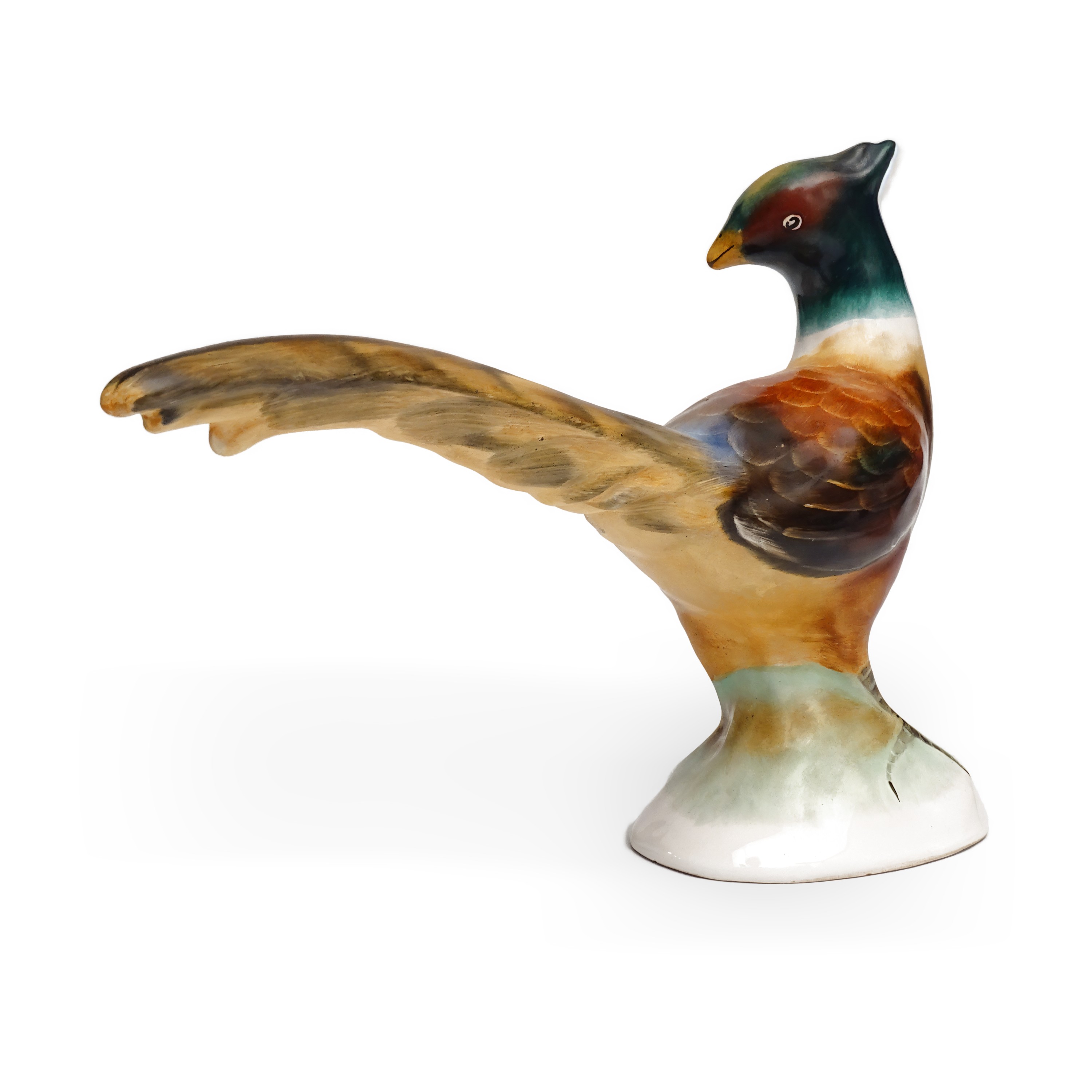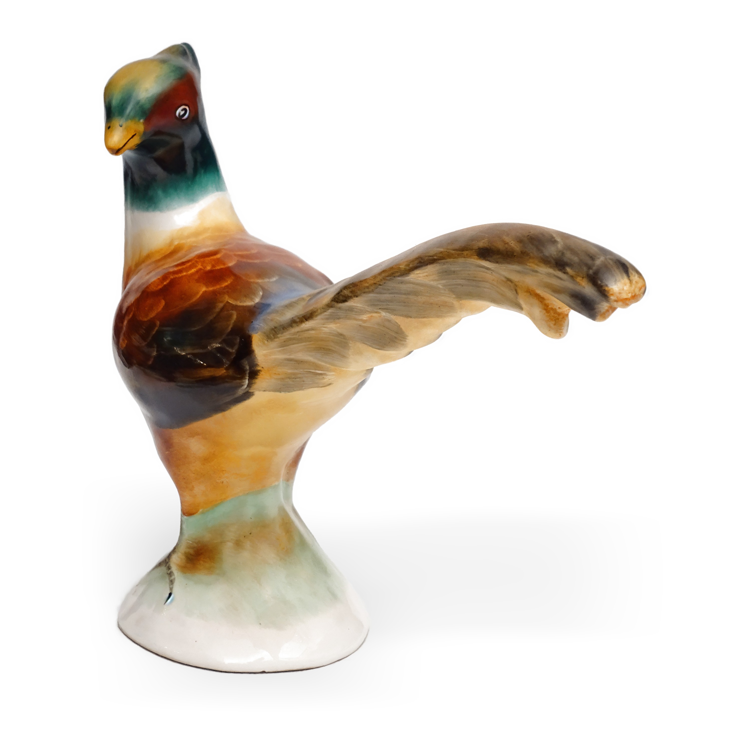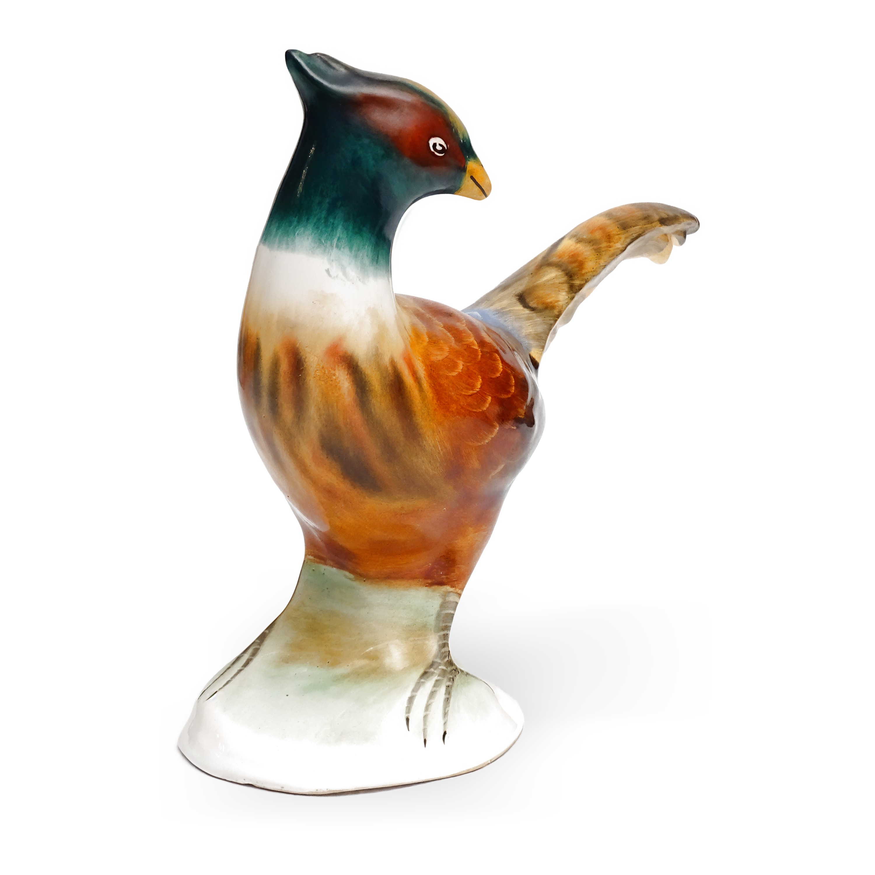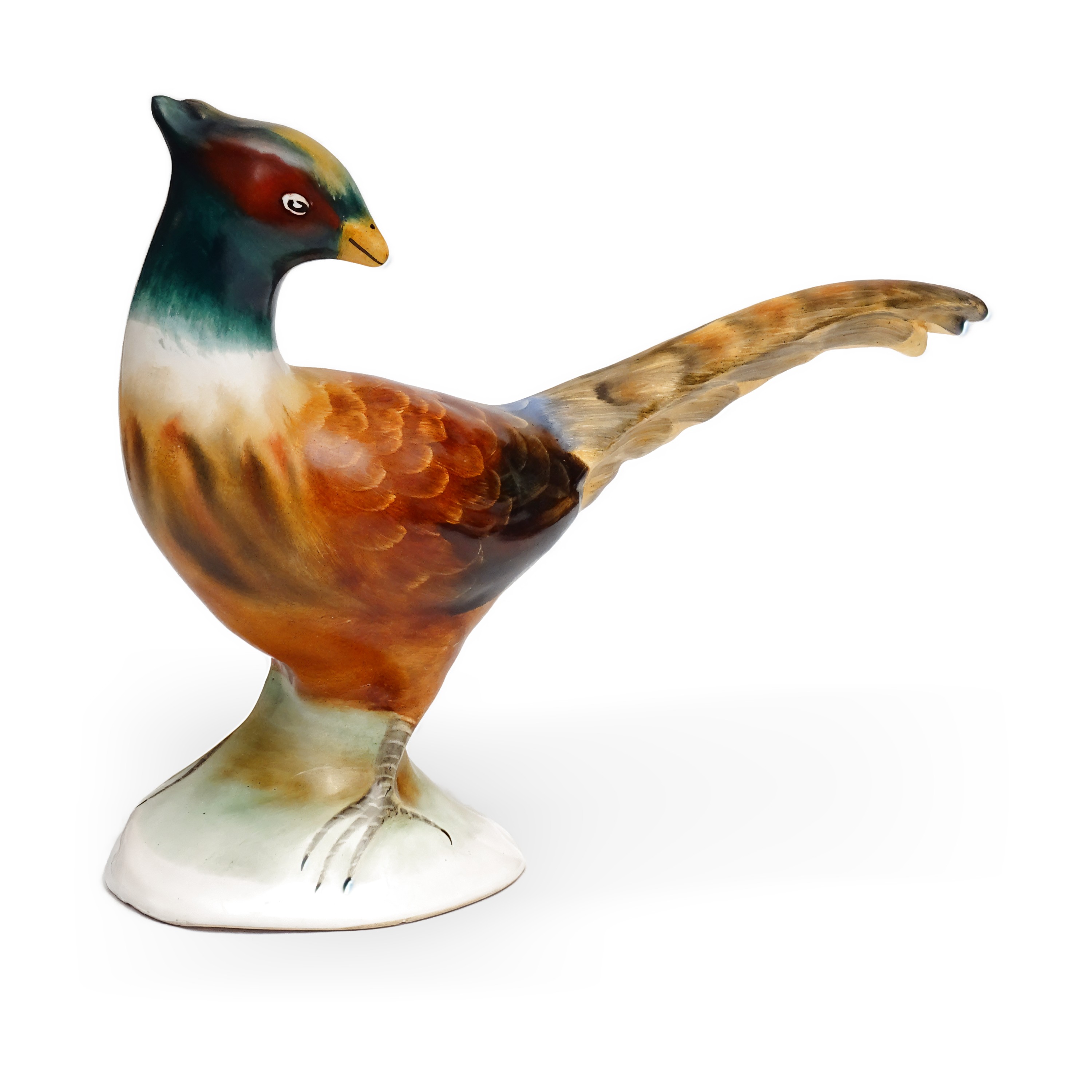 This charming Pheasant Porcelain figurine captures the vibrant beauty of a pheasant in stunning detail. Measuring approximately 8 inches tall, this piece is in excellent condition, with bright, vivid colors and a glossy finish that will catch the eye. It’s a perfect addition for anyone who loves to bring a touch of nature into their home decor.