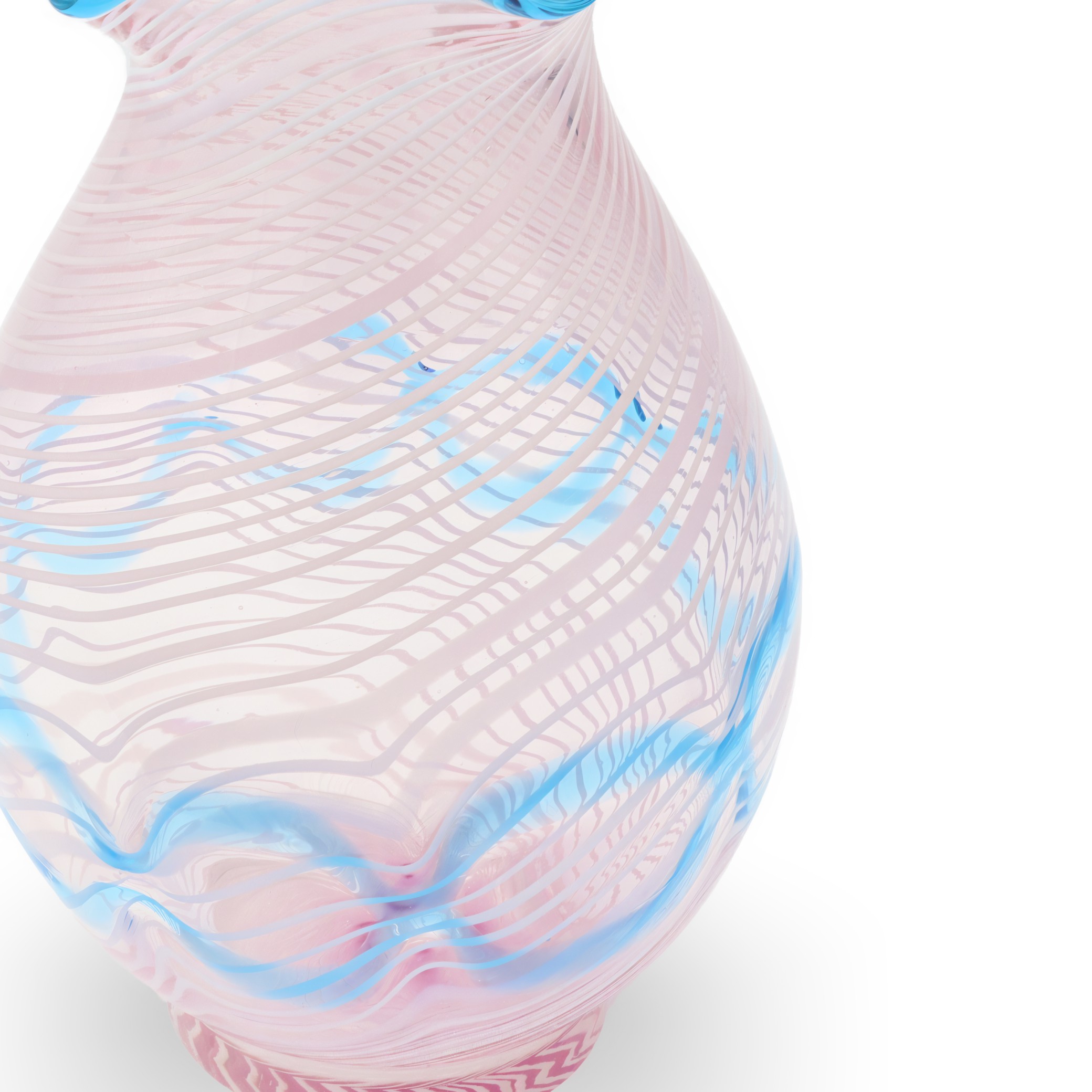 As an item produced in 1970, this vase is over 50 years old, making it a significant vintage find. Its age and the pristine condition only add to its rarity and desirability among collectors. Murano glass from the mid-20th century, especially pieces that display the bold yet subtle aesthetic of this vase, is highly sought after. They reflect the mid-century modern style, which was known for its free-form designs and departure from the rigid patterns of previous eras. This vase not only serves as a functional item but also delivers a slice of design history that many contemporary pieces aim to replicate.