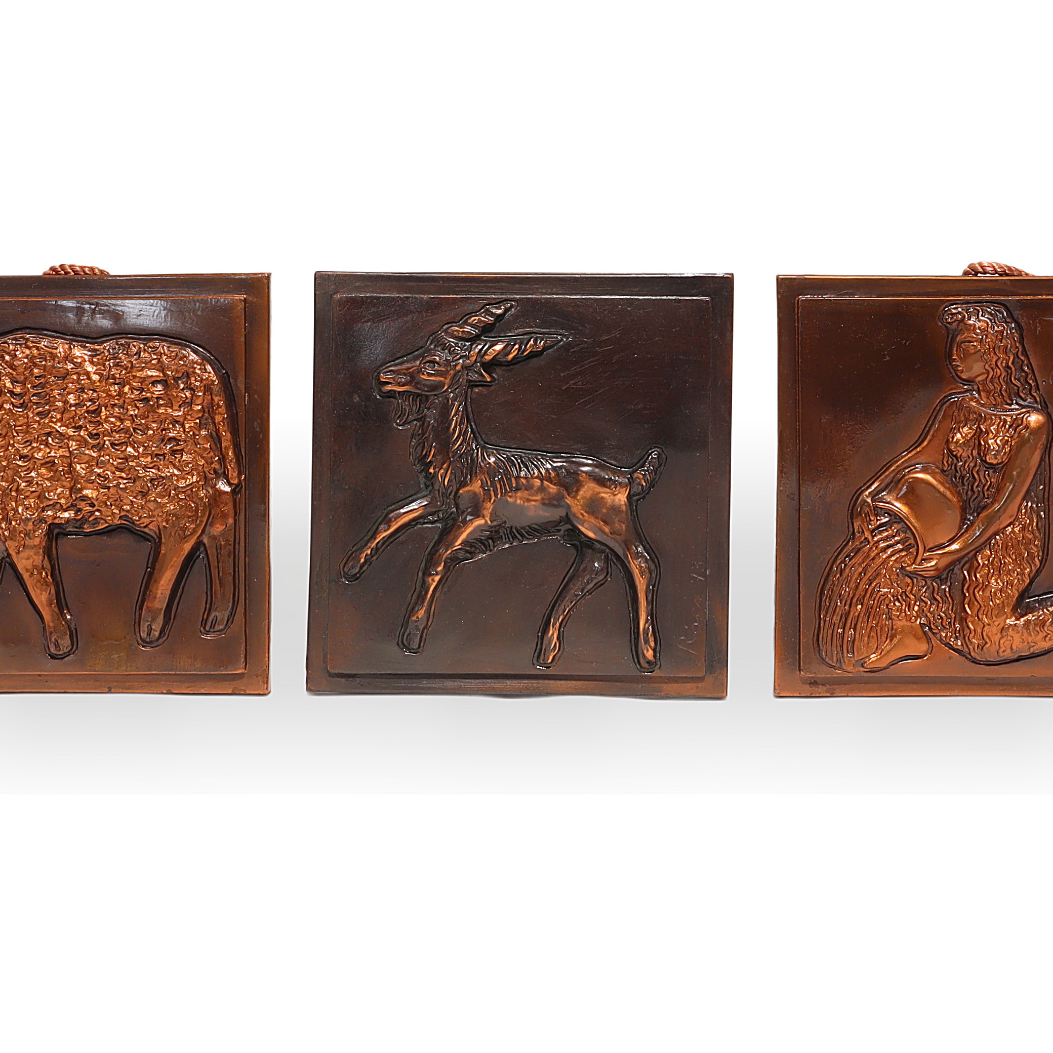 What you’re looking at here is a set of vintage Zodiac copper wall plaques from around 1970. Each piece is handmade…
