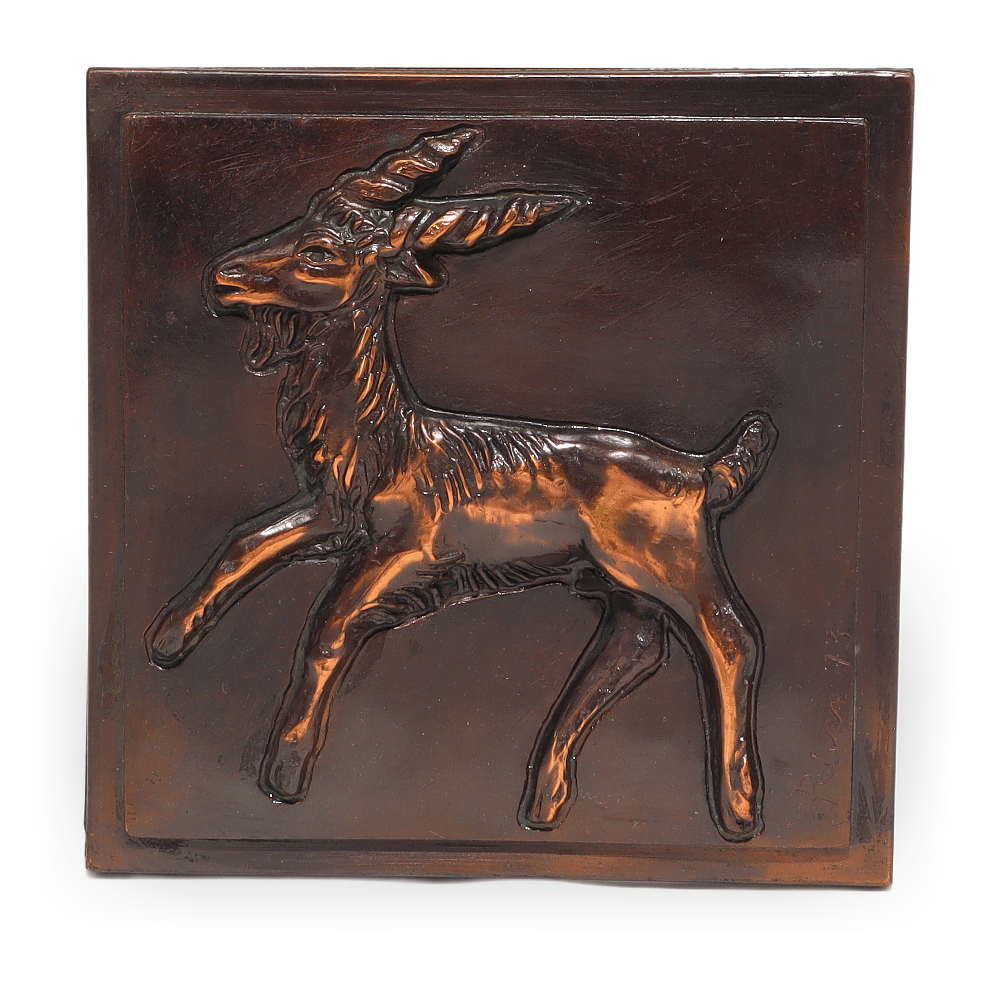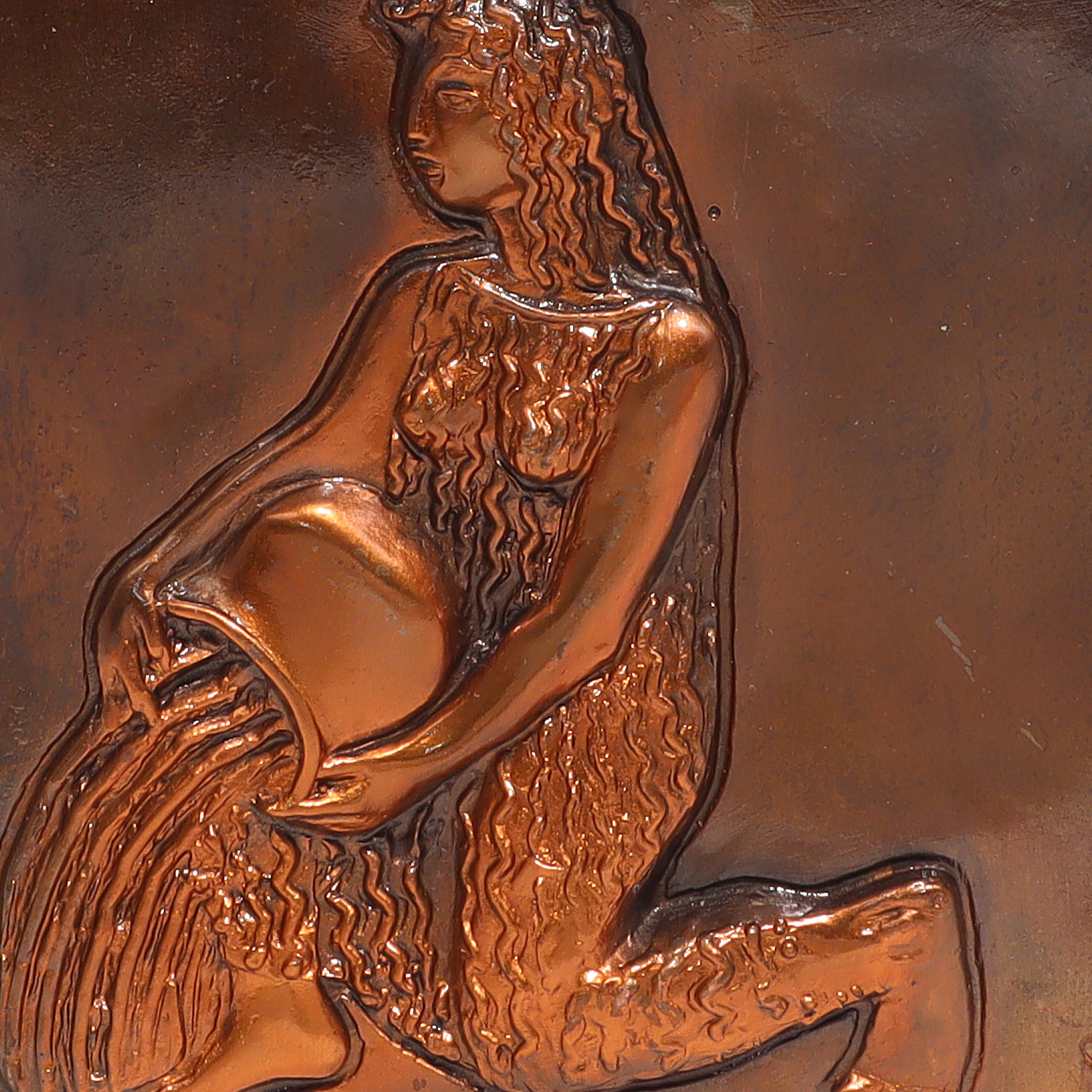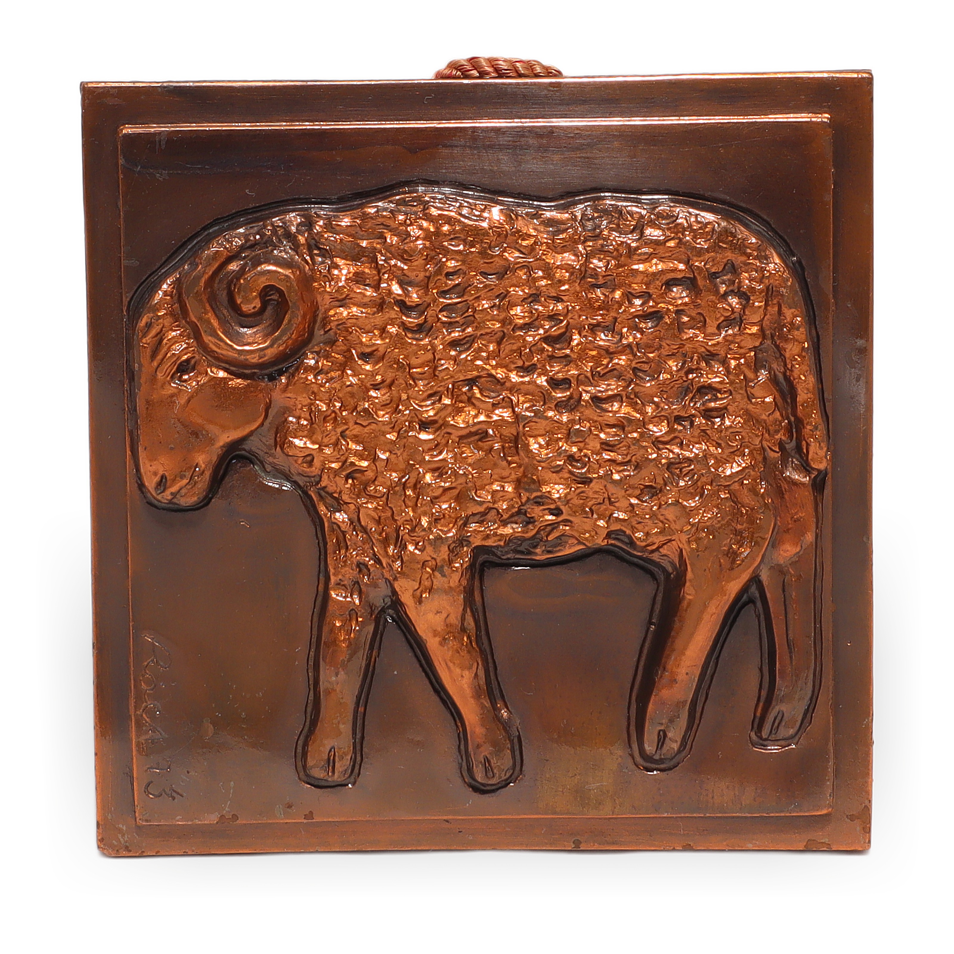 What you’re looking at here is a set of vintage Zodiac copper wall plaques from around 1970. Each piece is handmade and features beautiful embossed designs representing different astrological signs – Aries the ram, Capricorn the goat, and Aquarius the water bearer. These copper plaques are around 4.5 inches square and about an inch thick, which makes them the perfect size for displaying on a wall or shelf. The patina and crafted detail really capture that 1970s vibe, and considering they’re over 50 years old, they’re in remarkable near mint condition. Pieces like this have gotten more and more rare as time goes on, both because copper was a trendy material in mid-century home décor, and because handmade wall art always seems to get snapped up by collectors and folks looking to add a unique touch to their home.