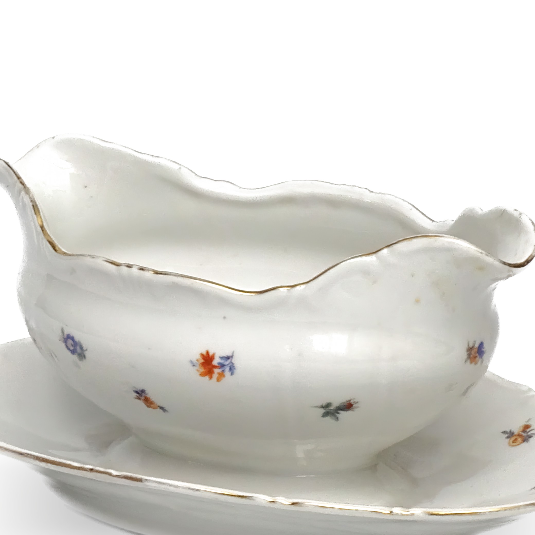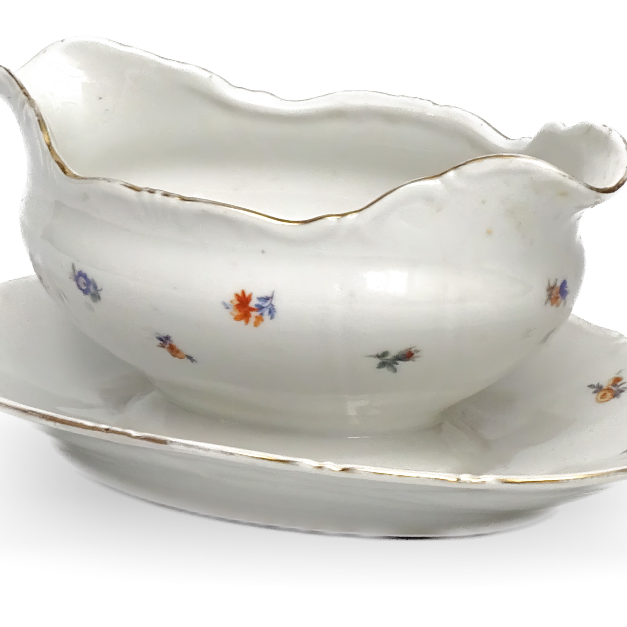 The 1960s were a pivotal time for Zsolnay as they continued to adapt and create pieces that reflected contemporary styles while maintaining their traditional quality. This gravy boat is a perfect example of how Zsolnay blended modern sensibilities with their classic design elements. The enduring appeal of their products is reflected in the high demand among collectors today, with each piece considered not just as tableware, but as a work of art.
