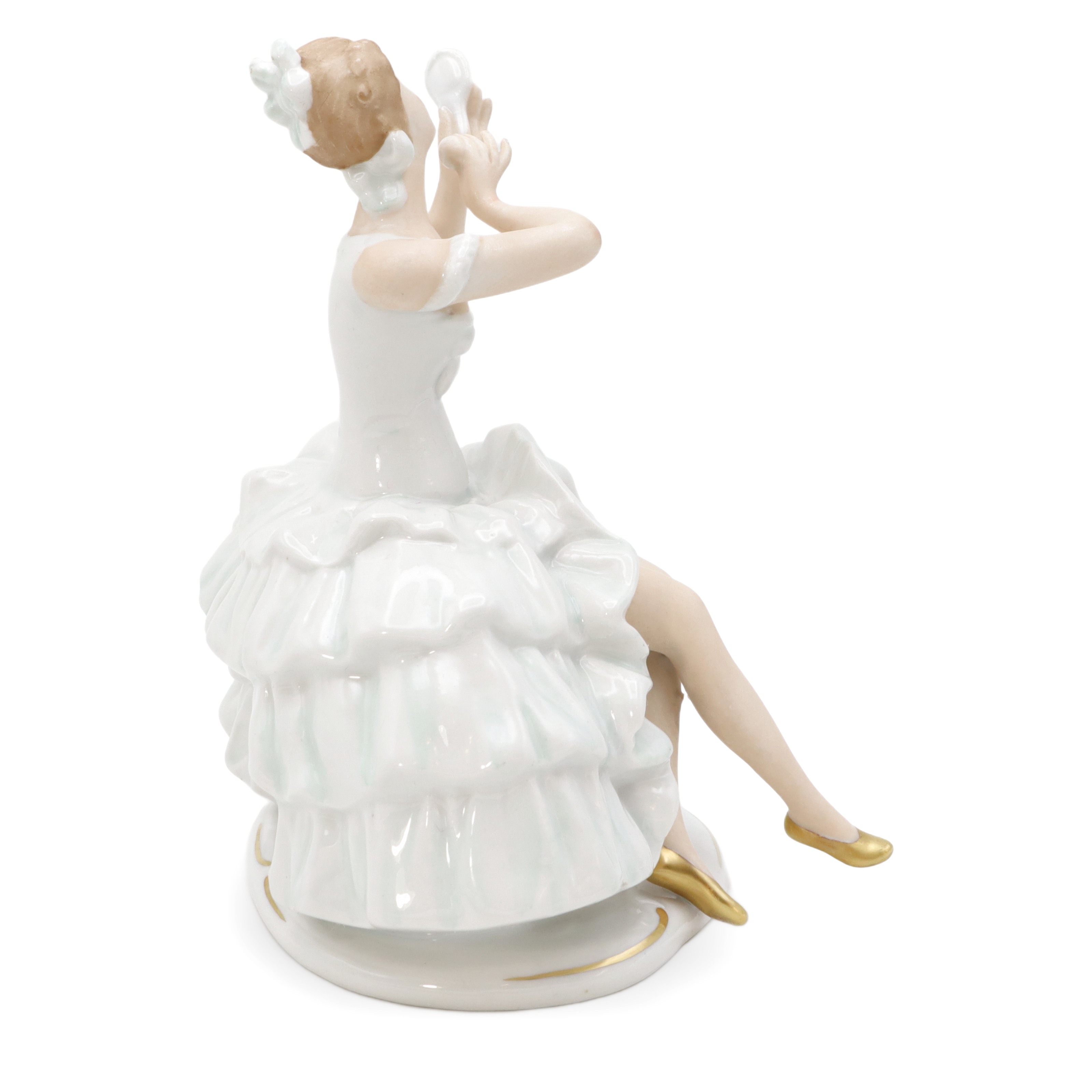 This charming piece is a Wallendorf Ballerina, also known by Schaubach Kunst, and it’s a wonderful example of mid-century German porcelain artistry. Crafted in 1960, this figurine stands about 7 inches tall, 5.5 inches wide, and measures 5 inches in length. It captures a graceful ballerina seated with poise, caught in a delicate moment, perhaps mid-rehearsal or lost in reflection. The attention to detail is remarkable—from the folds in her ruffled tutu to the gentle curve of her arms. Finished with just a hint of gold on the tiny ballet slippers, this figurine showcases the high standards of craftsmanship typical of its era. Despite being over 60 years old, it’s considered near mint, which is pretty rare for something so delicate that’s been around for generations.
