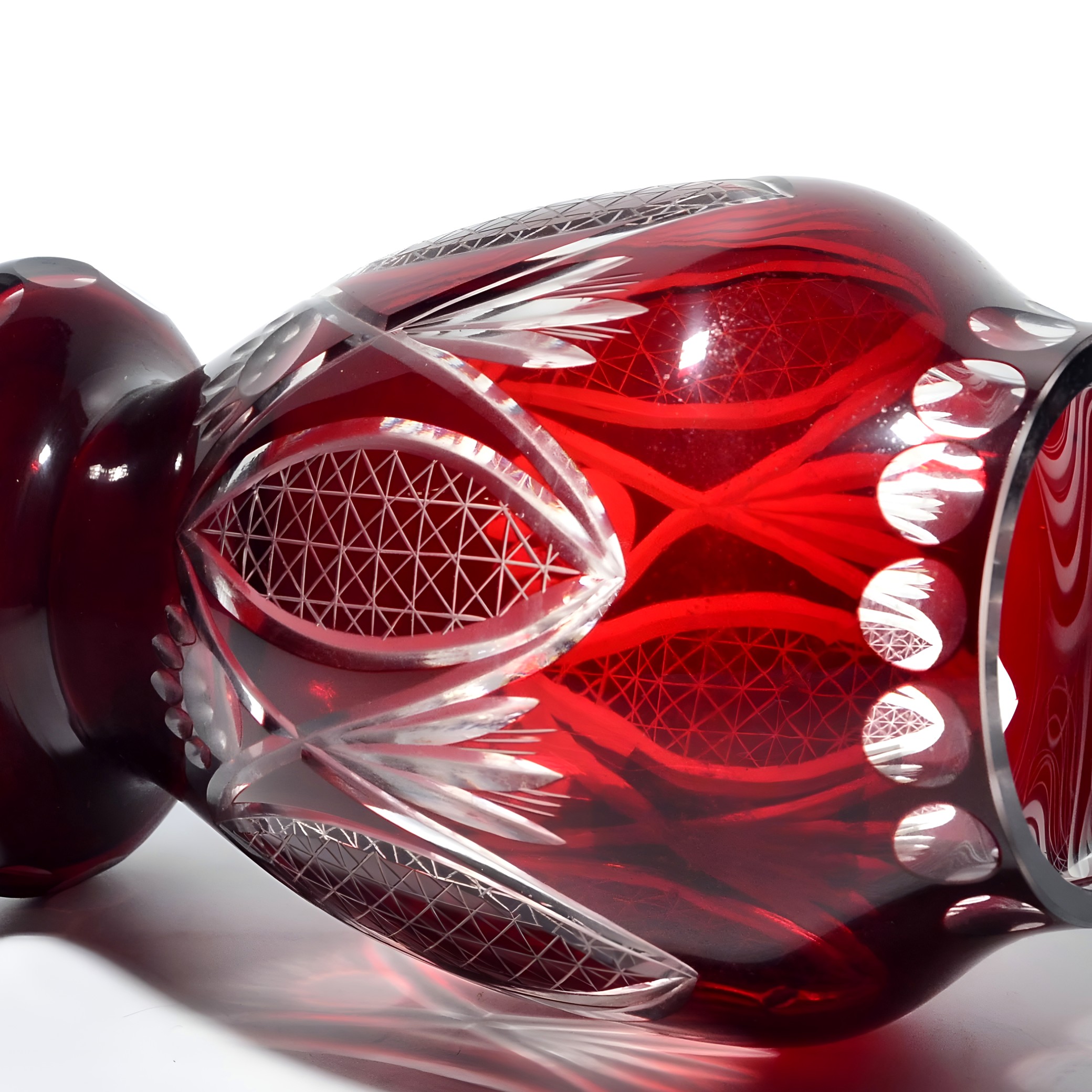 Vases like this one are perfect for those looking to add a touch of mid-century sophistication to their home. Whether displayed on its own or used to hold a bouquet of flowers, this red crystal vase is sure to make a statement. Its durability and style ensure it will be a cherished piece for years to come, a relic of a bygone era when artistry and craftsmanship were at the forefront of design. Collectors and decorators alike prize pieces like this for their beauty, history, and the sense of nostalgia they evoke, making them much more than just decorative objects but cherished pieces of art.