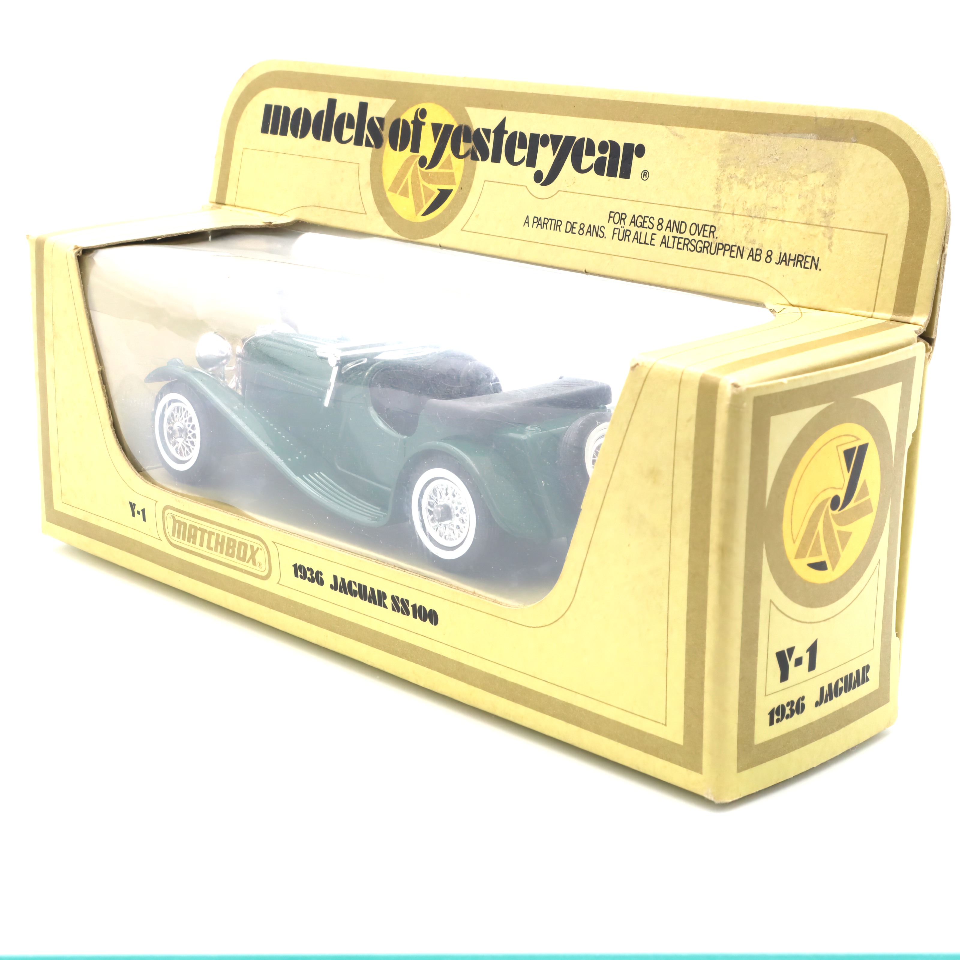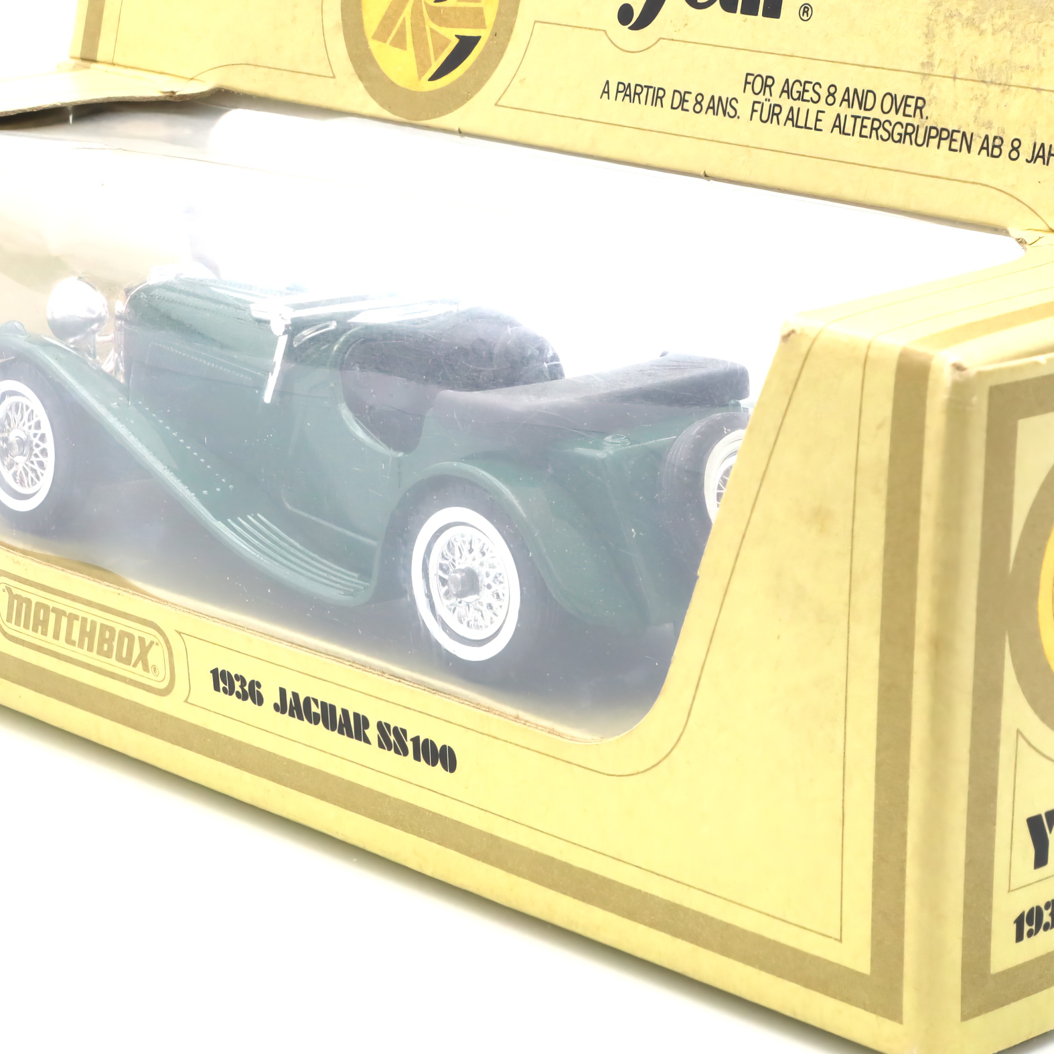 This little beauty is a diecast replica of the iconic Jaguar SS100, one of the most celebrated British sports cars from the 1930s. Known for its sleek design and powerful performance, the original SS100 was a game-changer in its time. This model captures all the elegance and detail of the original in a small, collectible size. It’s in pristine, mint condition, meaning it’s just as shiny and perfect as the day it was made. The deep green color and fine detailing make it a perfect piece for any car enthusiast’s collection. Owning this vintage model is like holding a piece of automotive history in your hands—it’s a throwback to a golden age of car design and engineering.