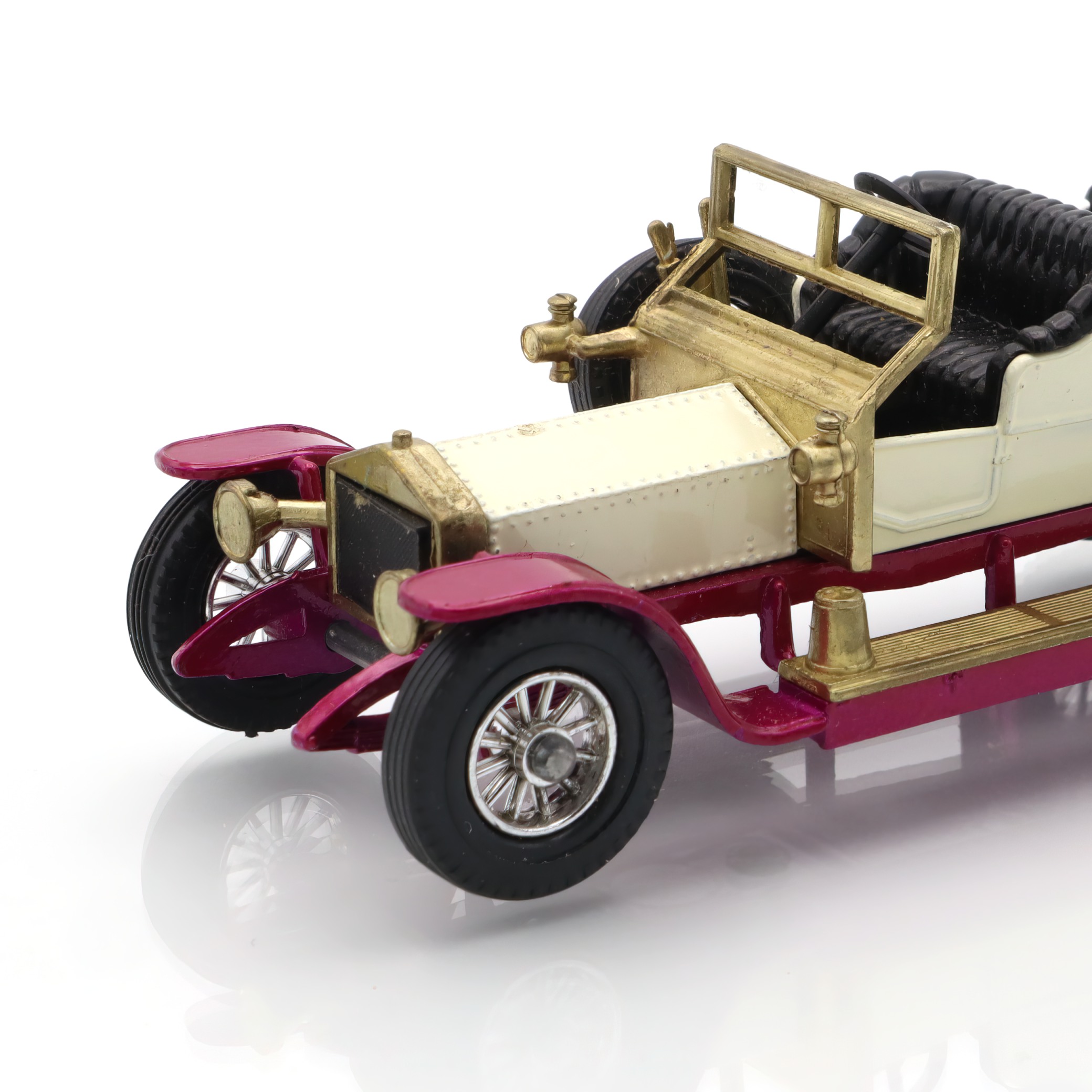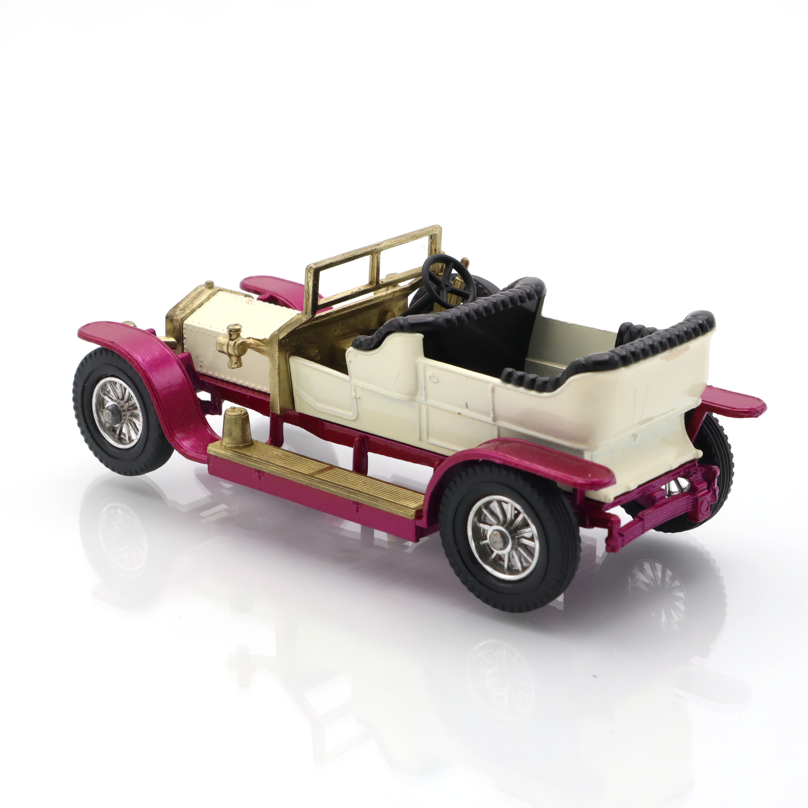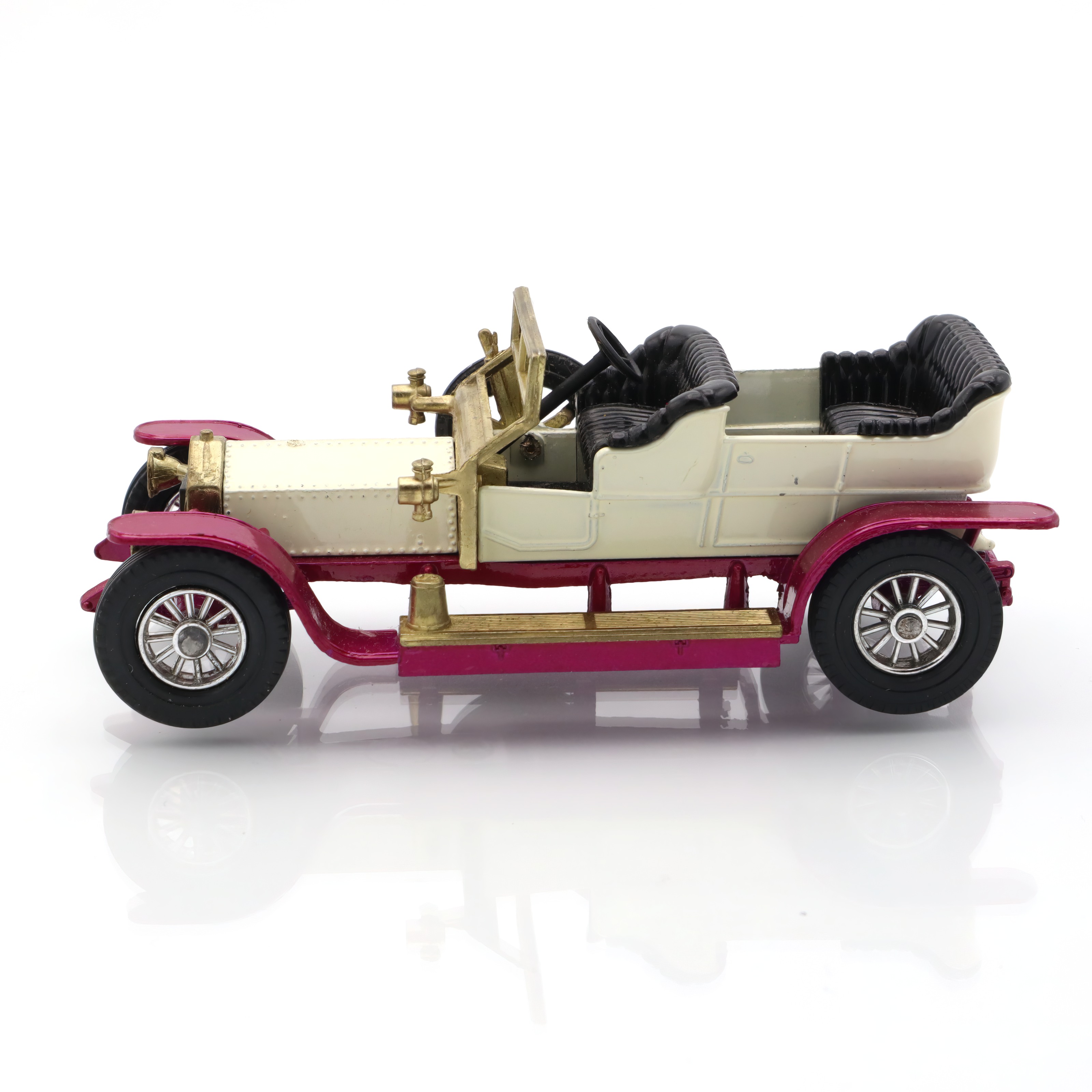 This delightful little artifact is a diecast model of the 1906 Rolls Royce Silver Ghost, a remarkable piece of nostalgia for collectors and car enthusiasts alike. The model captures the elegance and grandeur of the original vehicle, complete with intricate detailing that harkens back to the early days of automotive luxury. Its pristine mint condition makes it a true gem for those who appreciate vintage collectibles. With its glossy finish and accurately crafted features, this replica not only serves as a reminder of the Silver Ghost’s historical significance but also as a charming display piece that can easily spark conversations in any collection.