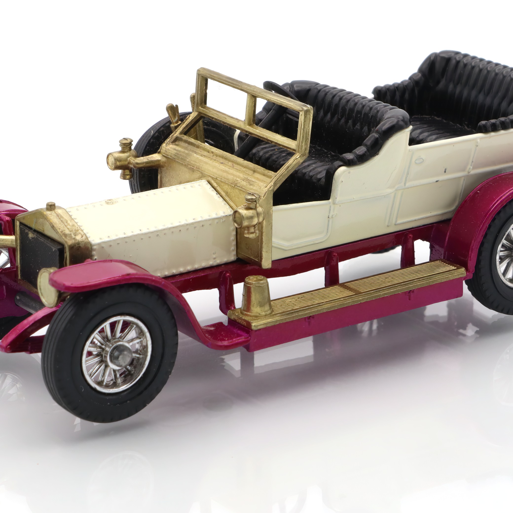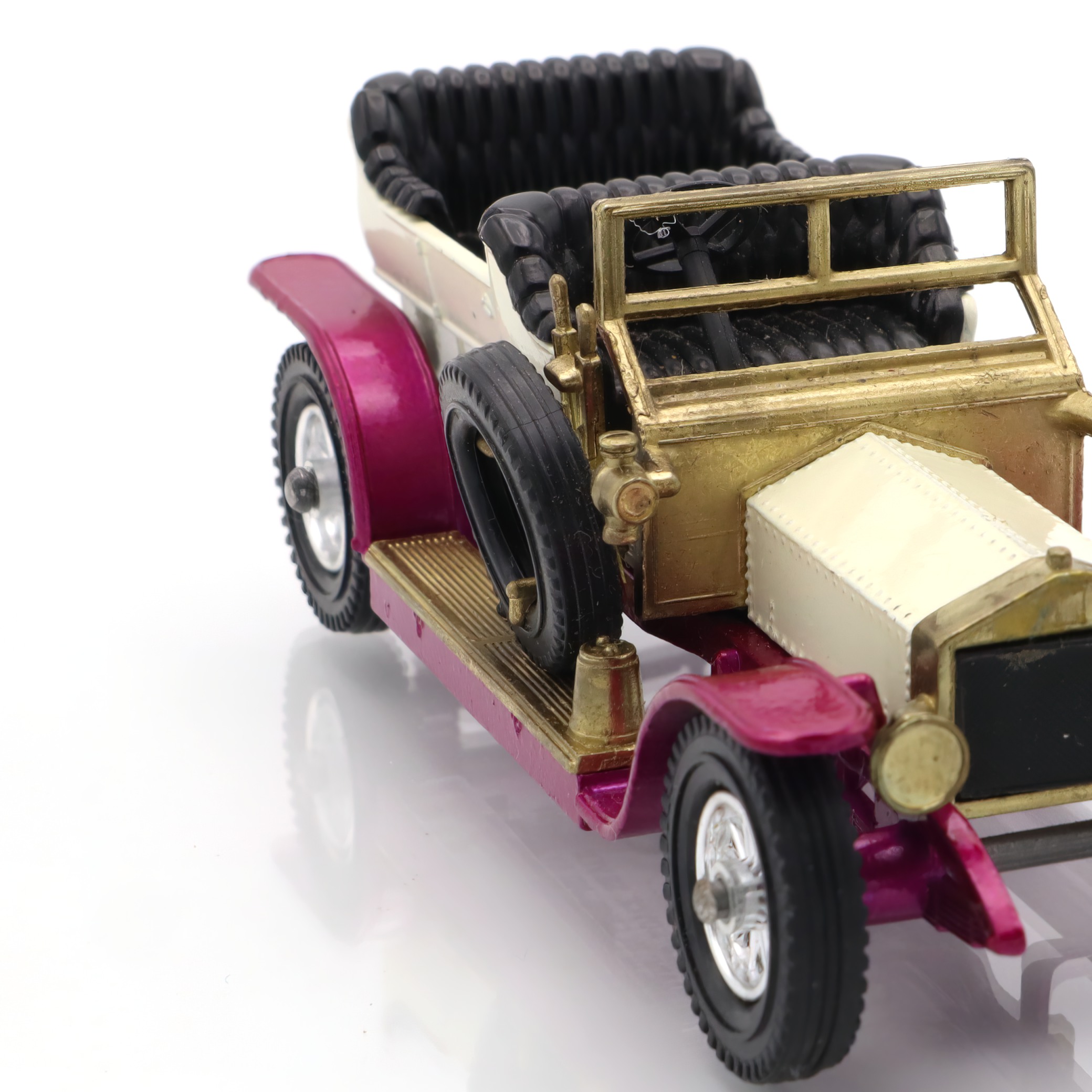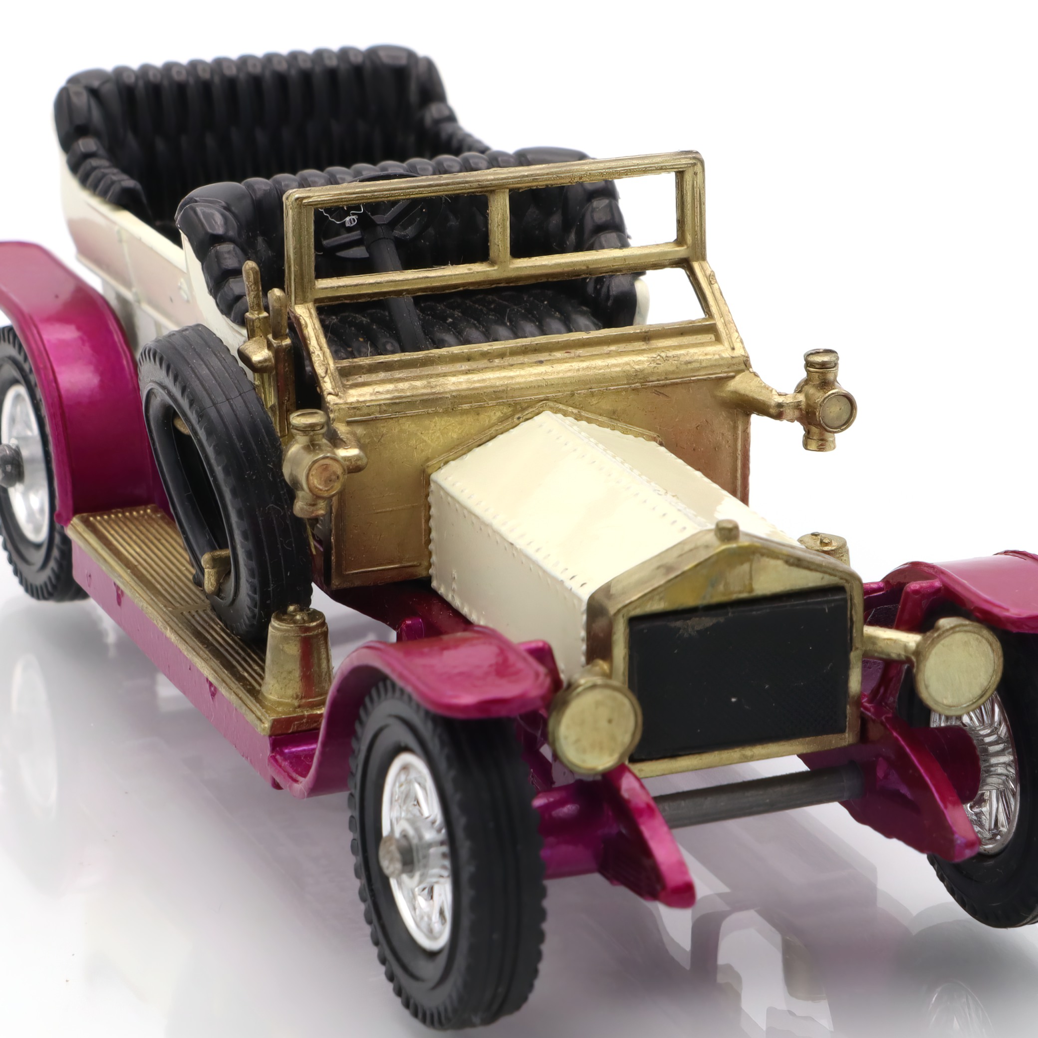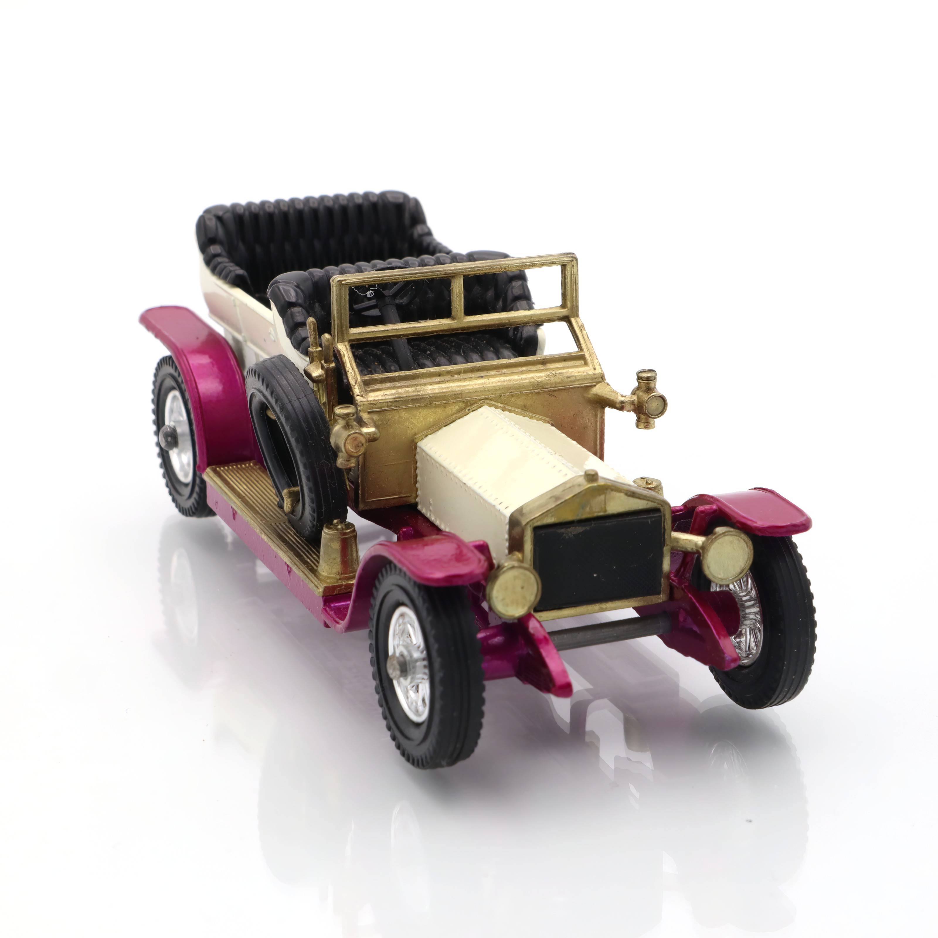 This delightful little artifact is a diecast model of the 1906 Rolls Royce Silver Ghost, a remarkable piece of nostalgia for collectors and car enthusiasts alike. The model captures the elegance and grandeur of the original vehicle, complete with intricate detailing that harkens back to the early days of automotive luxury. Its pristine mint condition makes it a true gem for those who appreciate vintage collectibles. With its glossy finish and accurately crafted features, this replica not only serves as a reminder of the Silver Ghost’s historical significance but also as a charming display piece that can easily spark conversations in any collection.