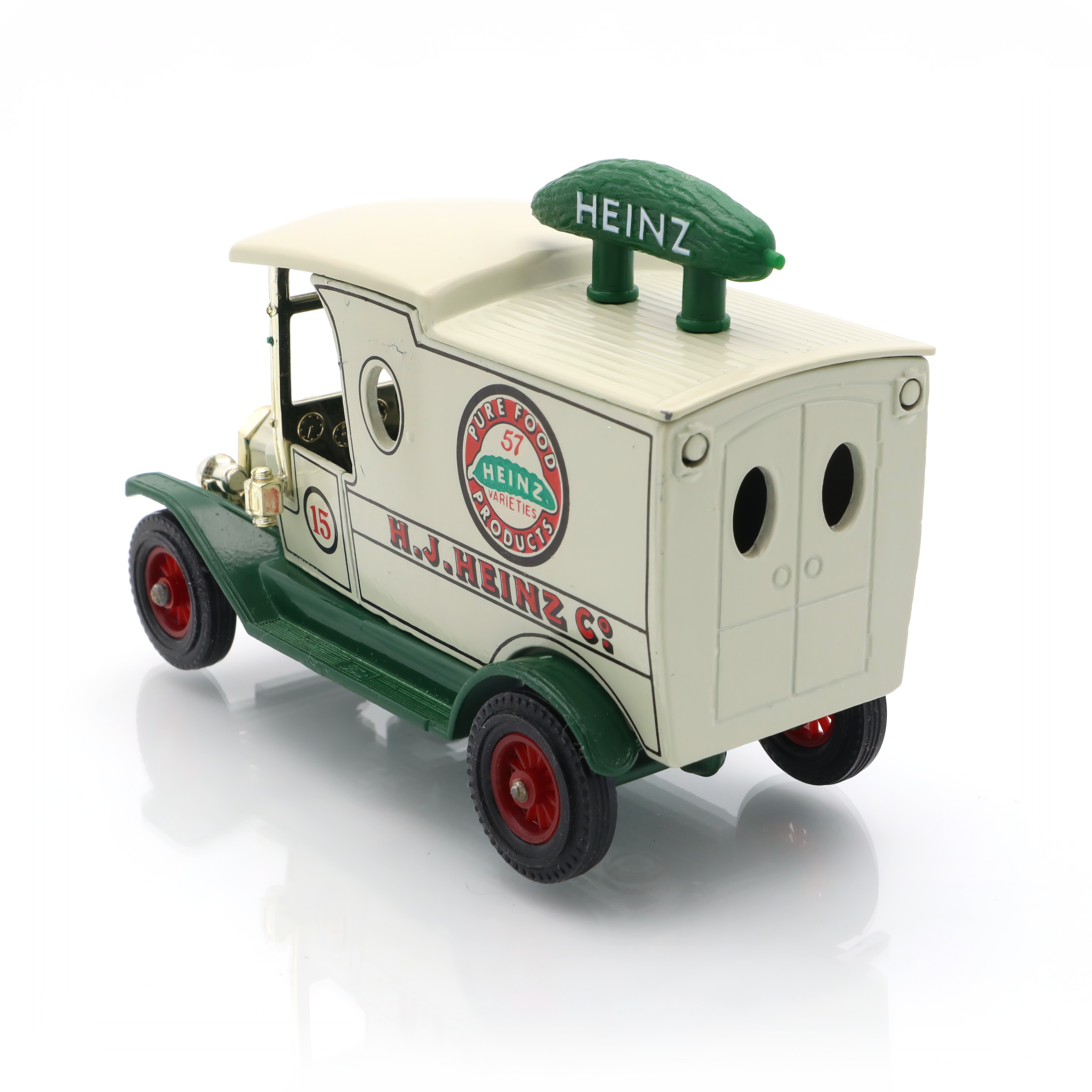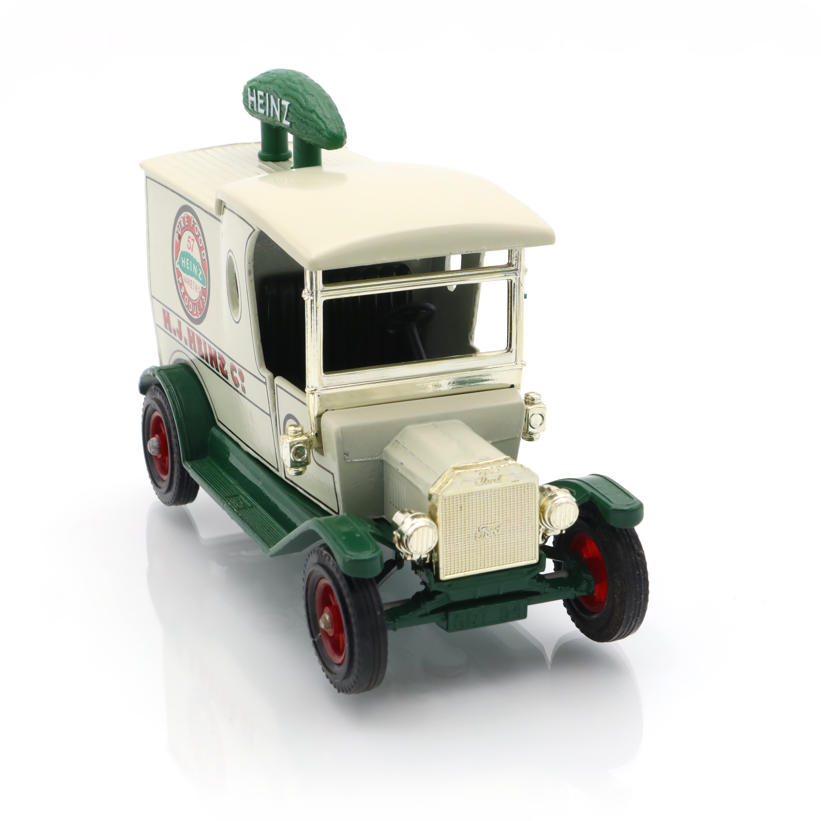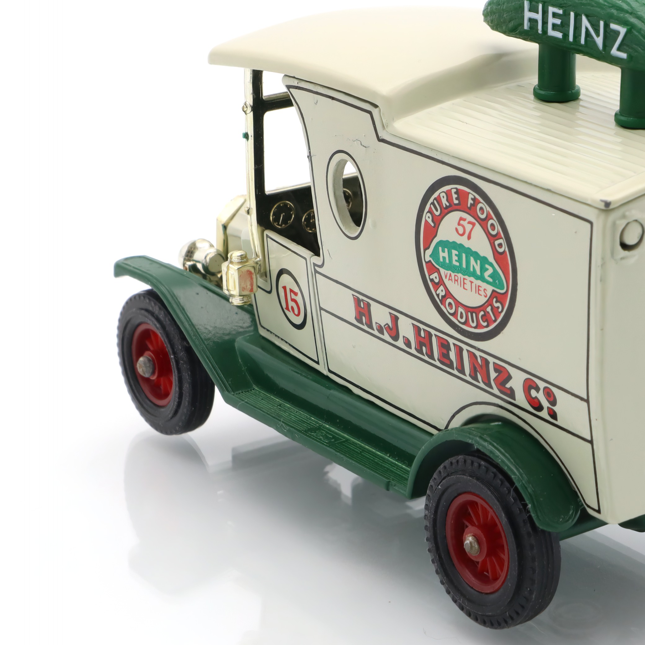 Heinz, on the other hand, has been a household name for well over a century. Known for its slogan “57 varieties,” Heinz exemplified clever marketing, which makes this replica a fantastic intersection of automotive and advertising history. The pickle on top of this mini model is a playful nod to Heinz’s branding, adding a touch of whimsy and character. It’s not just a toy or a model; it’s a storytelling piece that connects you to the early 20th century’s vibrant commercial scene.
