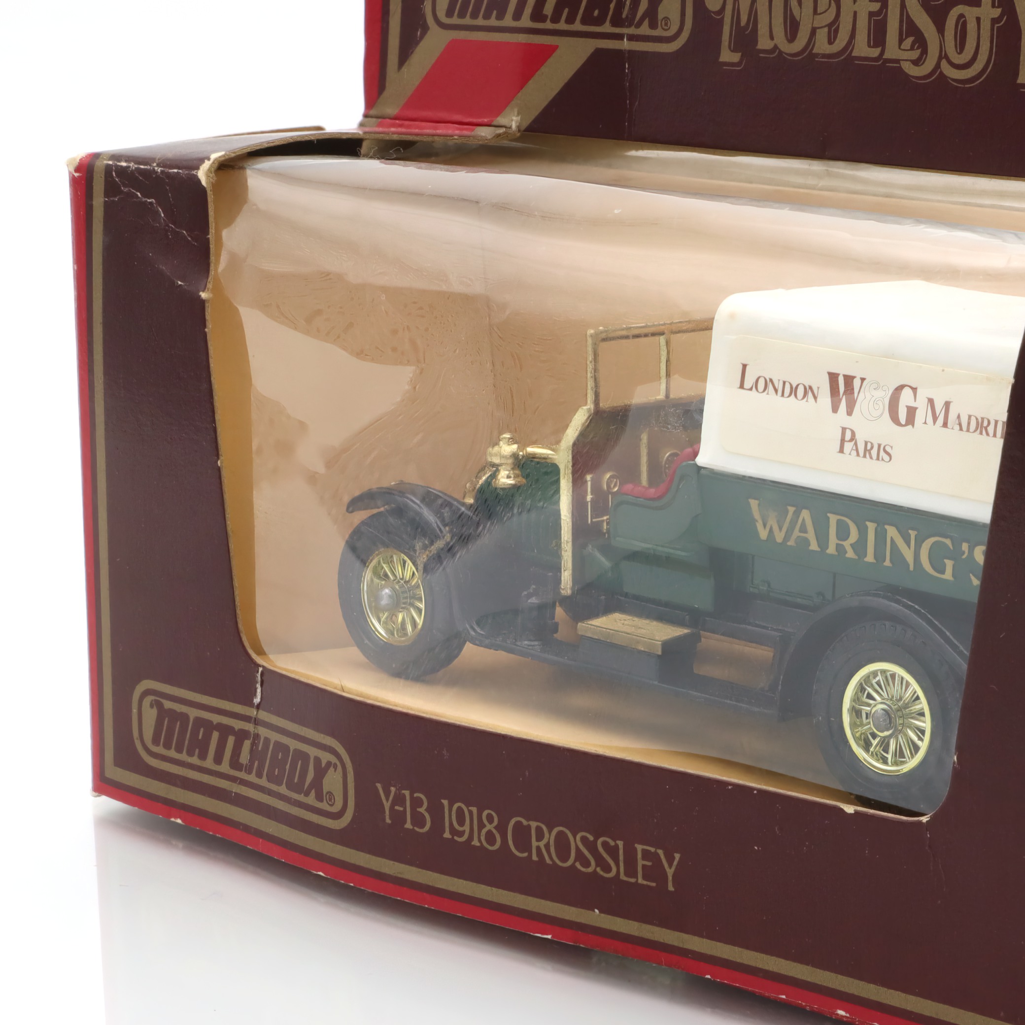 Matchbox vehicles evoke a sense of nostalgia, especially for those who grew up playing with these tiny replicas. In the world of collectibles, Matchbox models, especially those well-preserved in mint condition like your Y-13 Crossley, are considered treasures. Collectors often seek out these models not only for their design but also for the memories they evoke. The Waring’s Truck model pays homage to the classic delivery vehicles of the post-World War I era, reflecting the utilitarian yet elegant design of that time.