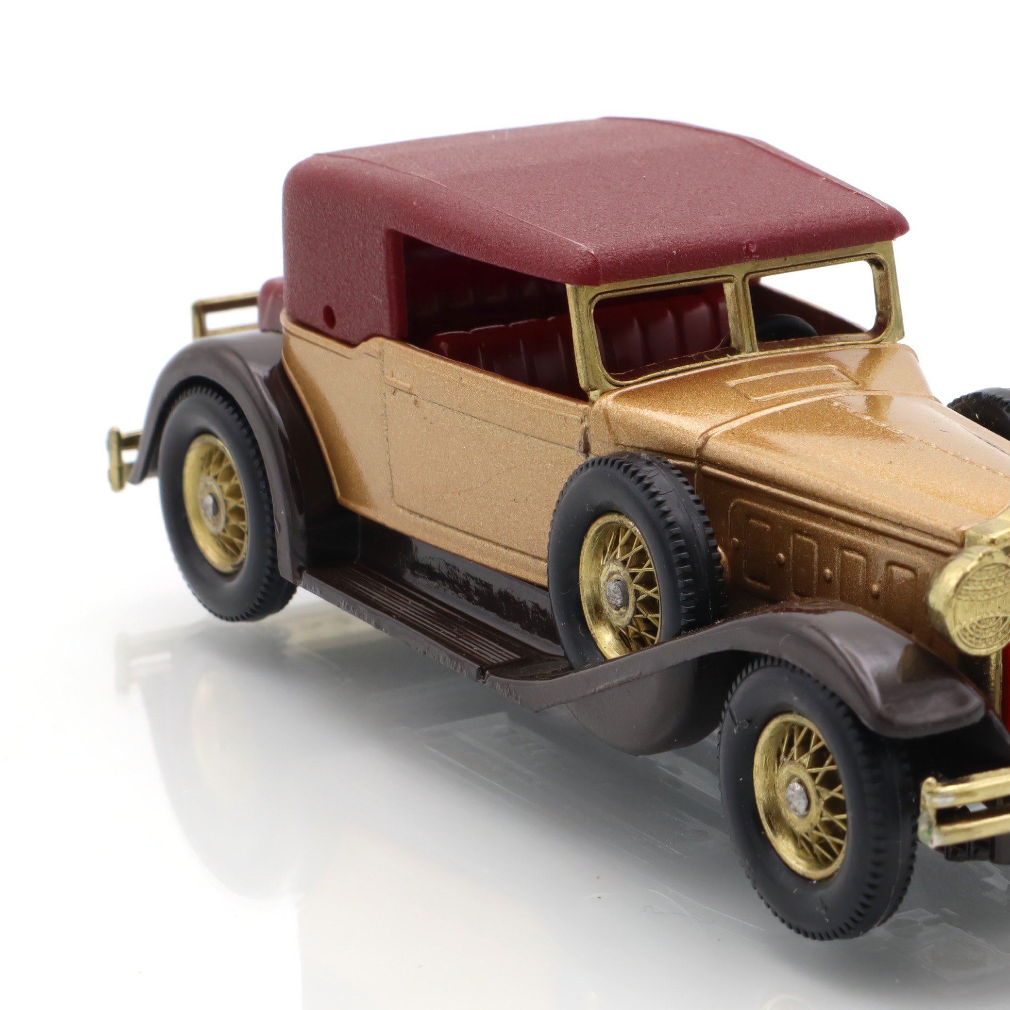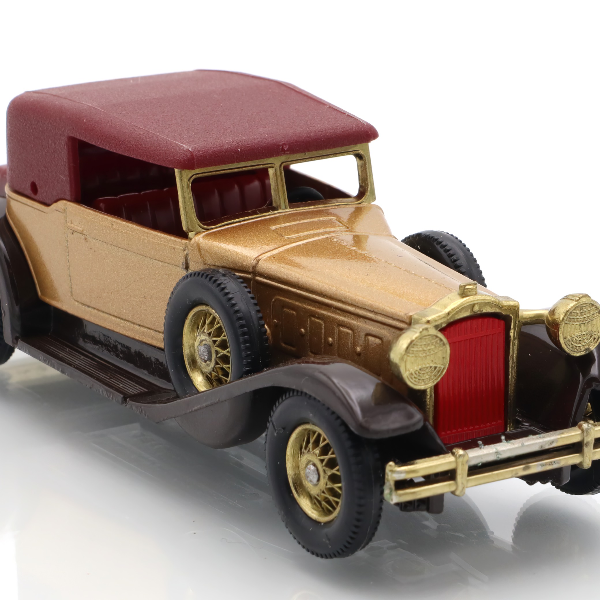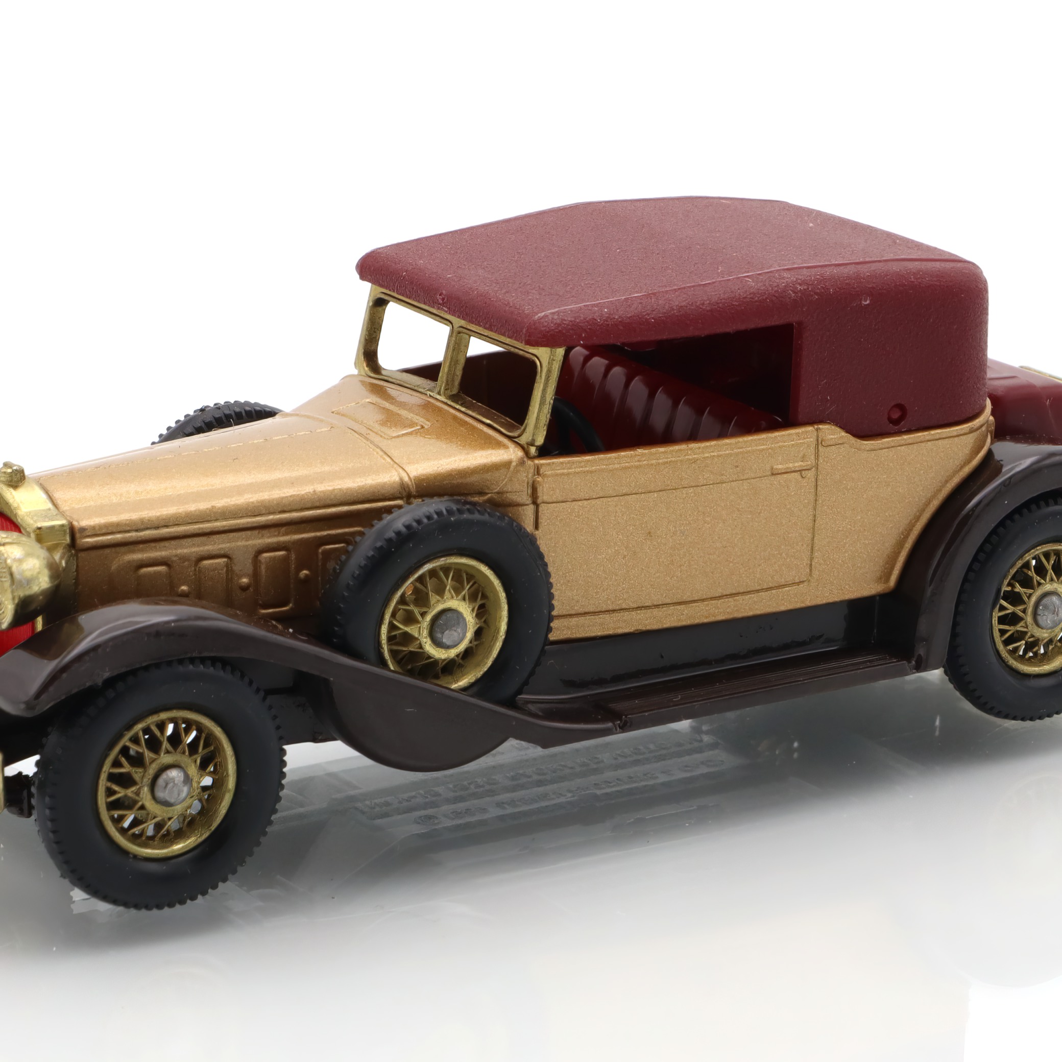 The item you’re looking at is a Y-15 1930 Packard Victoria, a vintage diecast collectible model car from the Matchbox Models of Yesteryear line. This miniature replica is in mint condition, which is quite a rare find for collectors. Its petite size belies the striking detail in its design, showcasing the grandiosity of the original 1930 Packard Victoria. The tiny features such as the wheels, grill, and bodywork are carefully crafted, offering a glimpse into the elegance and style of classic automobiles from a bygone era. The model’s colors, typically a blend of gold and maroon, echo the luxurious image that Packard automobiles were known for, providing a wonderful piece of nostalgia for admirers of vintage cars.