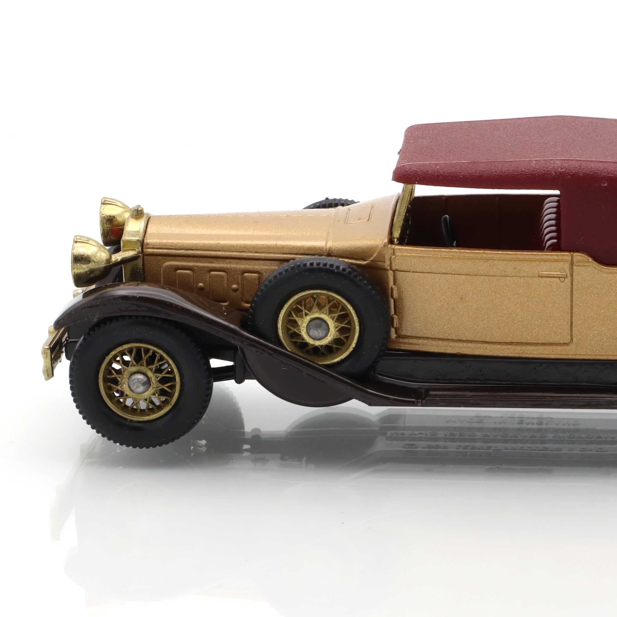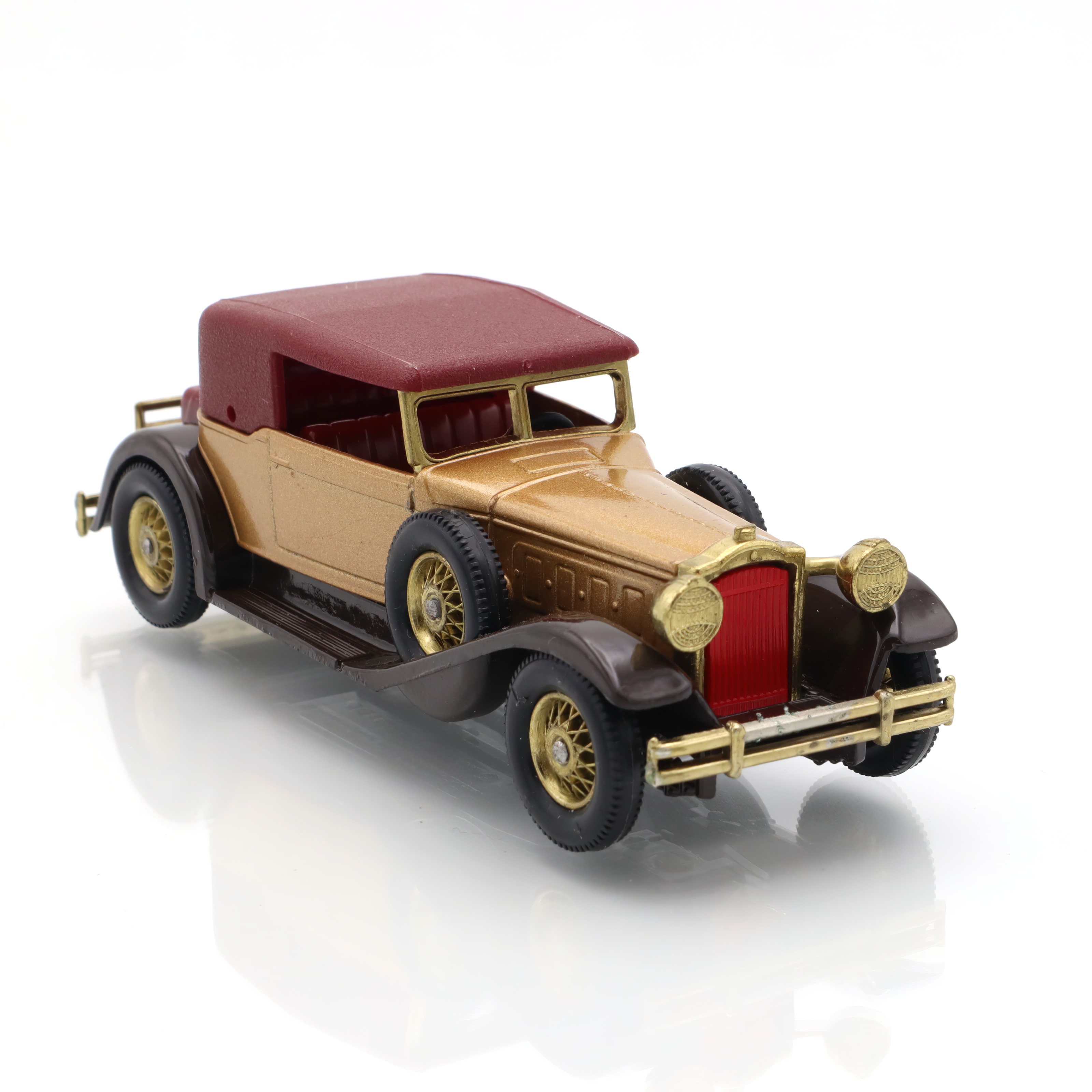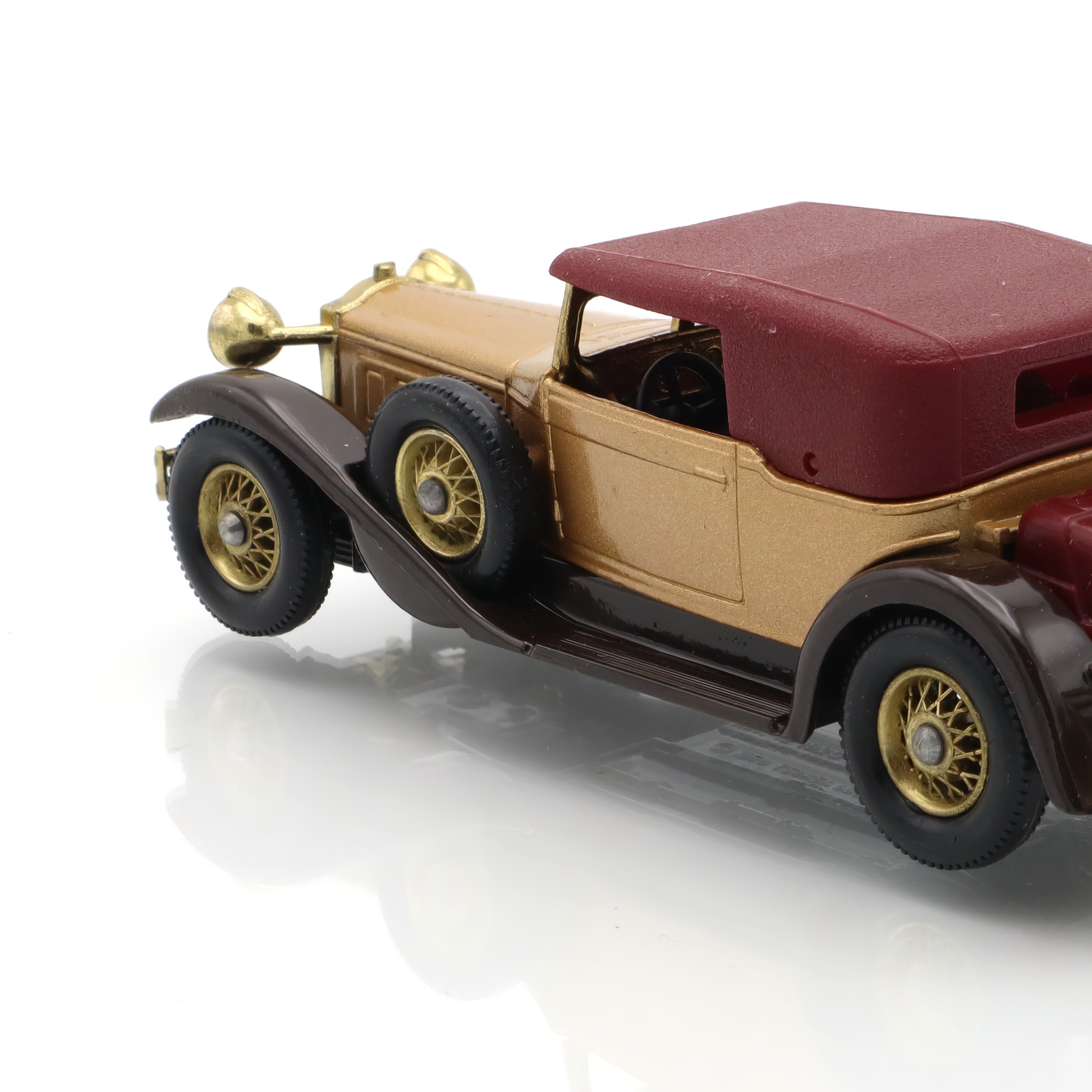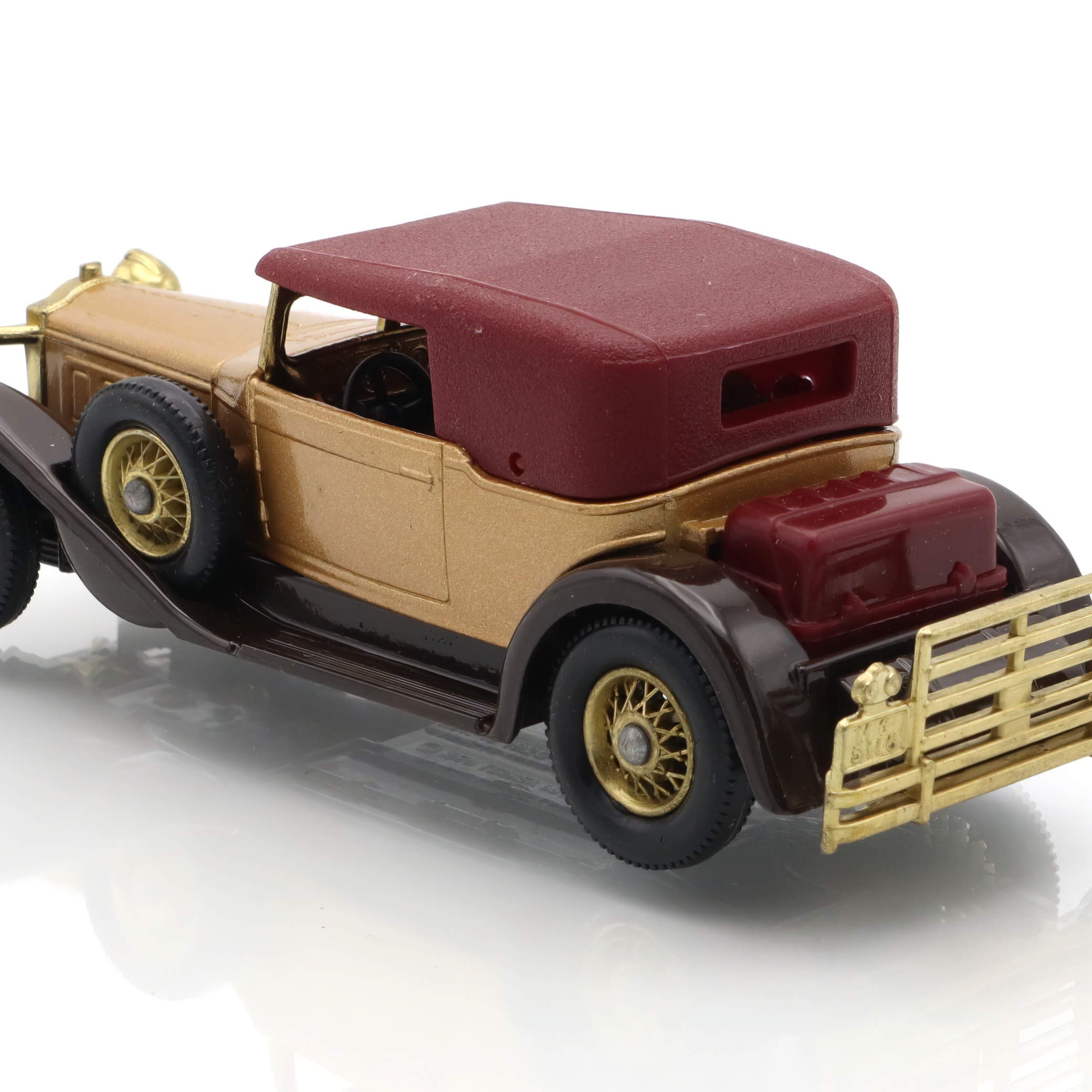 The item you’re looking at is a Y-15 1930 Packard Victoria, a vintage diecast collectible model car from the Matchbox Models of Yesteryear line. This miniature replica is in mint condition, which is quite a rare find for collectors. Its petite size belies the striking detail in its design, showcasing the grandiosity of the original 1930 Packard Victoria. The tiny features such as the wheels, grill, and bodywork are carefully crafted, offering a glimpse into the elegance and style of classic automobiles from a bygone era. The model’s colors, typically a blend of gold and maroon, echo the luxurious image that Packard automobiles were known for, providing a wonderful piece of nostalgia for admirers of vintage cars.