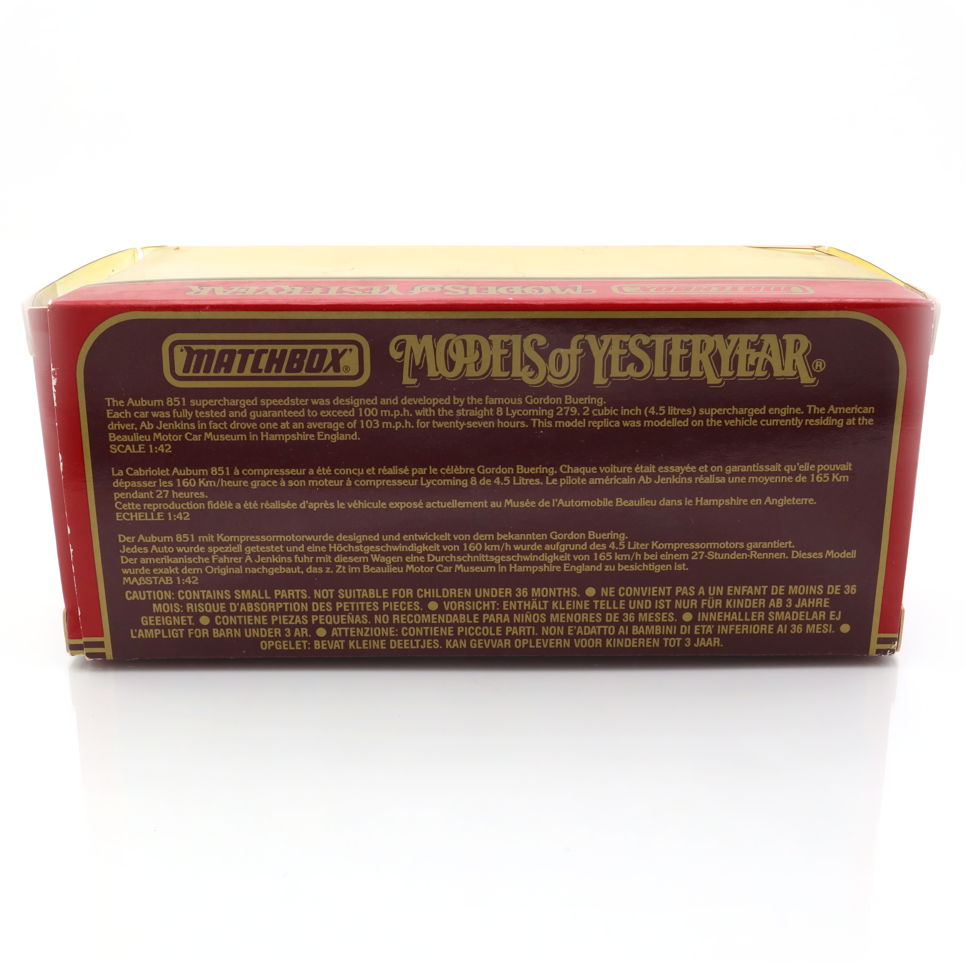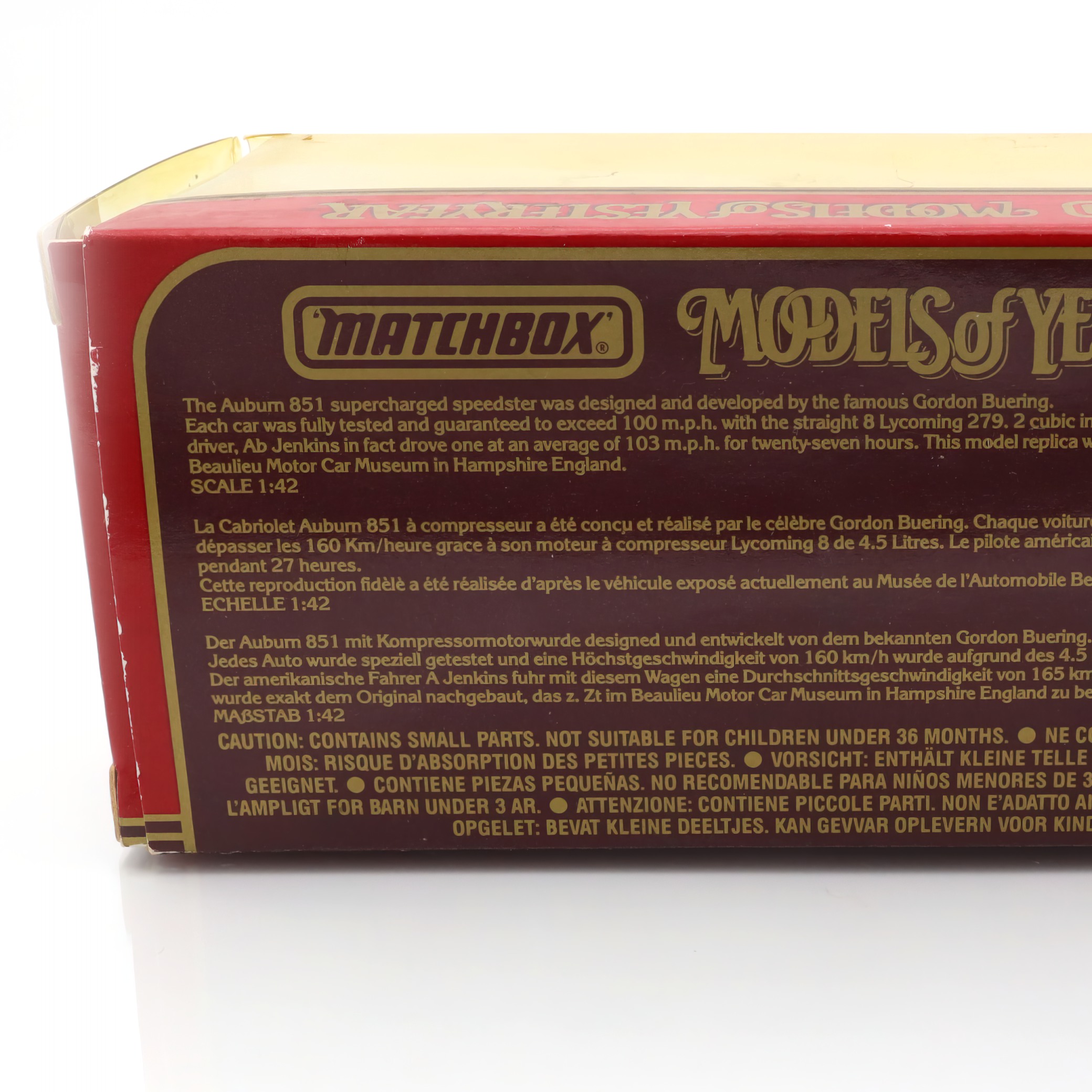 Matchbox, the brand behind this diecast car, is renowned for its intricate models that replicate real-life vehicles in a detailed micro size. Originating in the mid-20th century, Matchbox cars became a staple of childhood for many, offering a pocket-sized piece of the automotive world. But these weren’t just simple toys for kids; many adults cherished them too, thanks to their collector’s appeal. The Models of Yesteryear series, which includes the Auburn 851 Roadster, focused specifically on vintage vehicles, capturing the essence of cars from different eras.