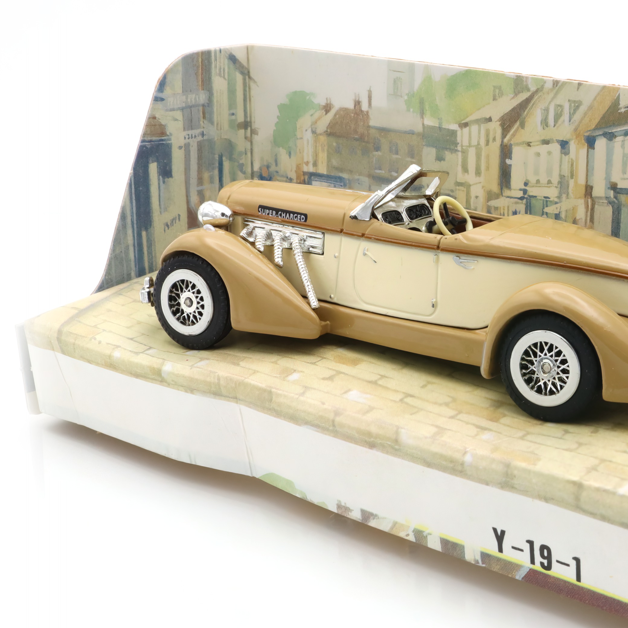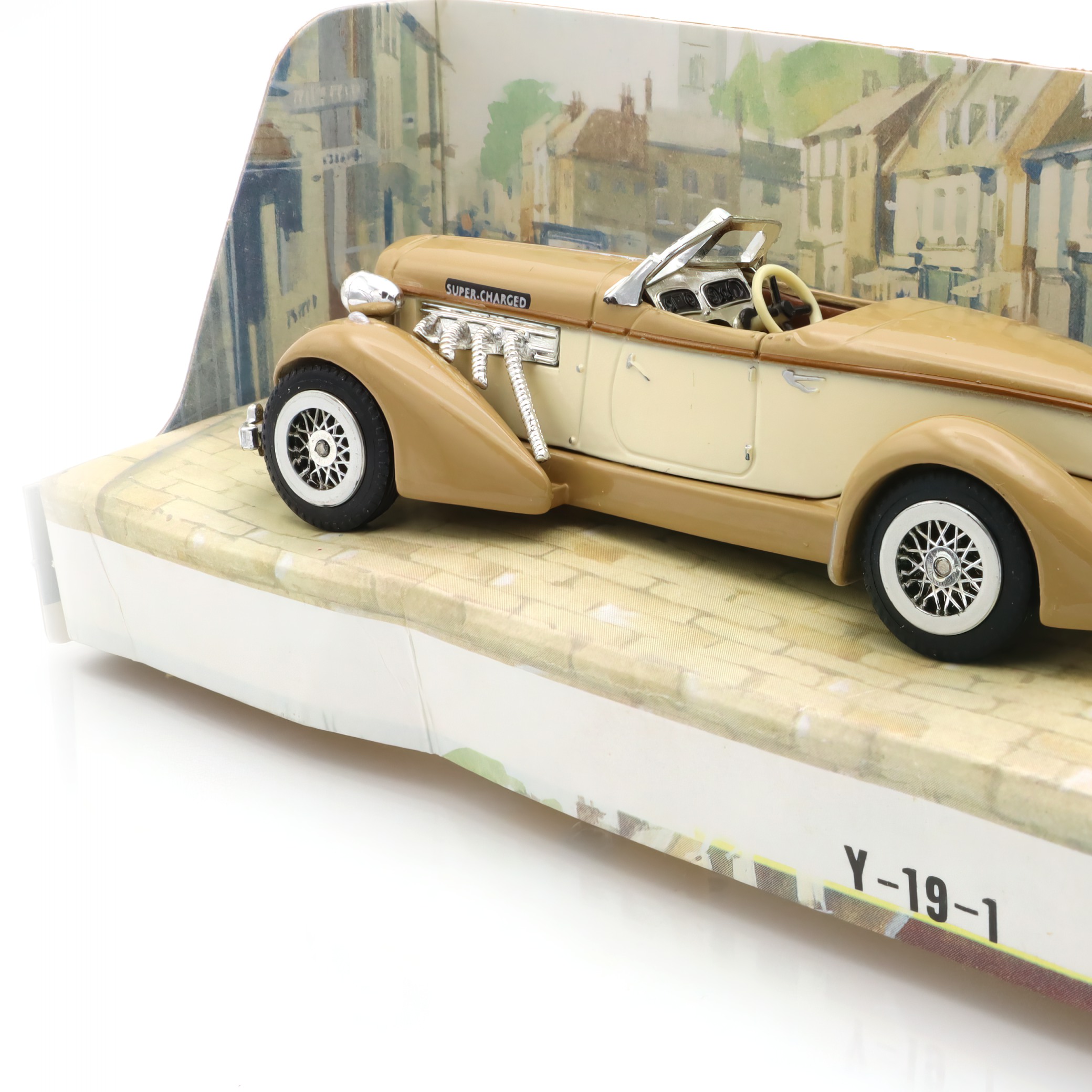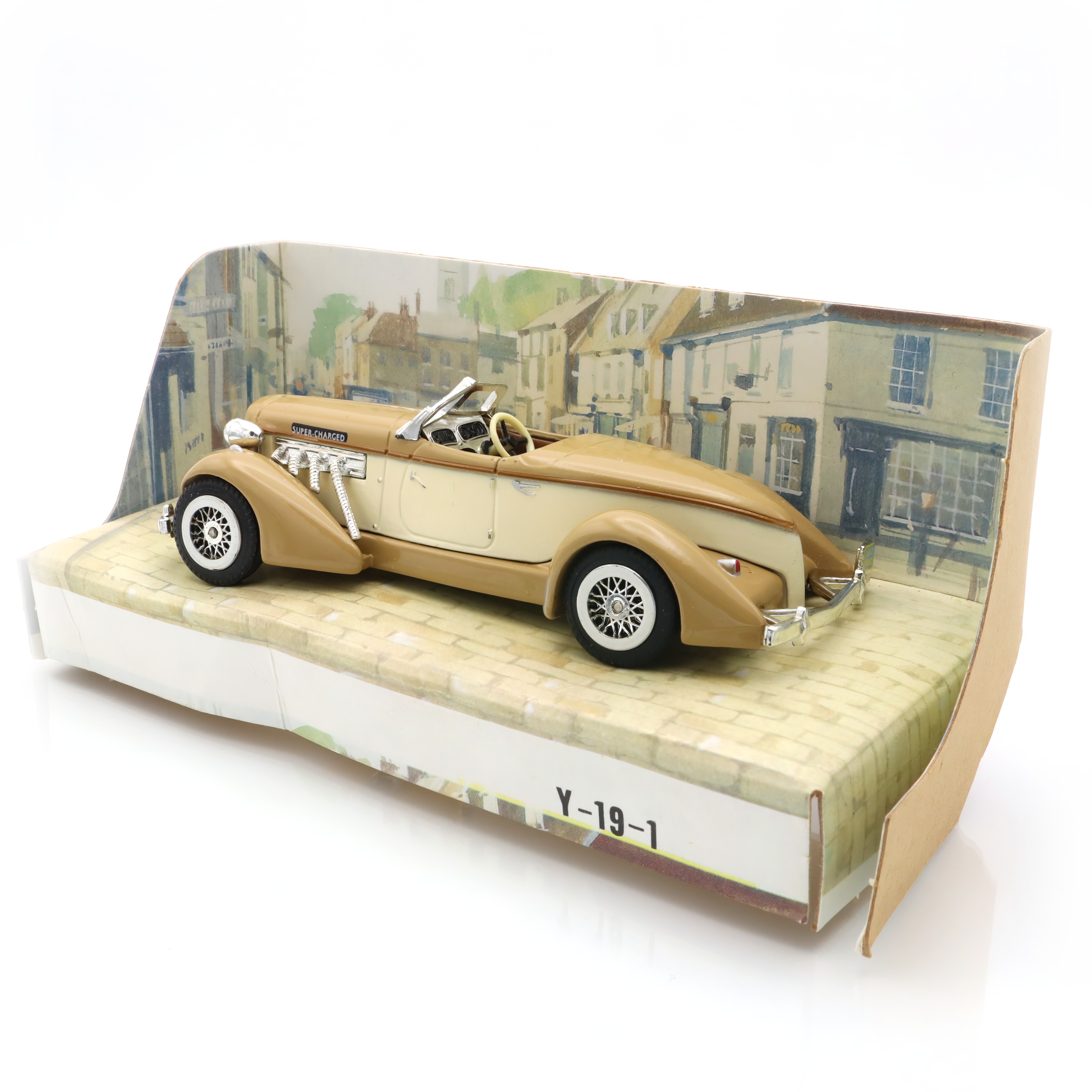 The item in question is a Y-19 Auburn 851 Roadster, a vintage diecast car that has captured the imagination of collectors and car enthusiasts alike. This collectible Matchbox model is a beautifully crafted scale replica of the classic 1930s American sports car. Boasting a mint condition, it shines with the nostalgic charm of an era gone by, with its sleek lines and detailed features reflecting the design aesthetics of the actual Auburn 851 Roadster. This makes it not just a collectible, but a miniature embodiment of classic American automotive engineering and style. With its vintage appeal and rarity, the model stands as a testament to the craftsmanship of diecast model makers, allowing you to hold a piece of history right in your hand.