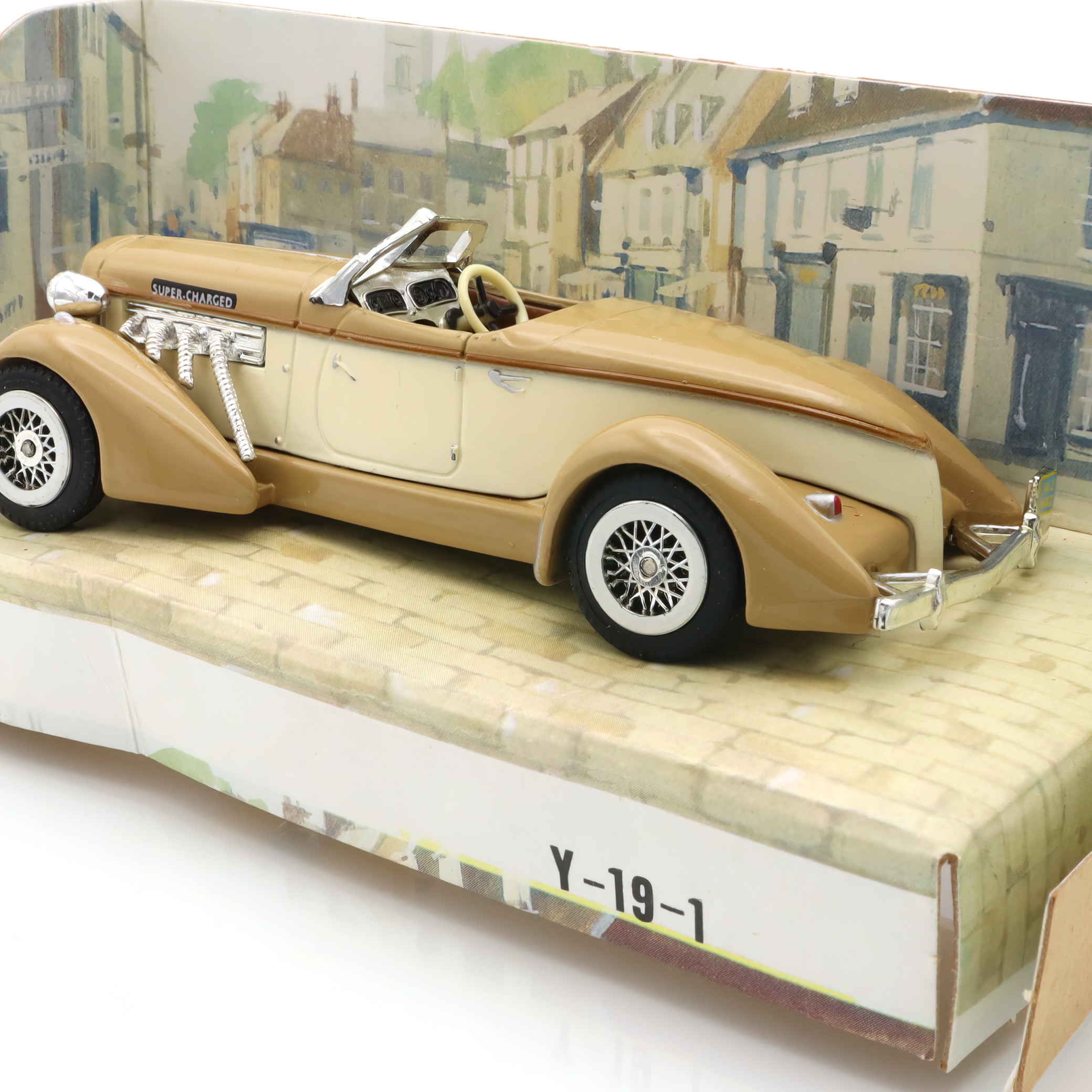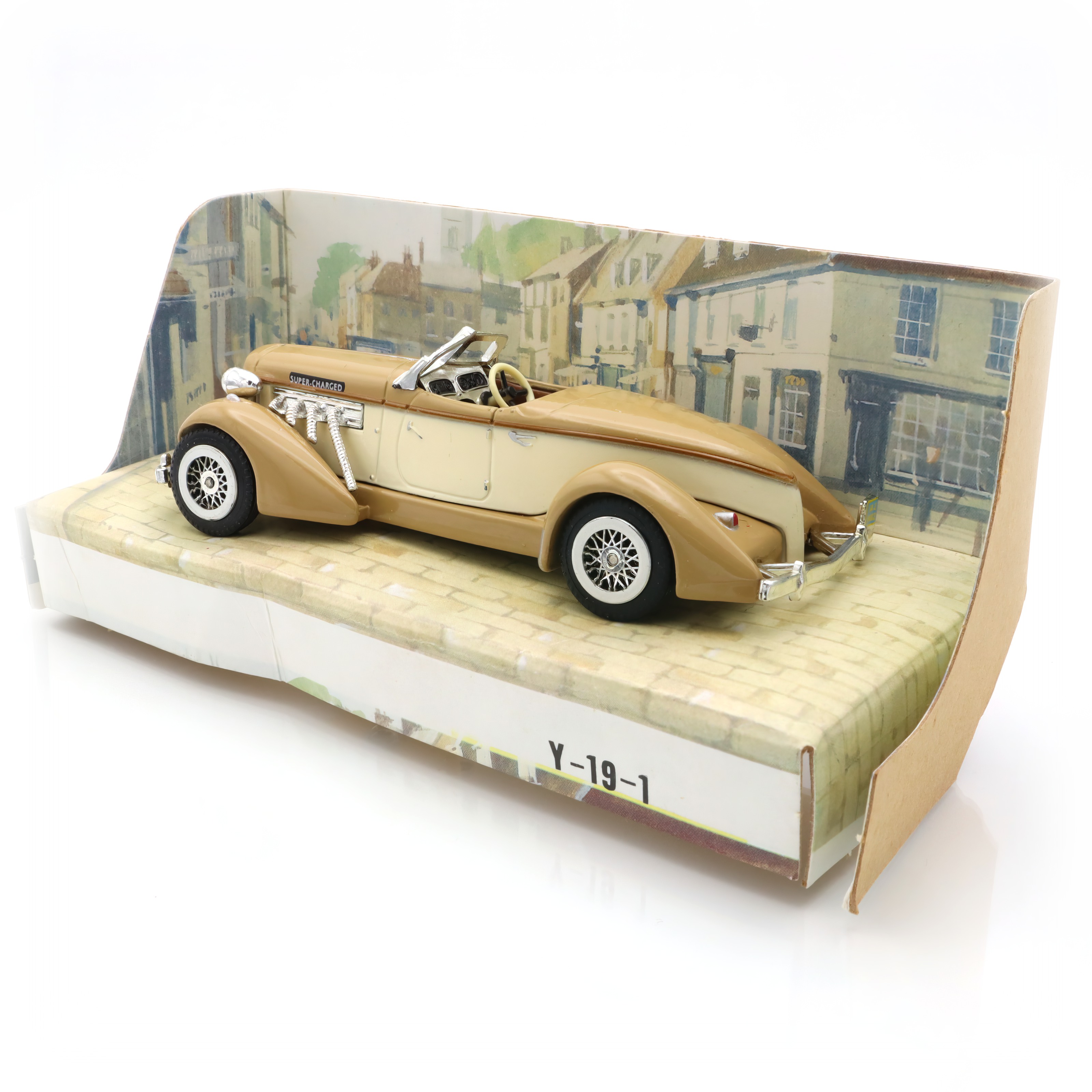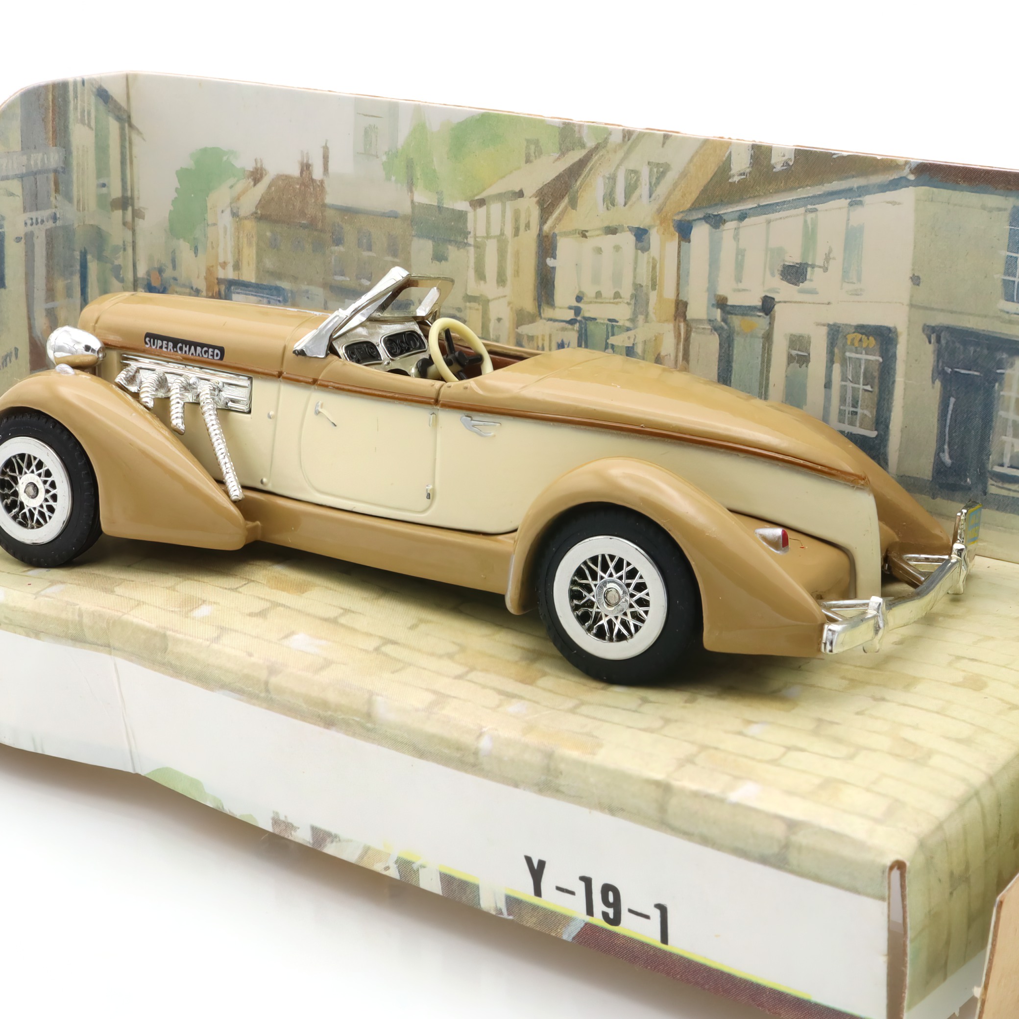 The item in question is a Y-19 Auburn 851 Roadster, a vintage diecast car that has captured the imagination of collectors and car enthusiasts alike. This collectible Matchbox model is a beautifully crafted scale replica of the classic 1930s American sports car. Boasting a mint condition, it shines with the nostalgic charm of an era gone by, with its sleek lines and detailed features reflecting the design aesthetics of the actual Auburn 851 Roadster. This makes it not just a collectible, but a miniature embodiment of classic American automotive engineering and style. With its vintage appeal and rarity, the model stands as a testament to the craftsmanship of diecast model makers, allowing you to hold a piece of history right in your hand.