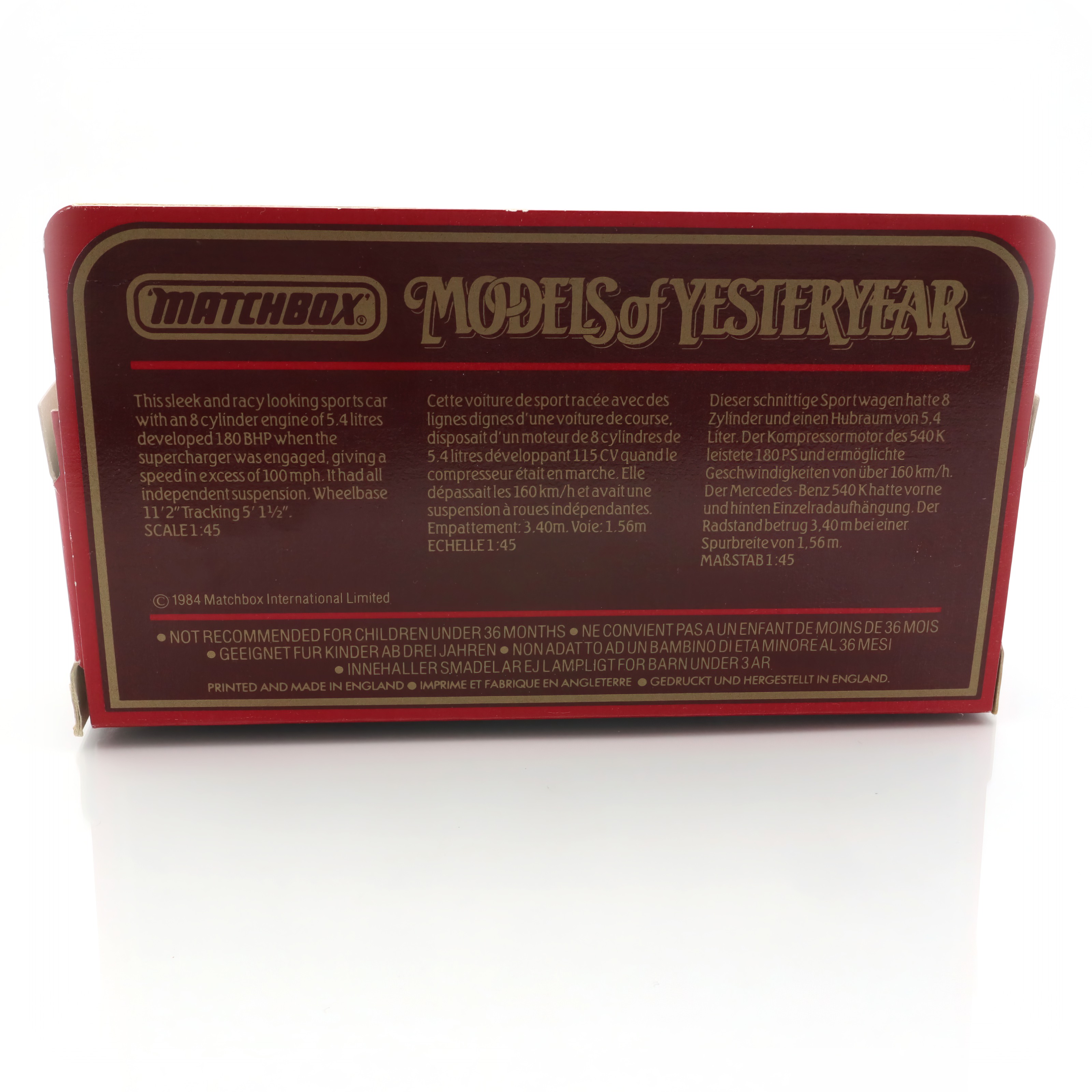 As for its age, being a product of the late 20th century, this model marks several decades of history itself. These models are no longer in production, which adds to their rarity and value among collectors today. For someone who loves vintage items or has a penchant for automobiles, owning a mint condition Matchbox Mercedes-Benz 540K is like having a small time capsule. It’s not just a toy; it’s a piece of history that reflects the era it emulates and the time it was created. The fact that it’s in mint condition makes it even more special, showing that it has been well-preserved over the years, a testament to the care and appreciation it has received from collectors. Whether displayed on a shelf or kept in its box, this piece is a conversation starter and a treasure trove of nostalgia for anyone familiar with the golden age of automobiles and model cars.