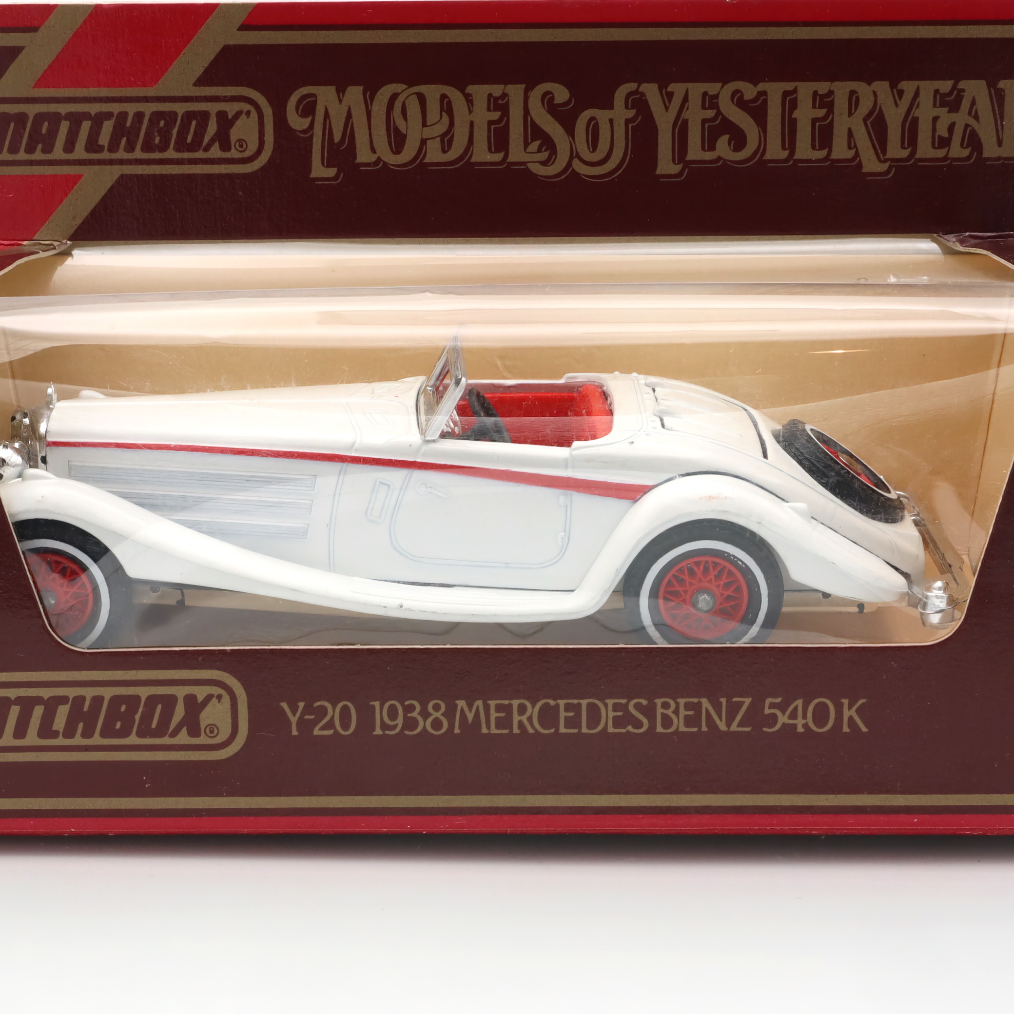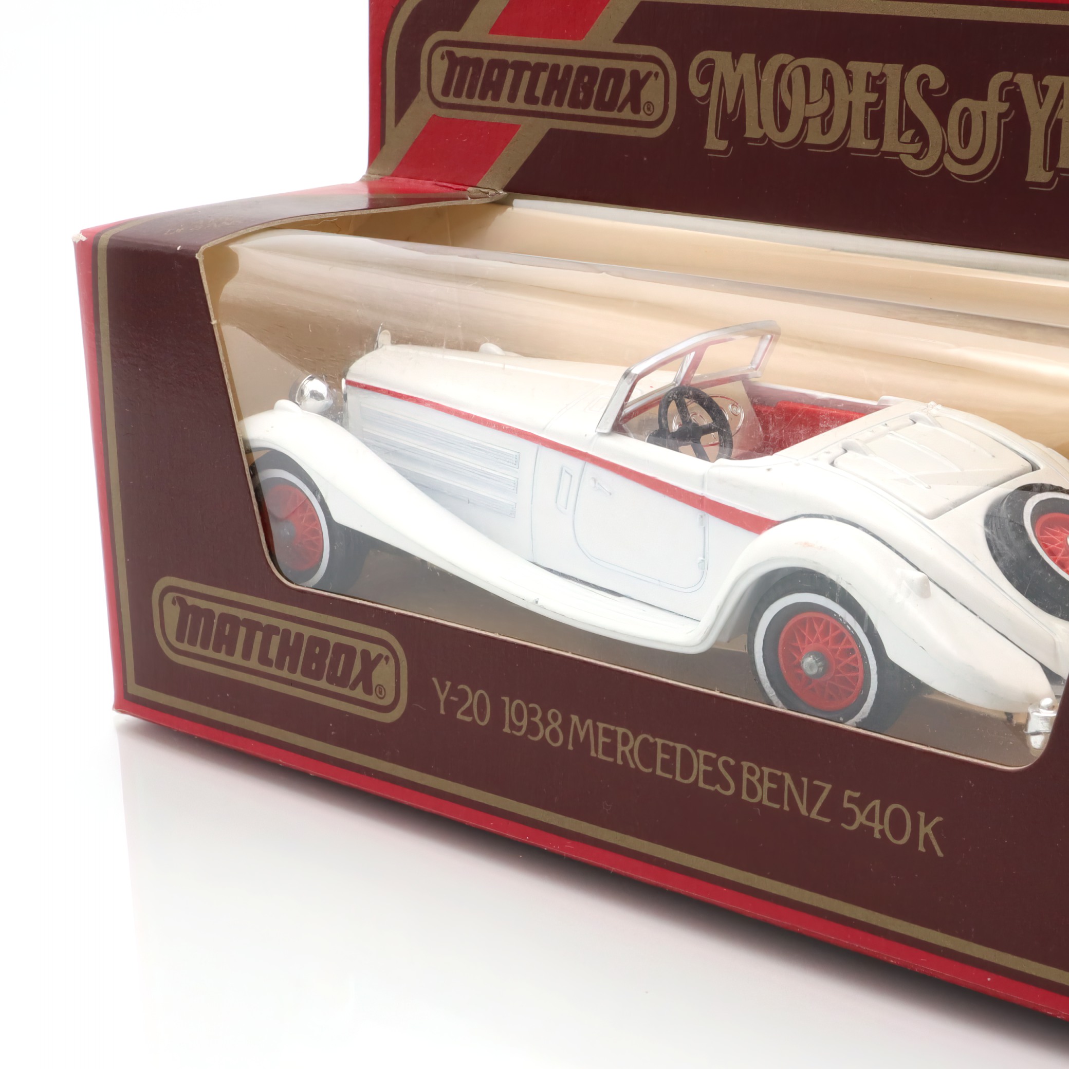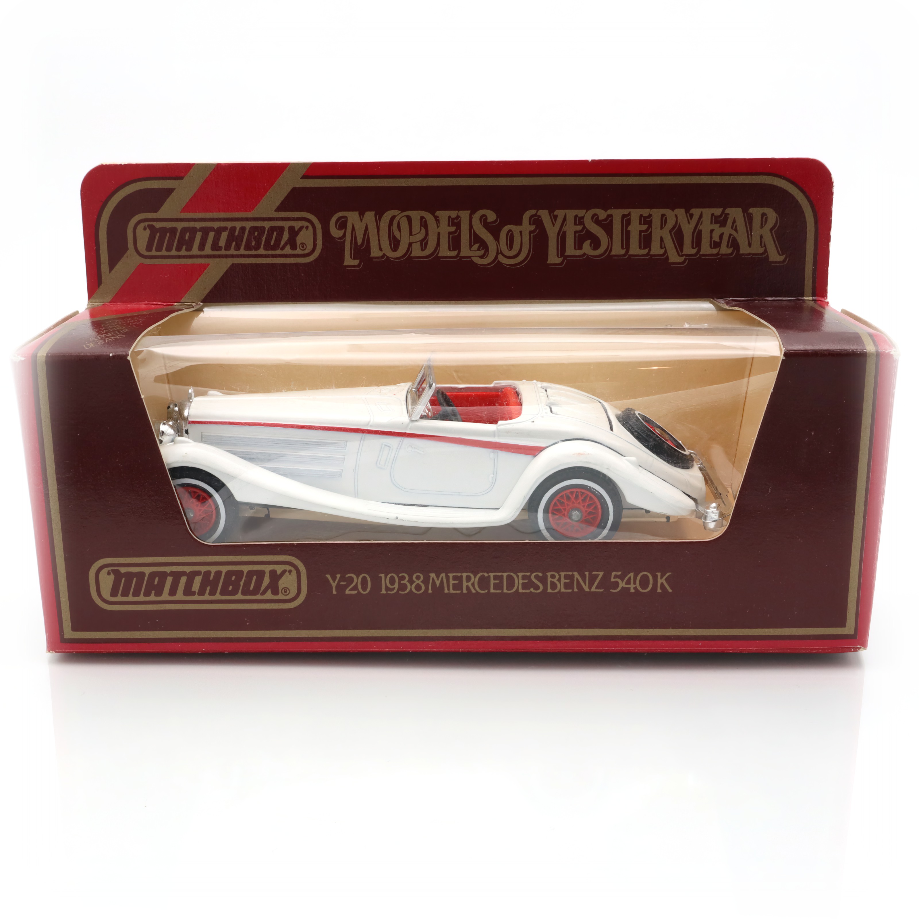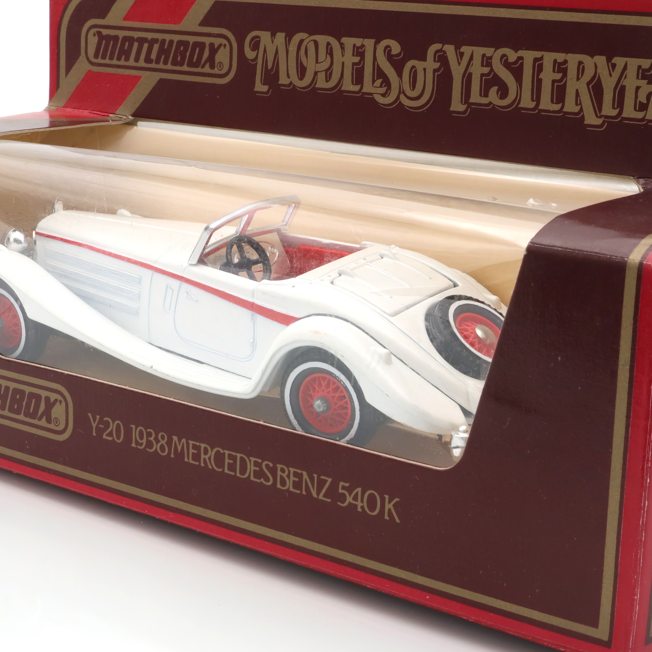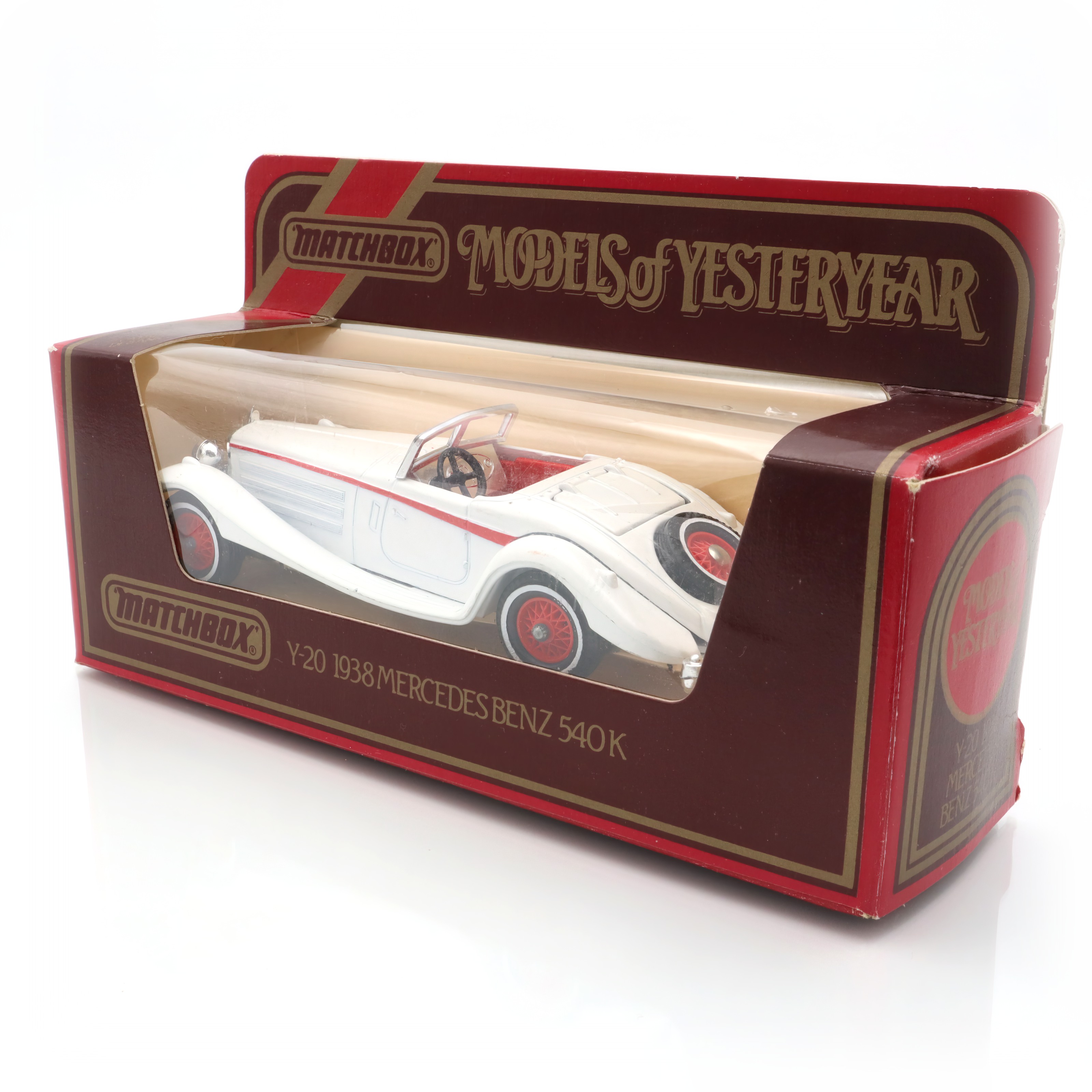 This little gem is a die-cast model car from the Matchbox Models of Yesteryear collection, specifically the Y-20 1938 Mercedes-Benz 540K. It’s a detailed and exquisite miniature replica of a classic automobile, designed with great care to capture the elegance and style of the original 1938 Mercedes-Benz 540K. This model is in mint condition, which means it looks as if it just rolled off the production line, despite being crafted several decades ago. The attention to detail is impressive, from the smooth curves of the body to the tiny intricacies of the wheels and interior. The model is a delightful piece for collectors, not just because of its fine craftsmanship but also due to its rarity and vintage charm.