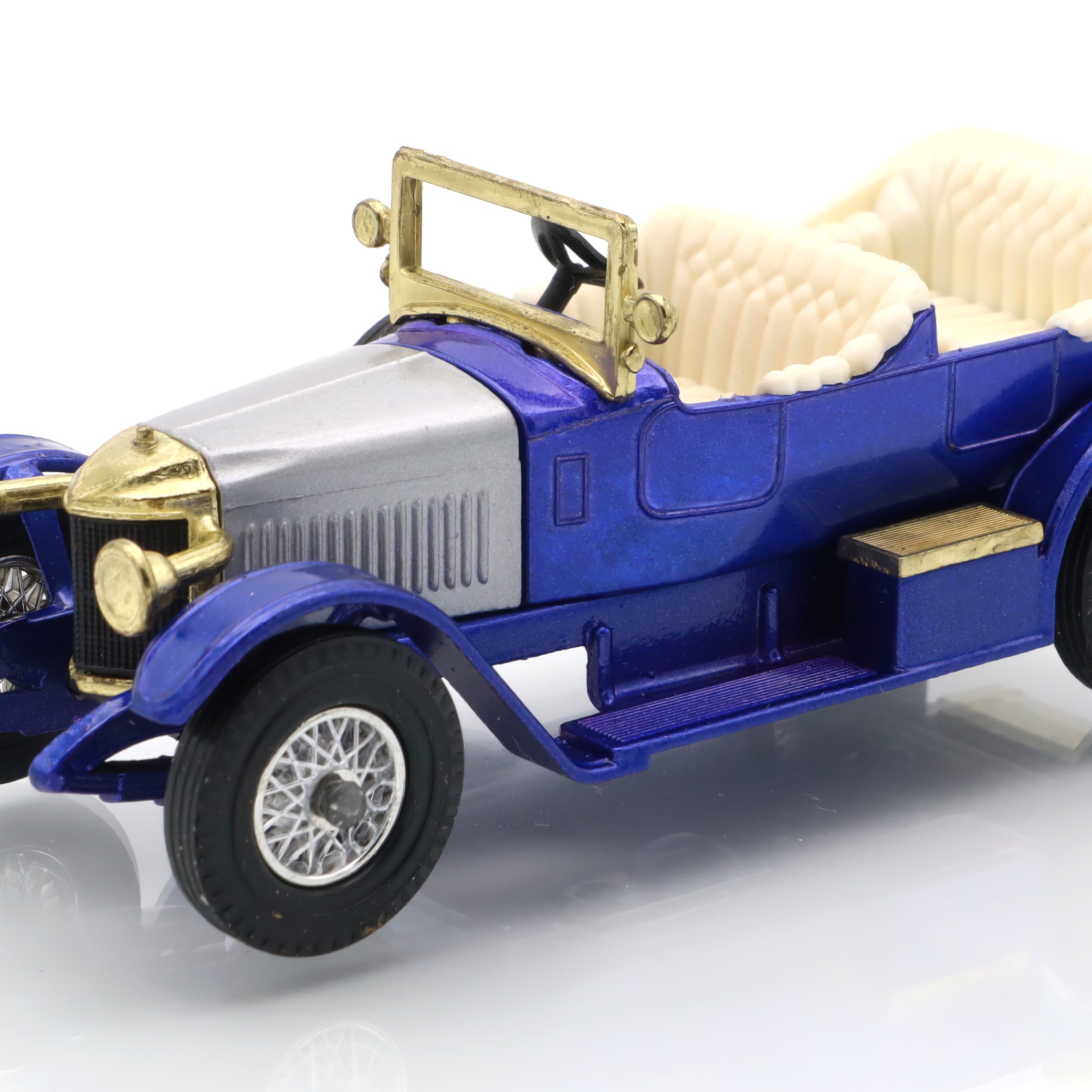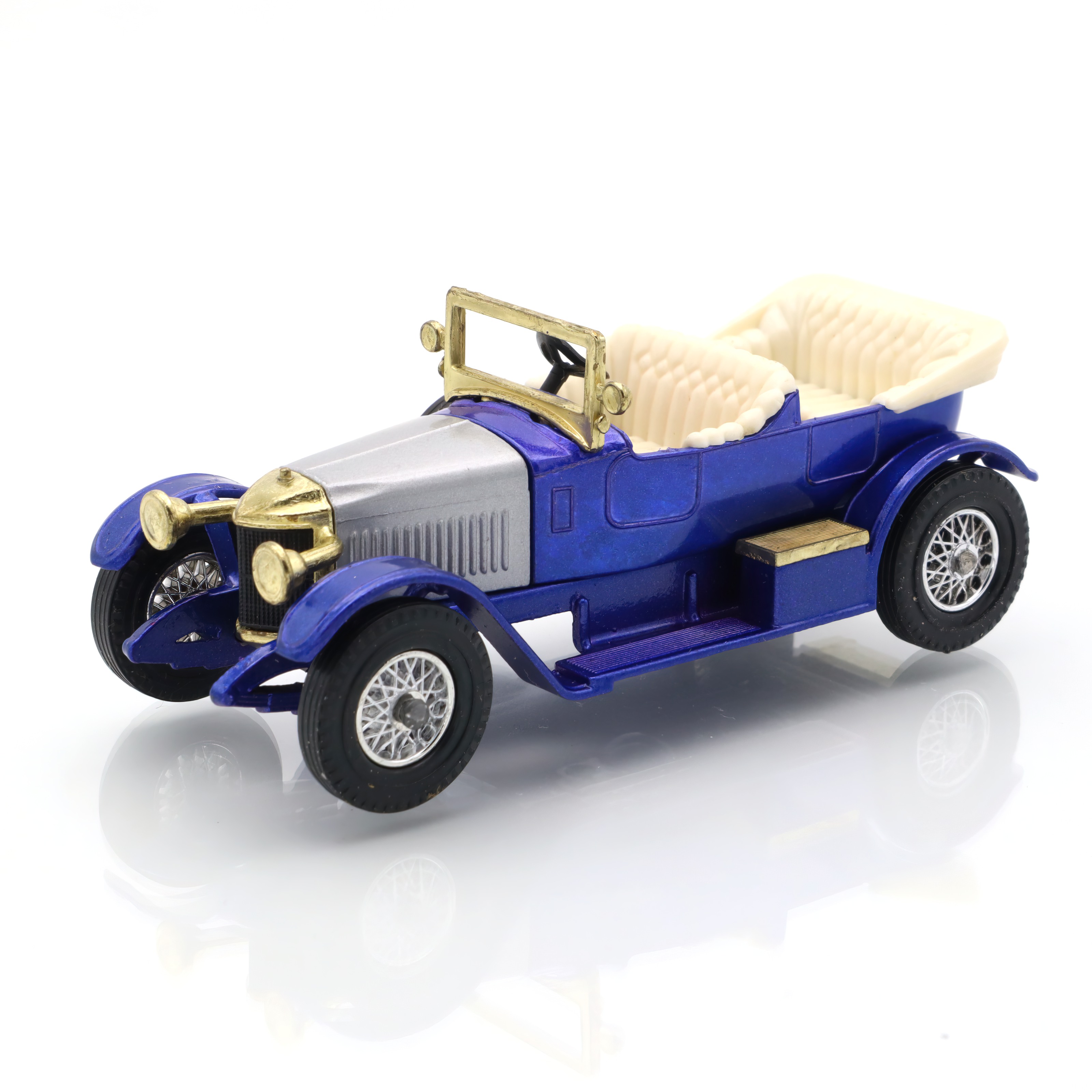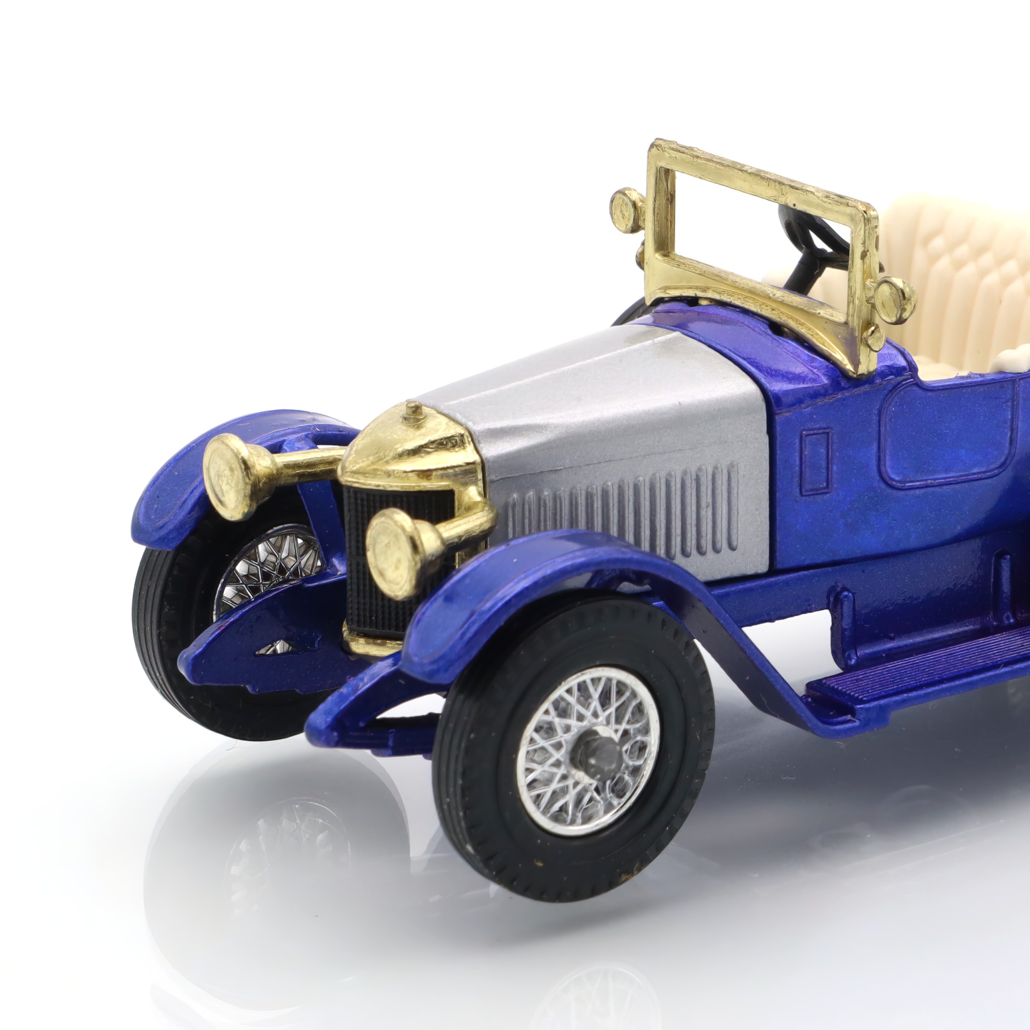 What you’re looking at is a Y-21 Blue Prince Henry Vauxhall diecast car model. This collectible is a miniature representation of the 1911 model, showcasing the elegance and style of early 20th-century automotive design. The car is painted in a stunning blue with intricate details, including the gold accents on the headlights and radiator, capturing the vintage charm of the original vehicle. What’s particularly remarkable is its mint condition, making it a prized possession for collectors who cherish items that have withstood the test of time without blemishes. This model isn’t just a toy; it’s a piece of history encapsulated in a small, charming form that’s perfect for display.