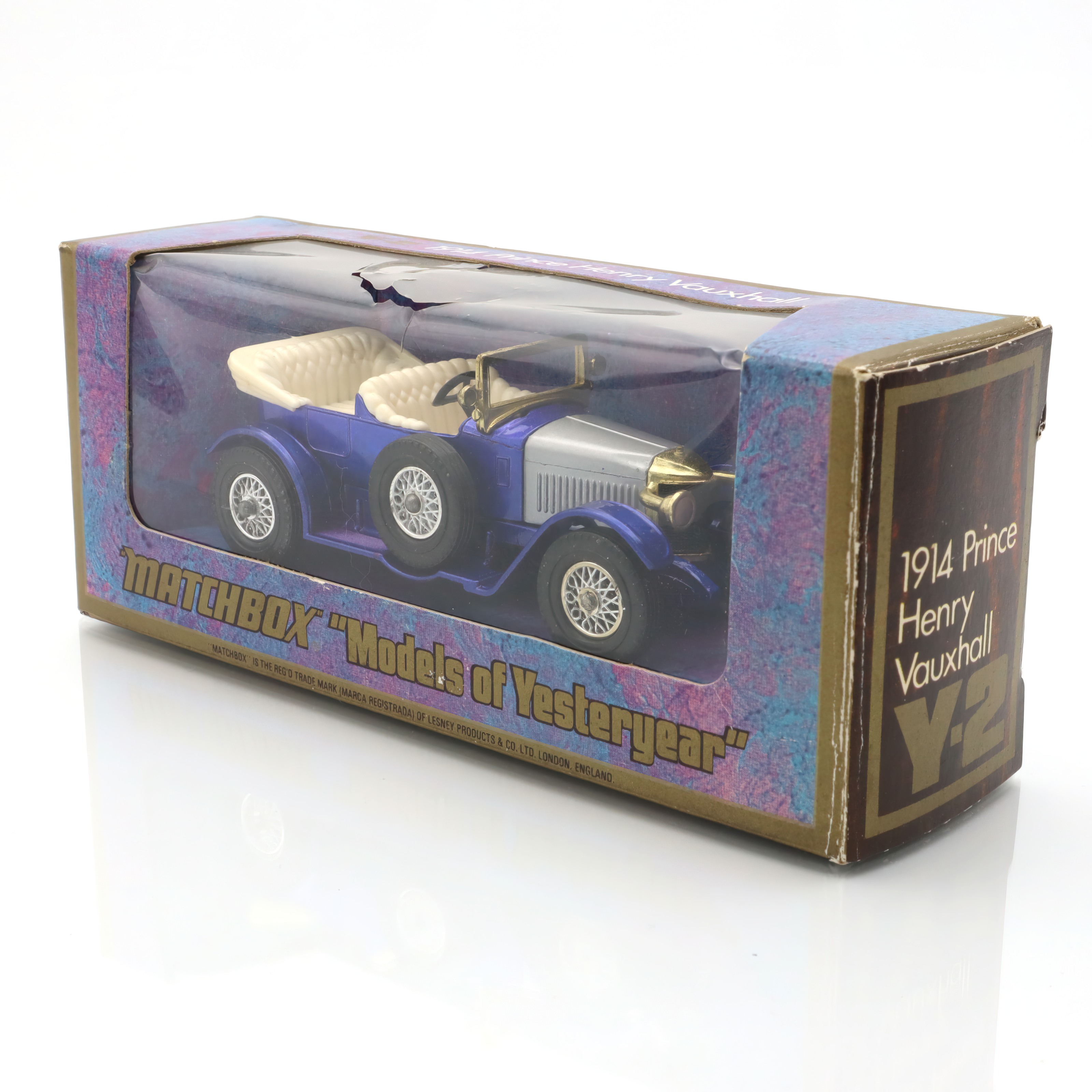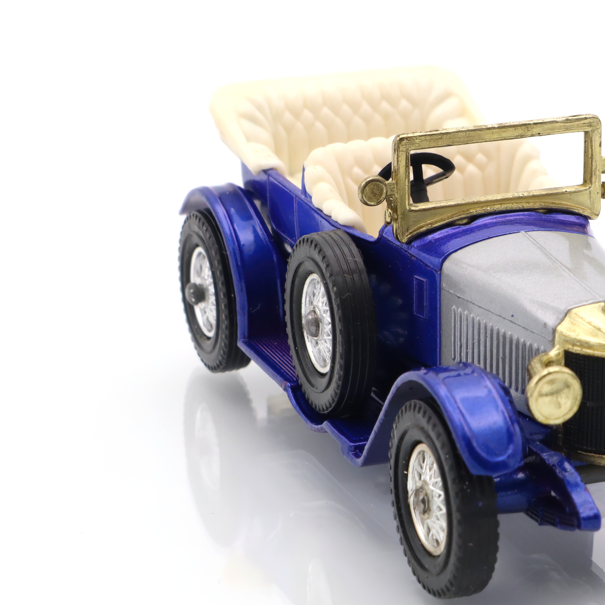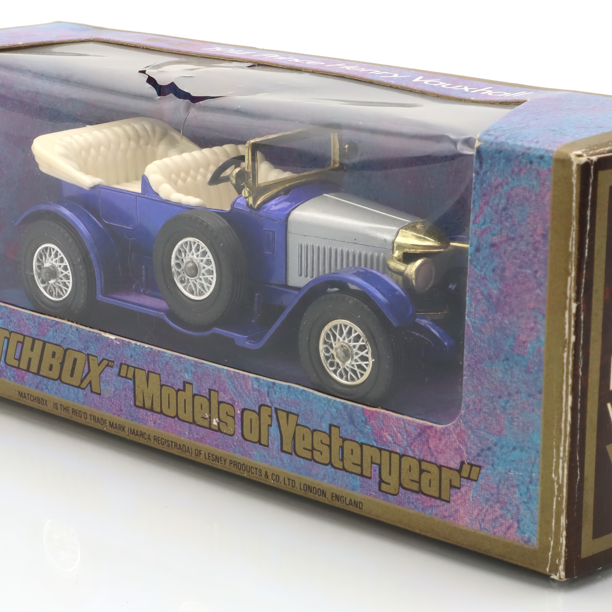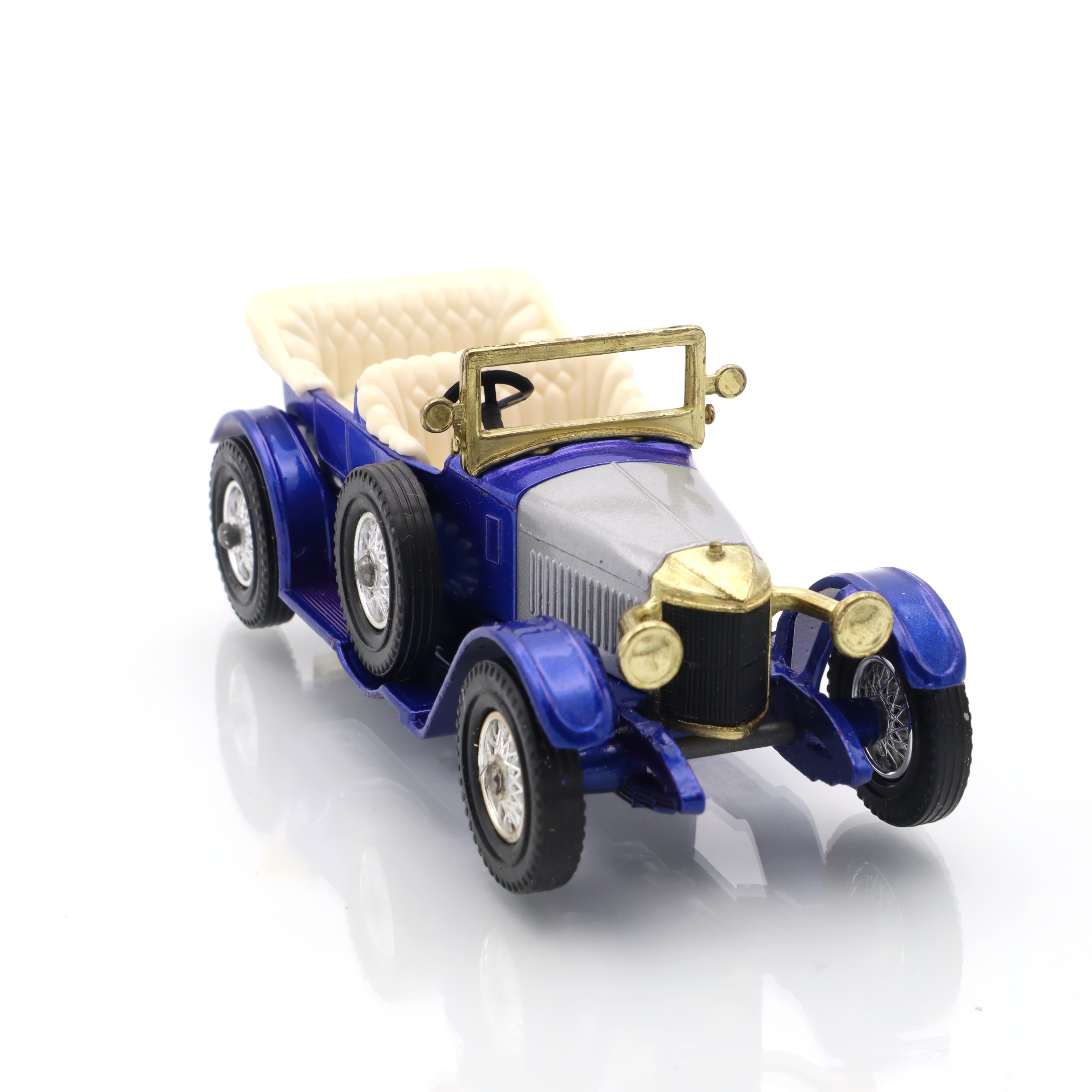 What you’re looking at is a Y-21 Blue Prince Henry Vauxhall diecast car model. This collectible is a miniature representation of the 1911 model, showcasing the elegance and style of early 20th-century automotive design. The car is painted in a stunning blue with intricate details, including the gold accents on the headlights and radiator, capturing the vintage charm of the original vehicle. What’s particularly remarkable is its mint condition, making it a prized possession for collectors who cherish items that have withstood the test of time without blemishes. This model isn’t just a toy; it’s a piece of history encapsulated in a small, charming form that’s perfect for display.