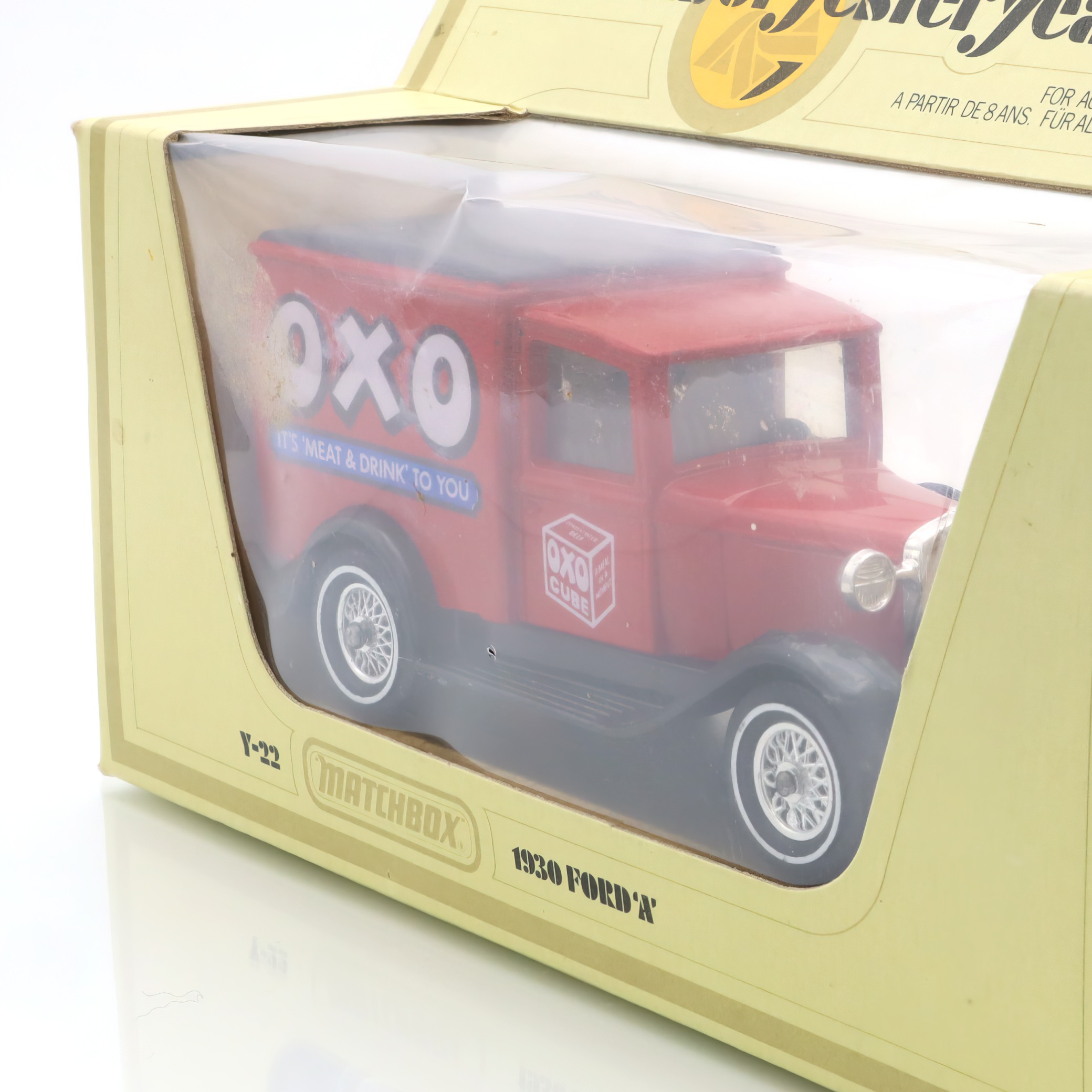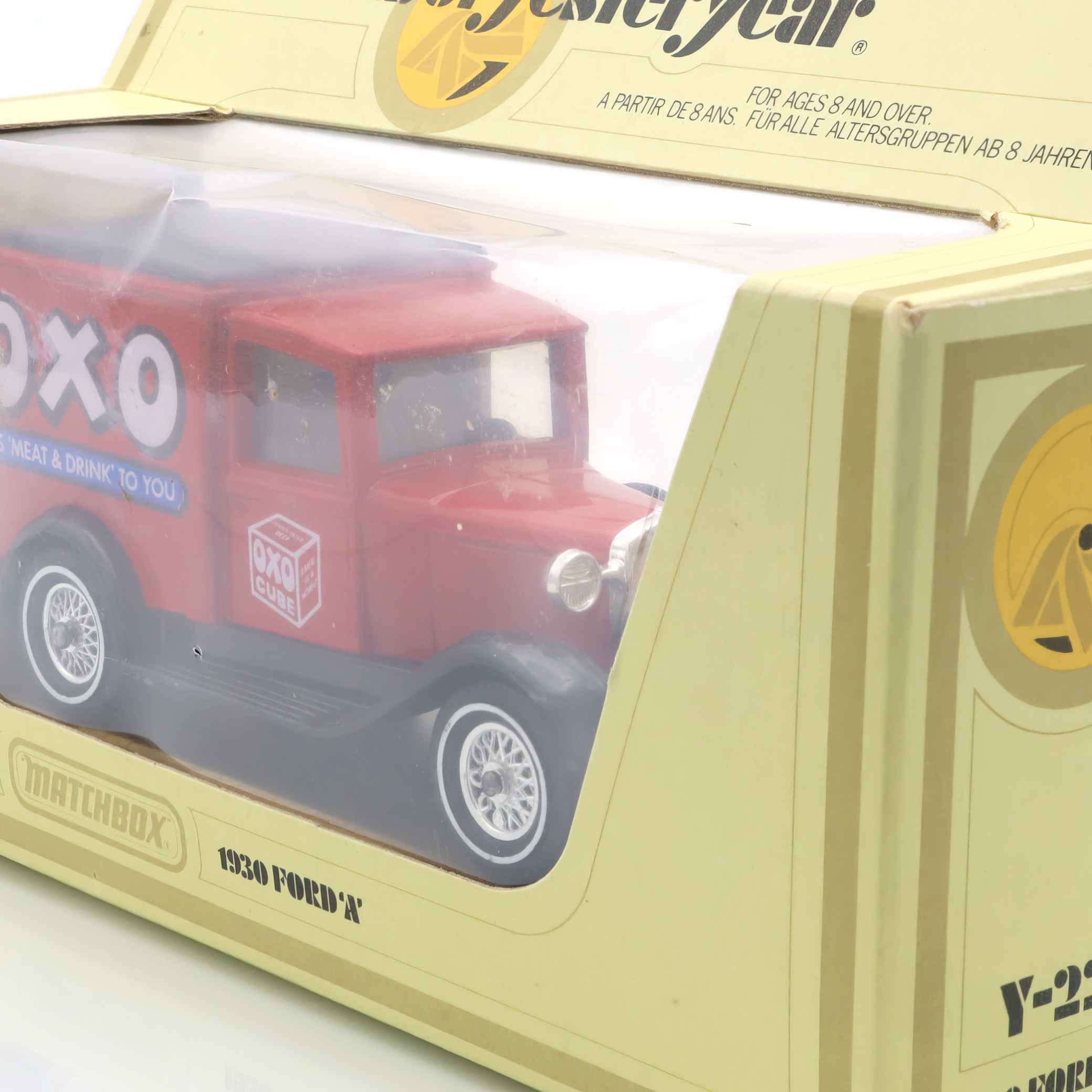 The 1930 Ford A OXO Van is part of the “Models of Yesteryear” line, a beloved series of diecast models known for celebrating historical vehicles. This line was popular among enthusiasts for its incredible attention to detail and fidelity to the original designs. While these models are by no means common today, finding one in mint condition is particularly special, making it a true treasure for collectors. First produced years ago, the “Models of Yesteryear” series taps into the charm of yesteryear, inviting people to appreciate the vintage allure and the stories these models carry. This OXO van, representing a piece of the past with lifelike design, offers a tangible connection to an earlier time in automobile history, serving as both a conversation piece and a cherished collectible.