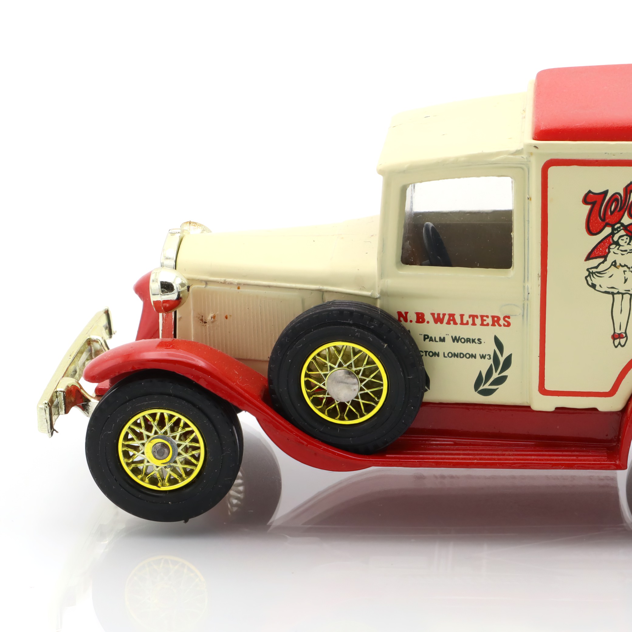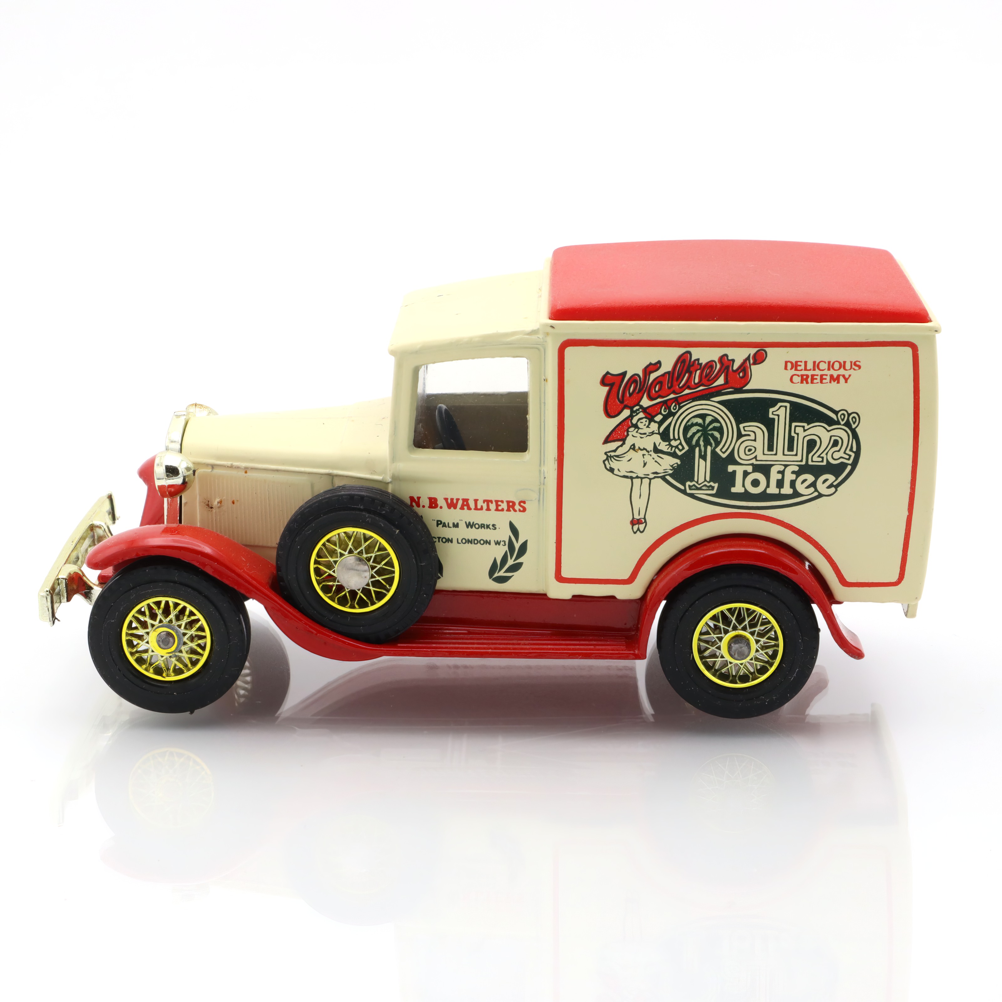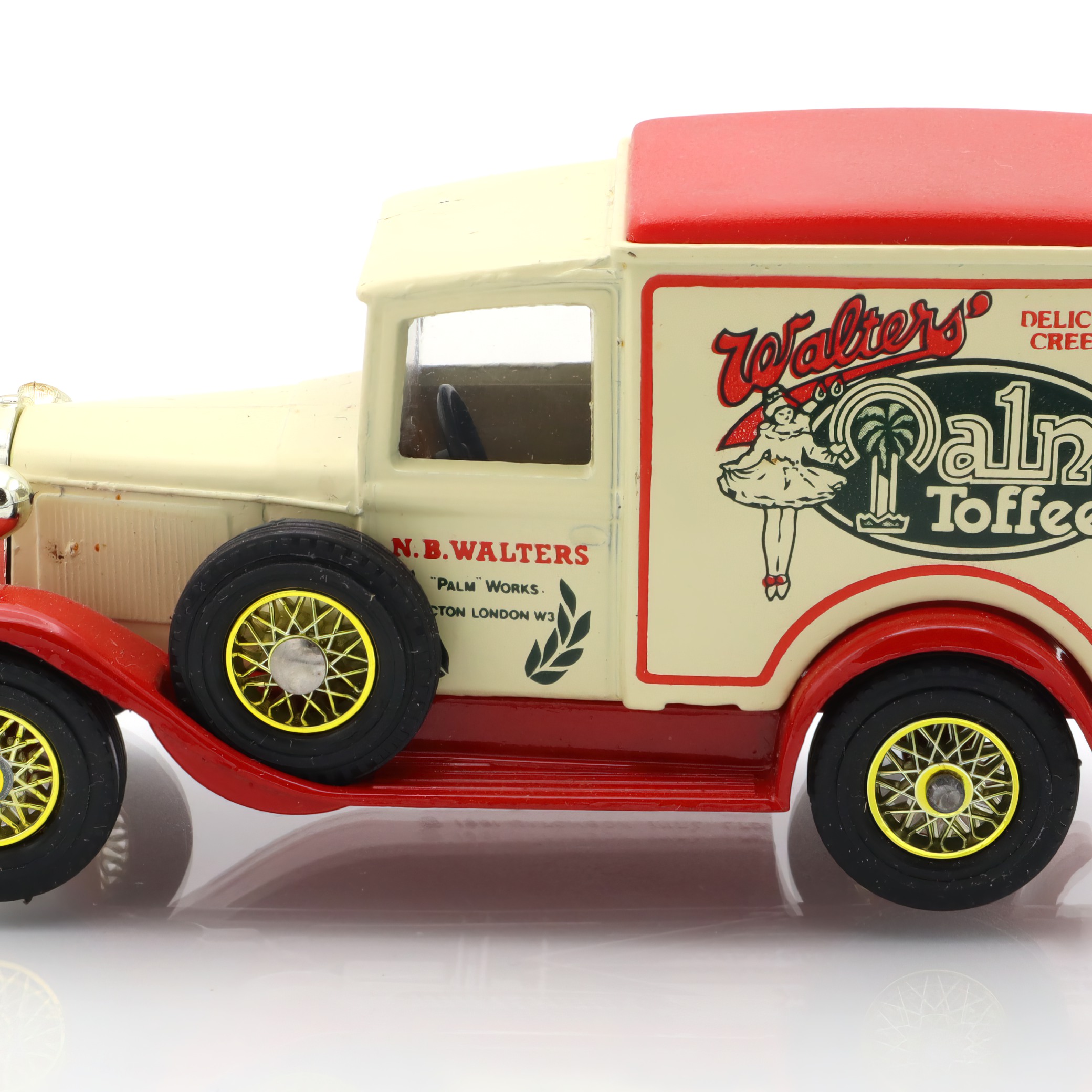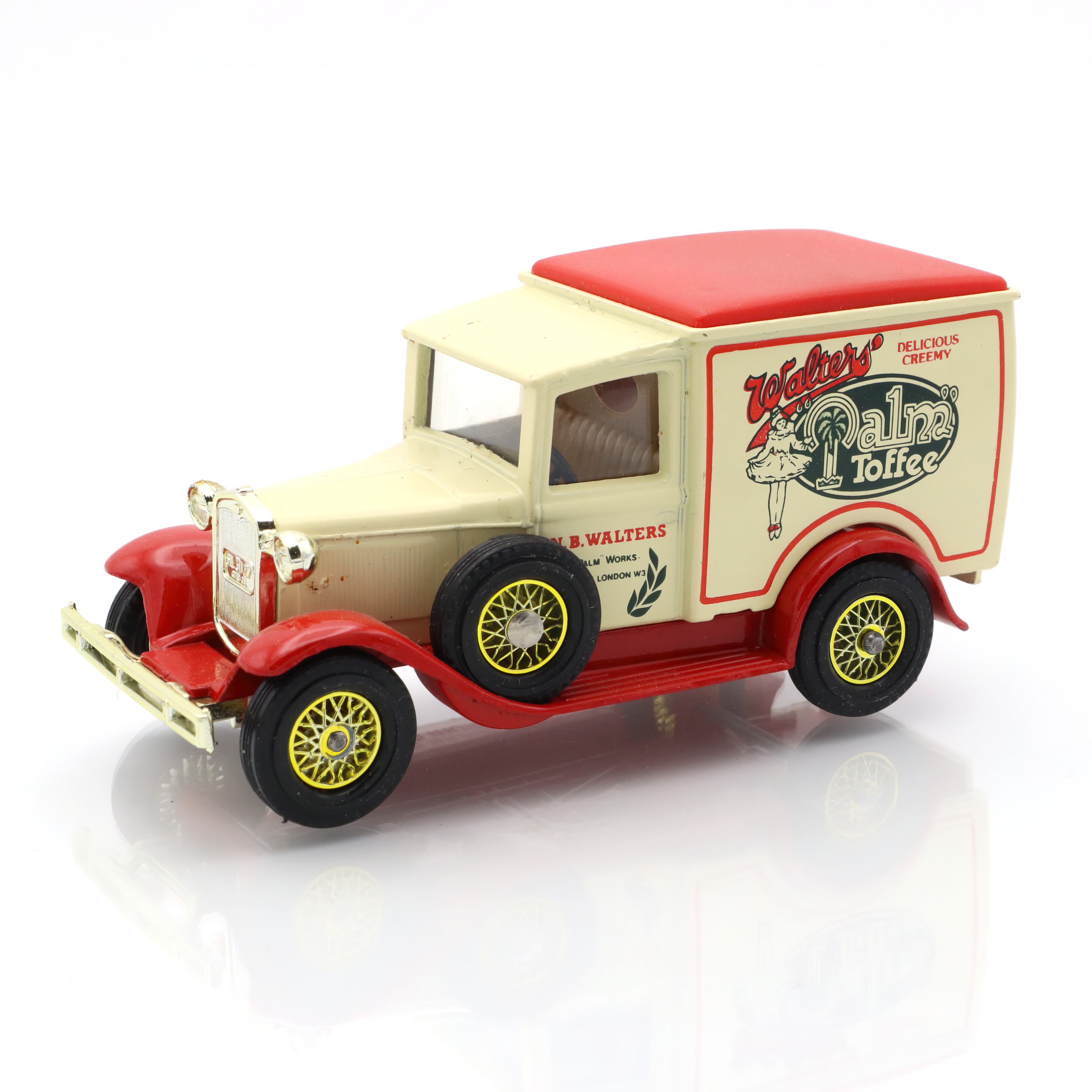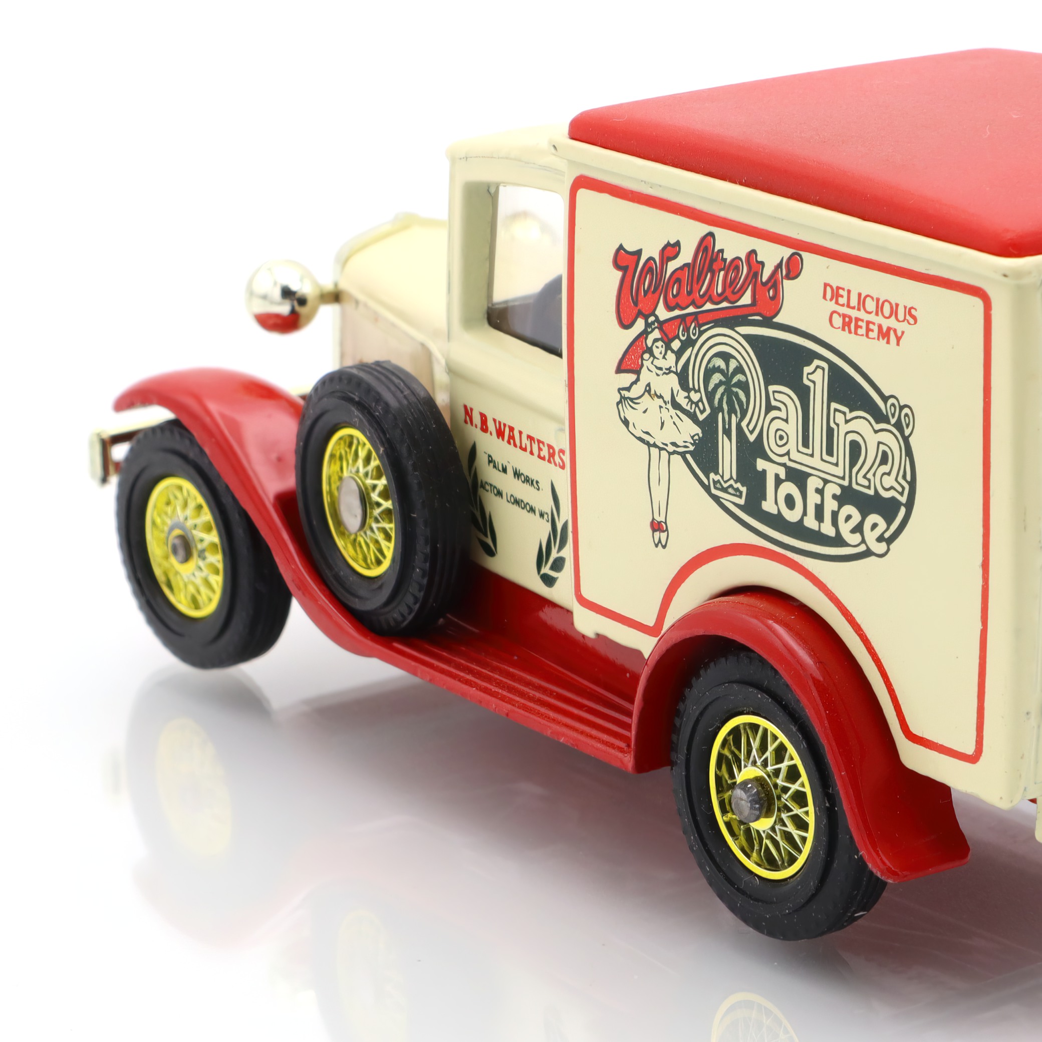 This particular model celebrates an era where vehicles had character, with their vintage contours and decorative signage. It’s a slice of history encased in metal and paint. Those with an eye for historical architecture and design will appreciate the attention to detail that went into replicating the original Ford vans of the era. The Walters logo, advertising a real UK confectionery brand from the time, adds a layer of nostalgia and authenticity, transforming this toy into a miniature piece of history.