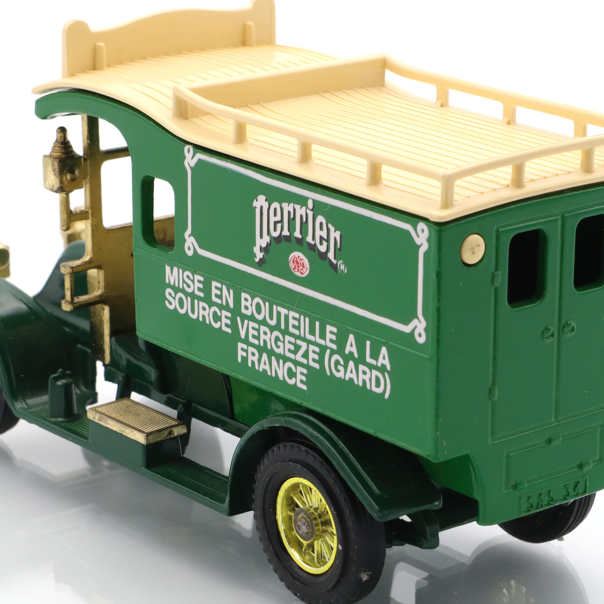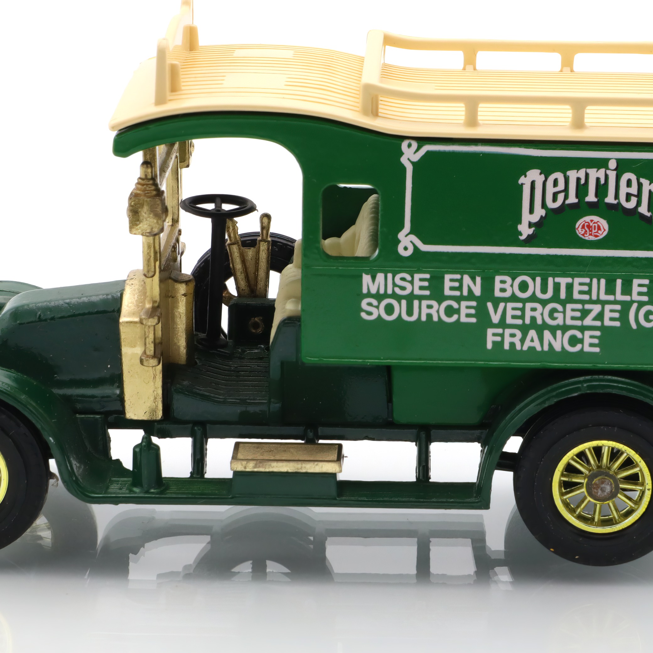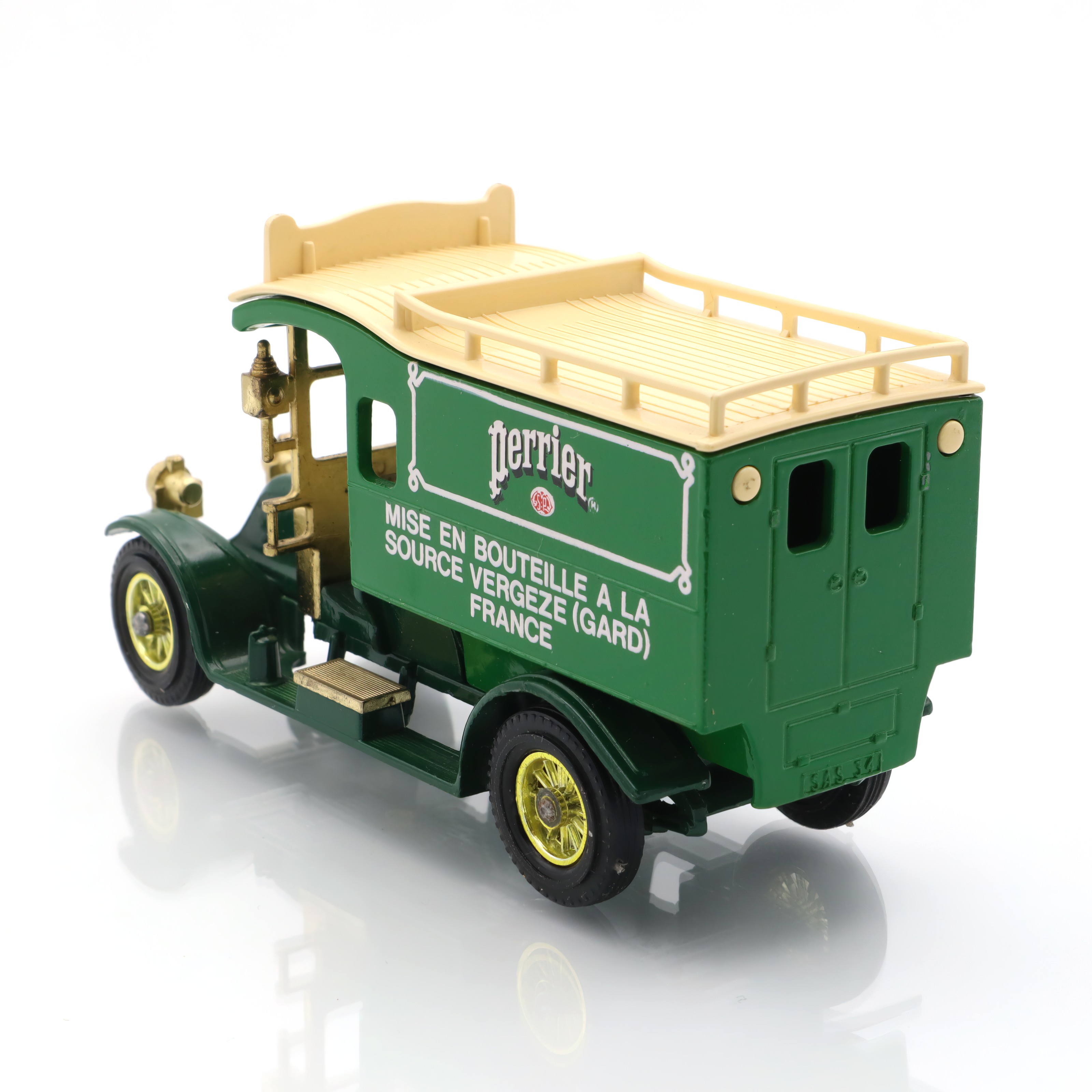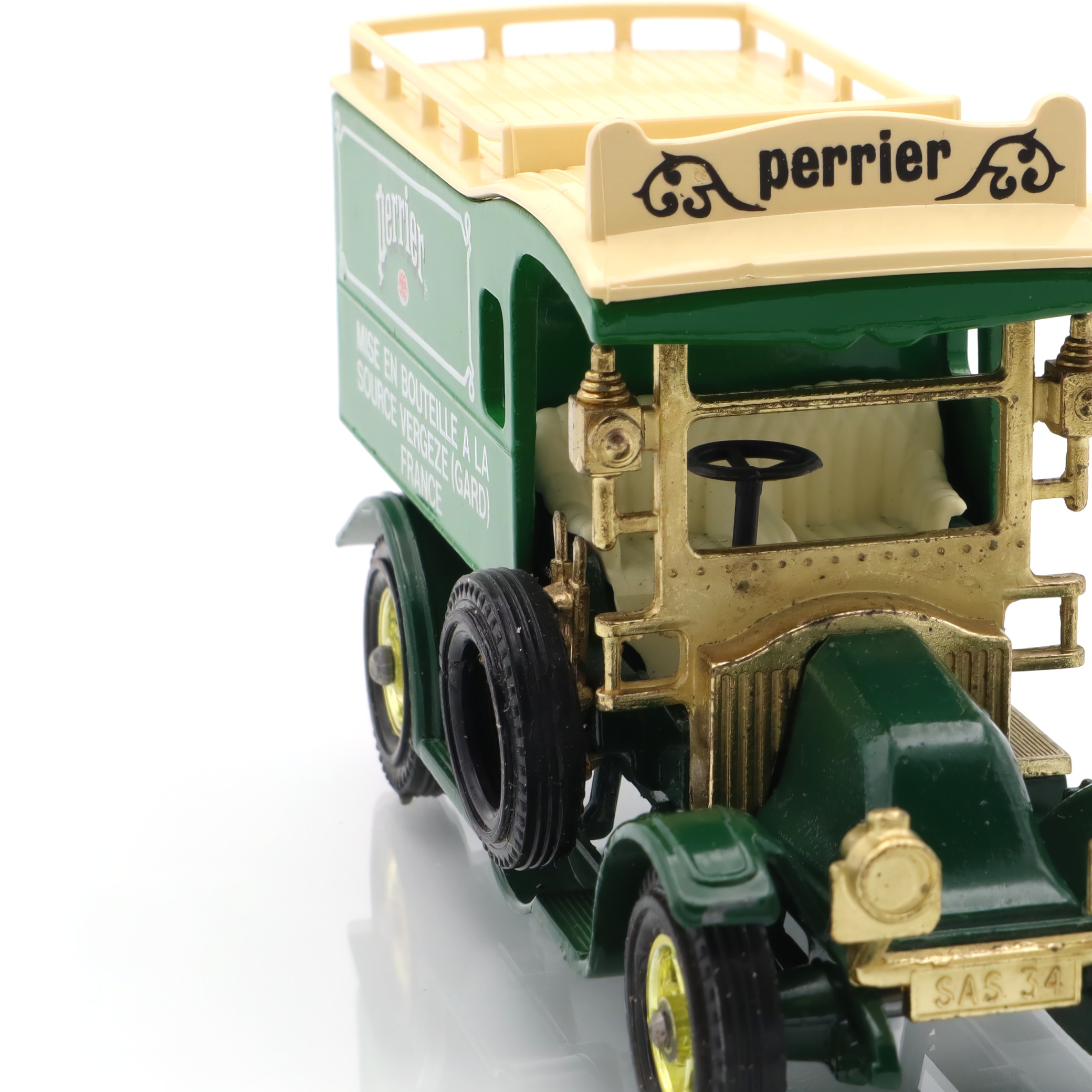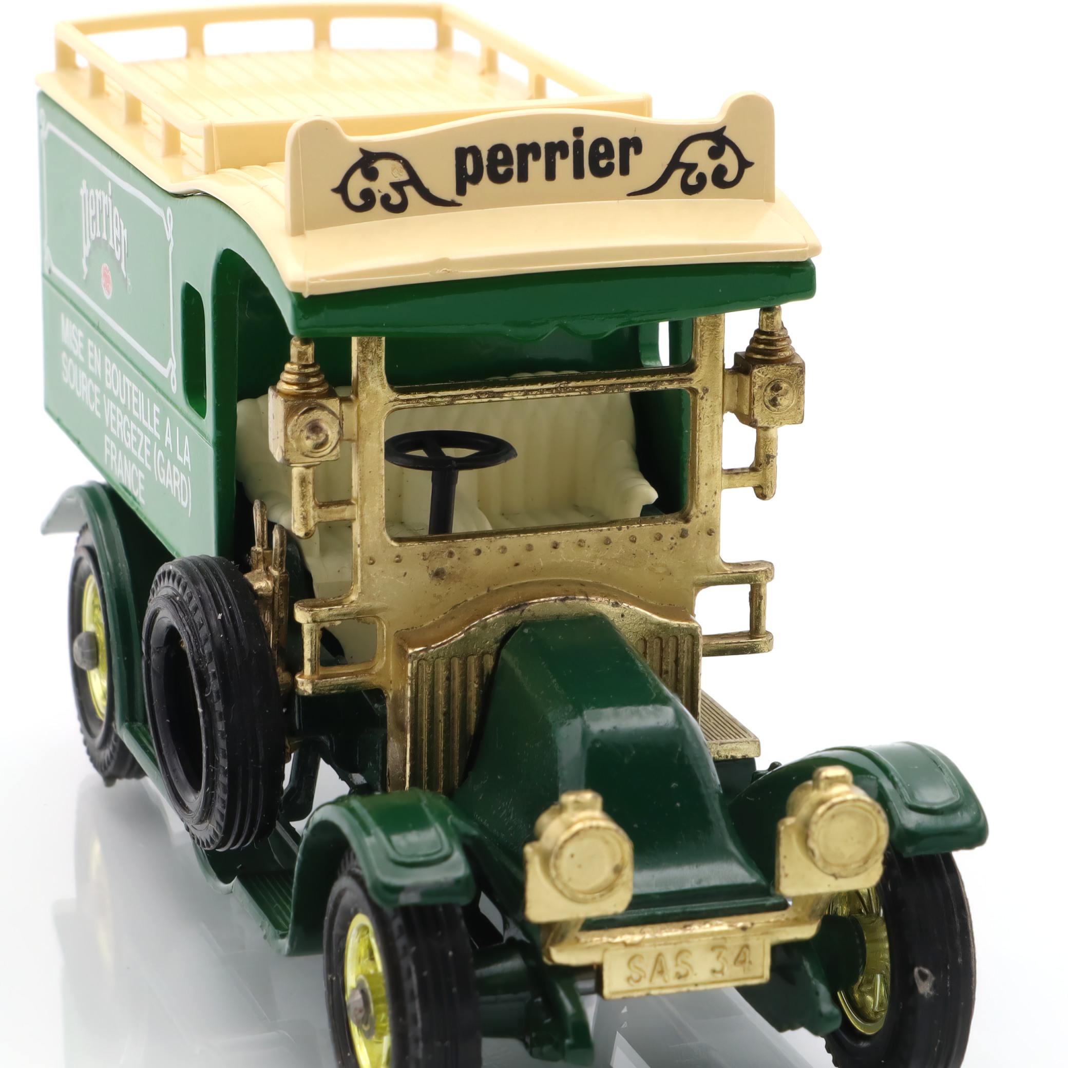 The vintage artifact you have is a diecast model of the 1910 Renault Type AG. This miniature replica is a detailed collectible, showcasing a classic French taxi that recalls the early automotive days. This particular model is from a rare Matchbox edition, and it’s in mint condition, making it especially appealing to antique car enthusiasts. With fine craftsmanship, the model captures the elegance and charm of the original Renault vehicles, featuring intricate detailing in both the bodywork and interior. The delightful color scheme and authentic decals add a touch of nostalgia, transporting you back to an era when this type of car would have been seen bustling through the streets of early 20th-century Paris.