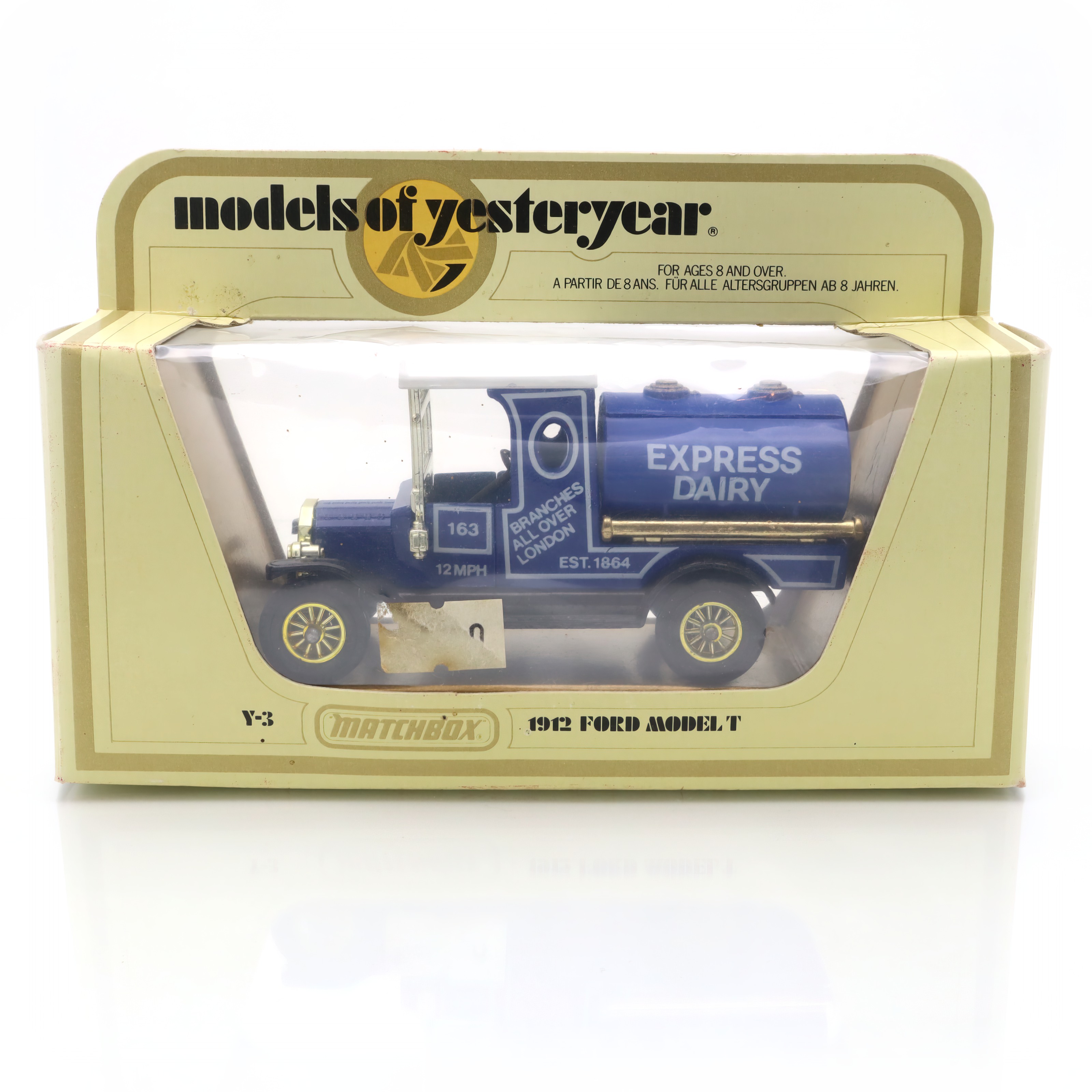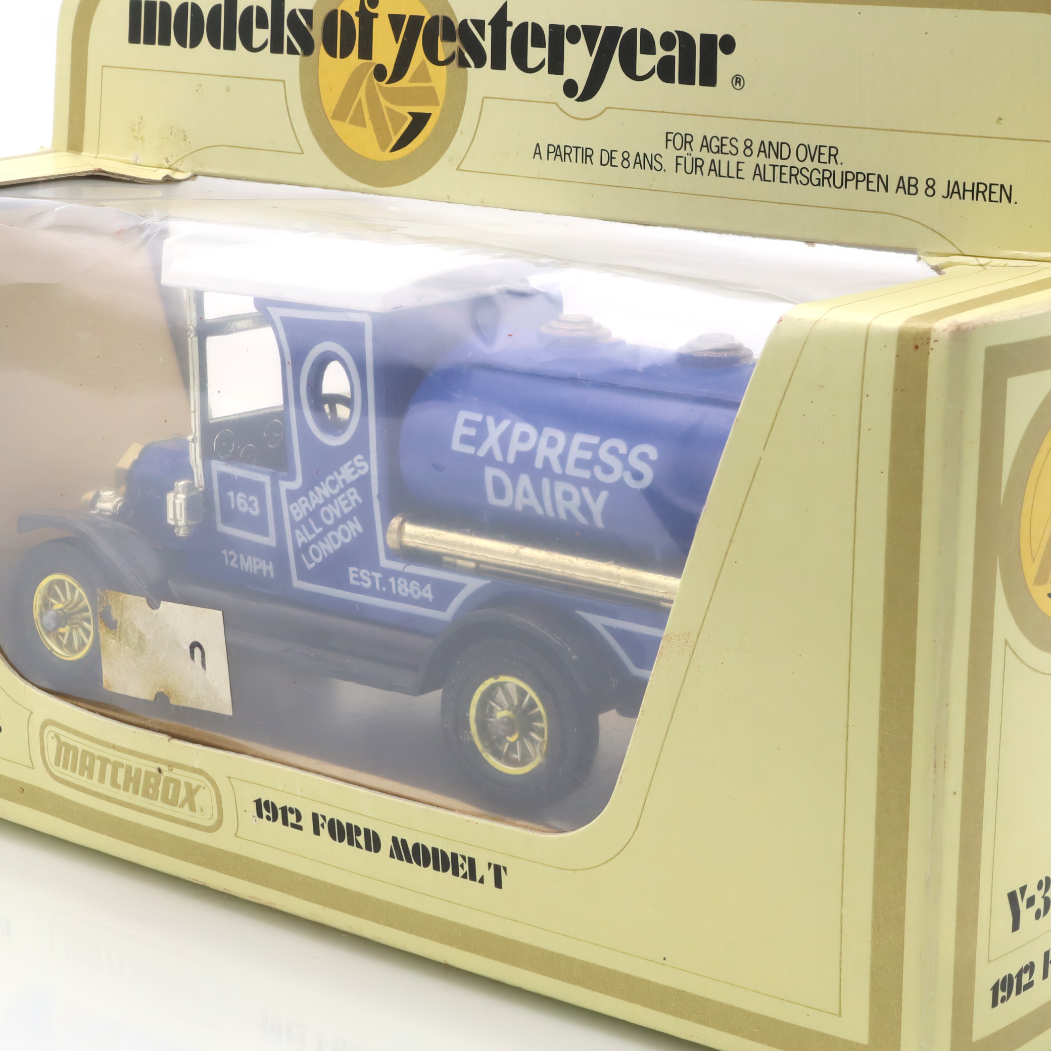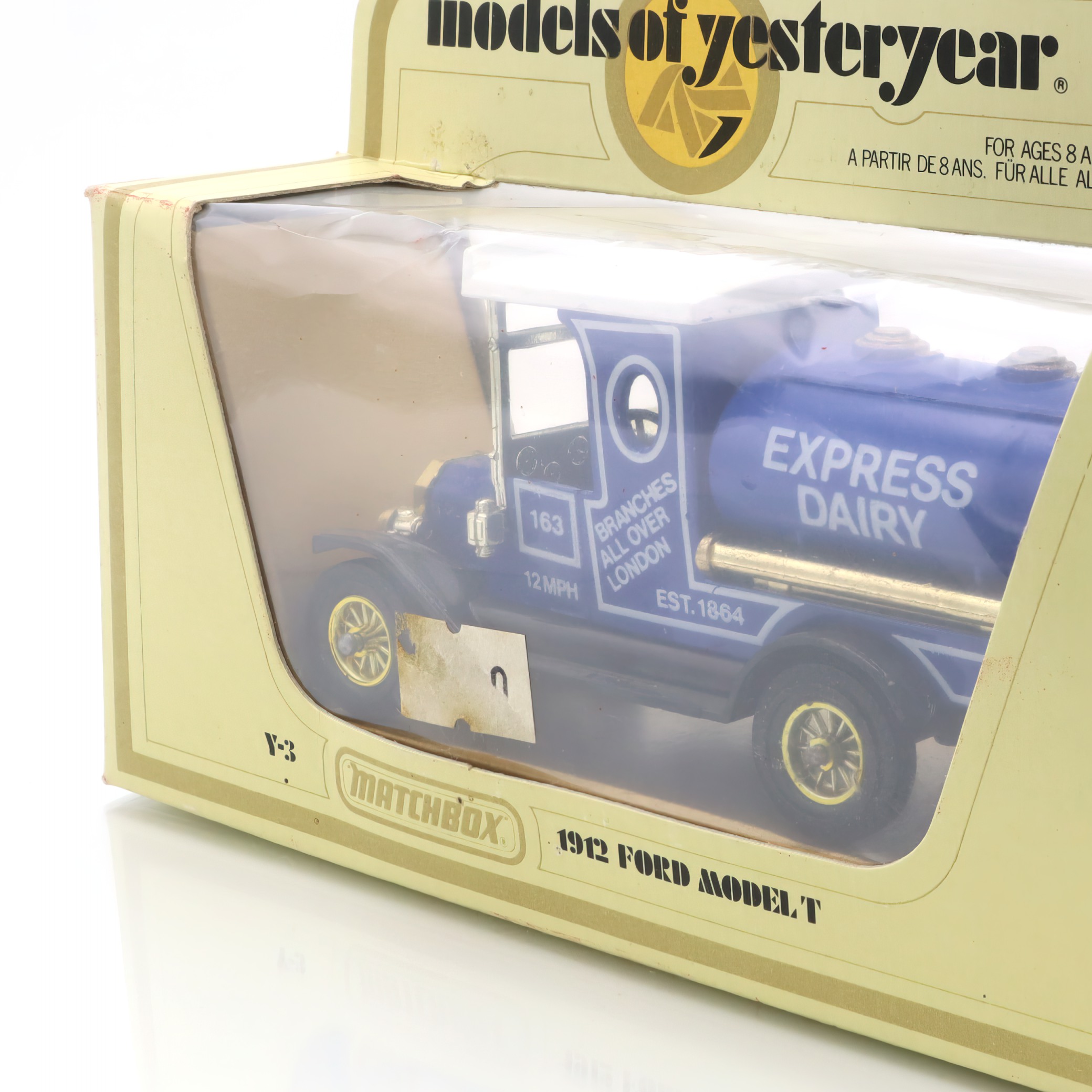 This charming artifact is a Y-3 1912 Ford Model T Tanker, a delightful piece of the Matchbox “Models of Yesteryear” collection. It’s a beautifully crafted diecast collectible, complete with a vibrant “Express Dairy”…