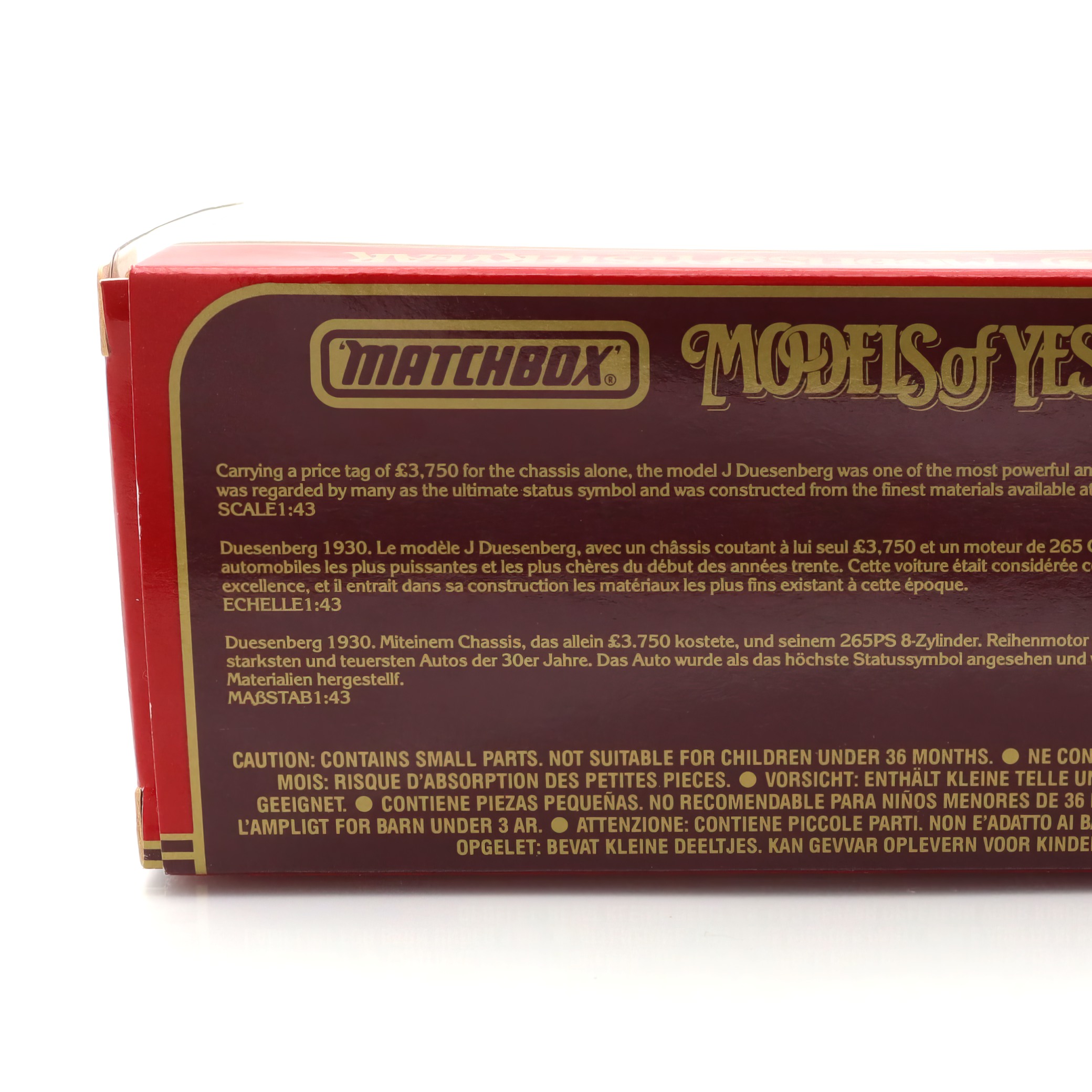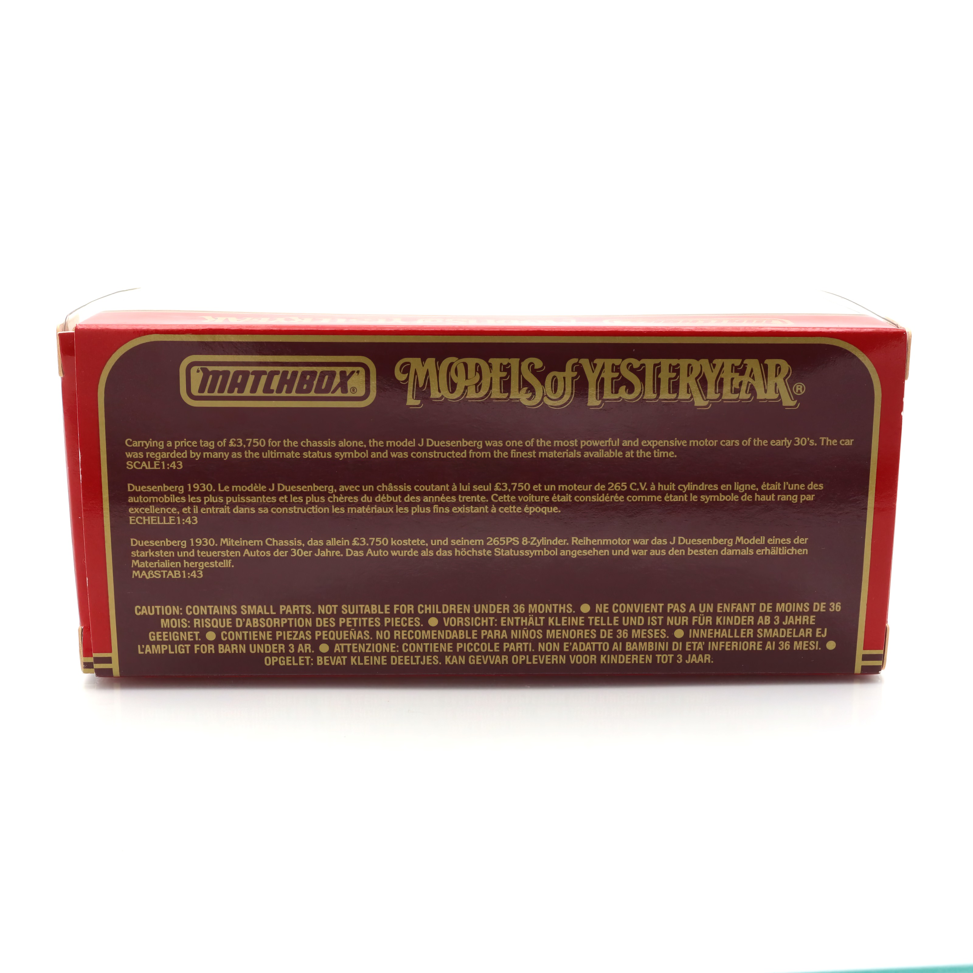 The popularity of Matchbox toys surged in the 1960s and 70s, but it’s the “Models of Yesteryear” series that attracts a niche market of automobile and history enthusiasts. Collectors often seek these models for their authenticity and the craftsmanship that goes into replicating such classic vehicles. The Duesenberg Model J, often depicted as the epitome of luxury in the automotive world, was famously associated with wealth and glamour in the early 20th century, making this particular model an intriguing piece of both automotive and cultural history.