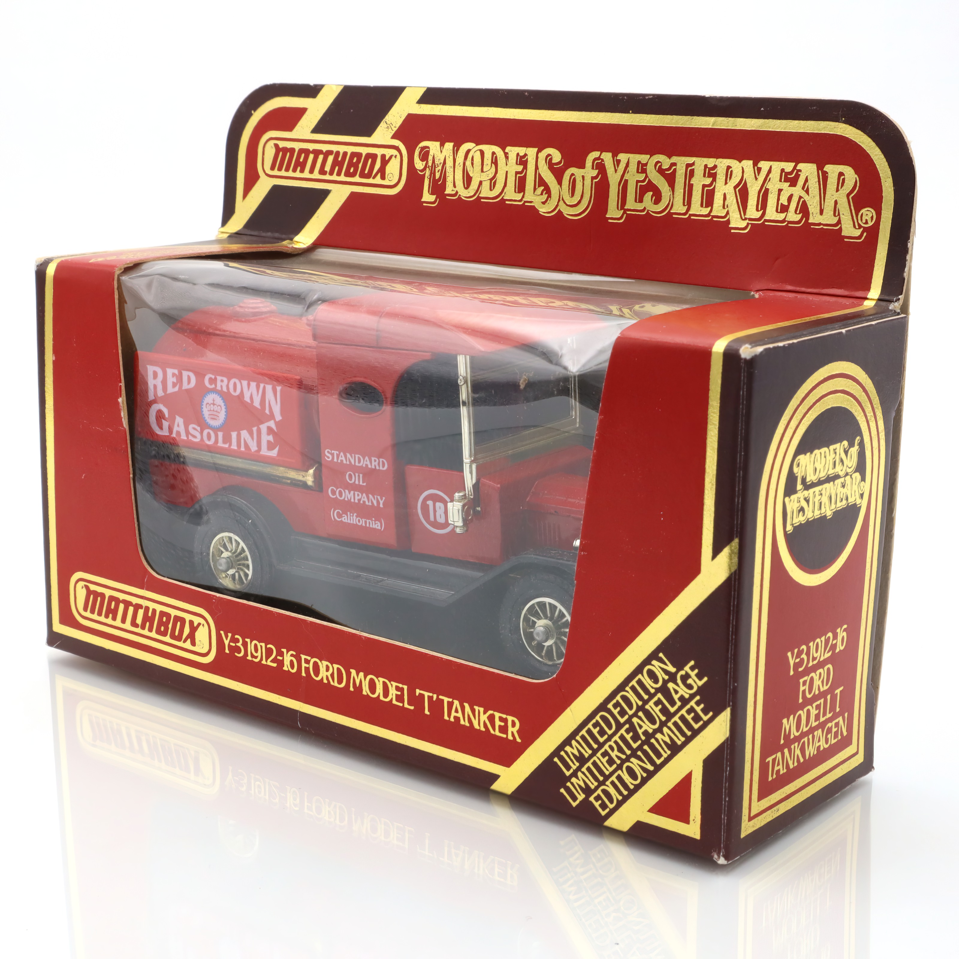 The Y-3 Red Crown Gasoline Tanker is a vintage collectible diecast model that captures the charm of the 1930s. This replica, inspired by the Ford Model T tanker truck, is a vivid throwback to the days when cars were more than just machines—they were a symbol of progress and freedom. The model’s vibrant red color, representing the Red Crown Gasoline brand under the Standard Oil Company, truly stands out. Being in mint condition, it’s a prized piece for classic car enthusiasts, showcasing authentic detailing right down to the logo and design. It’s rare to find models like this in such excellent shape, making it a valuable addition for collectors who appreciate the nostalgia and history embodied in these small yet significant pieces.