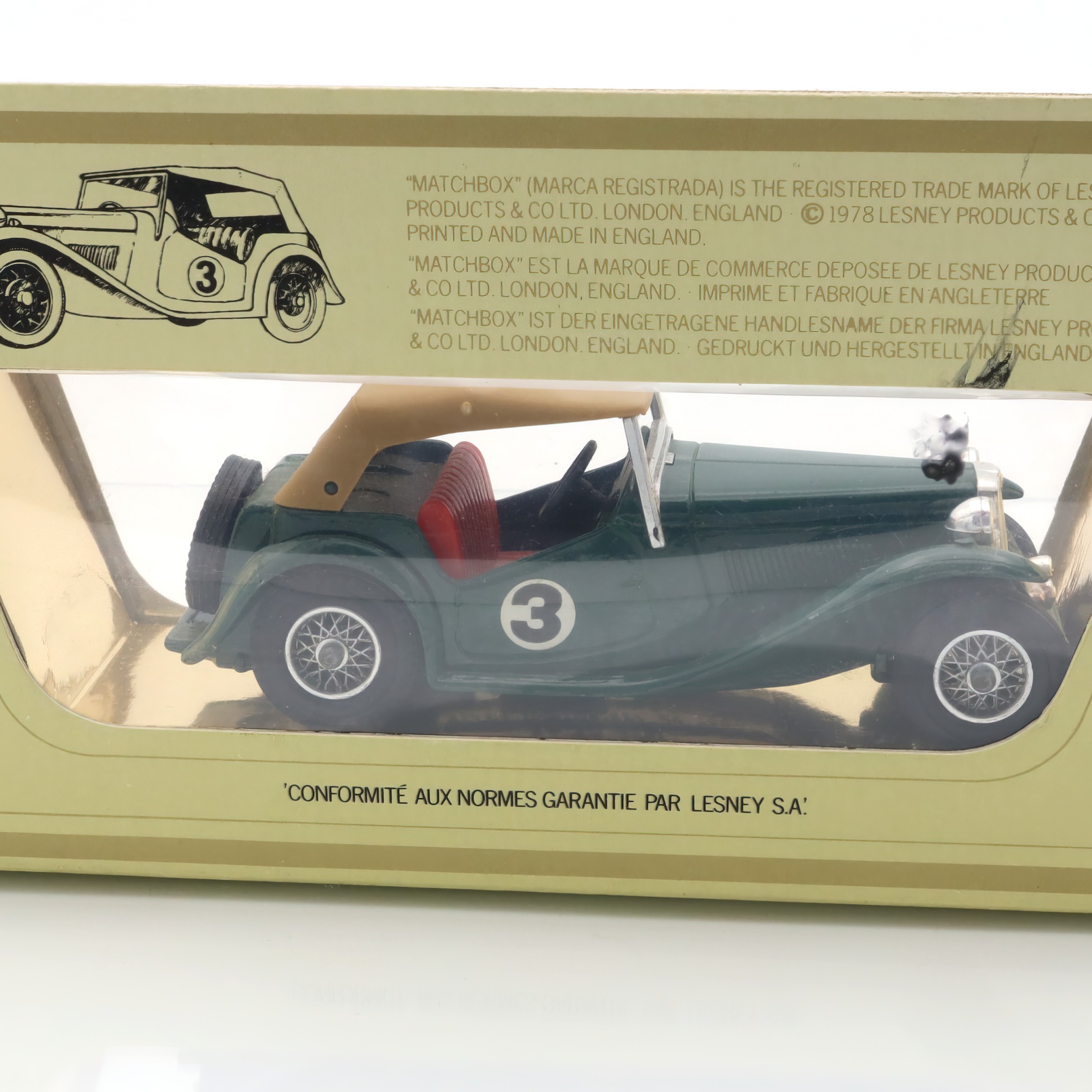The Matchbox brand, known for its iconic diecast cars, introduced the “Models of Yesteryear” line to celebrate classic vehicles from different eras. This series, widely appreciated by collectors, is recognized for its attention to detail and quality craftsmanship. Matchbox began in the mid-20th century and quickly became a household name, captivating generations with its wide range of miniature vehicles. The 1945 MG-TC model, in particular, represents an era of automotive design that is both timeless and elegant. At nearly 80 years old, the MG-TC and its model counterparts are considered rarities, capturing the essence of post-war automotive innovation. Owning such a piece is like having a small slice of history, a pocket-sized reminder of an iconic age in motoring. Ideal for both casual collectors and serious aficionados, this diecast model perfectly balances nostalgia with craftsmanship, making it a standout addition to any collection.