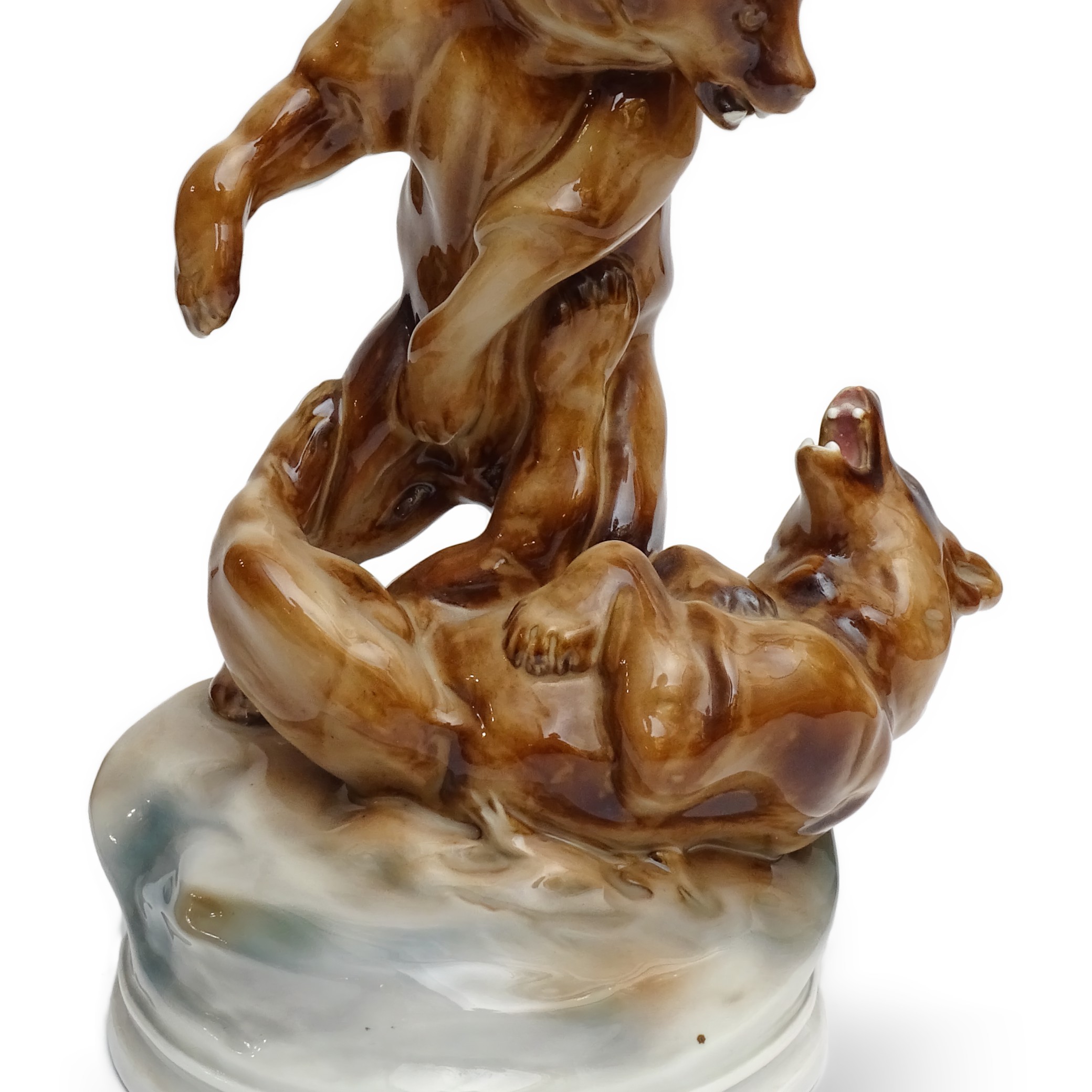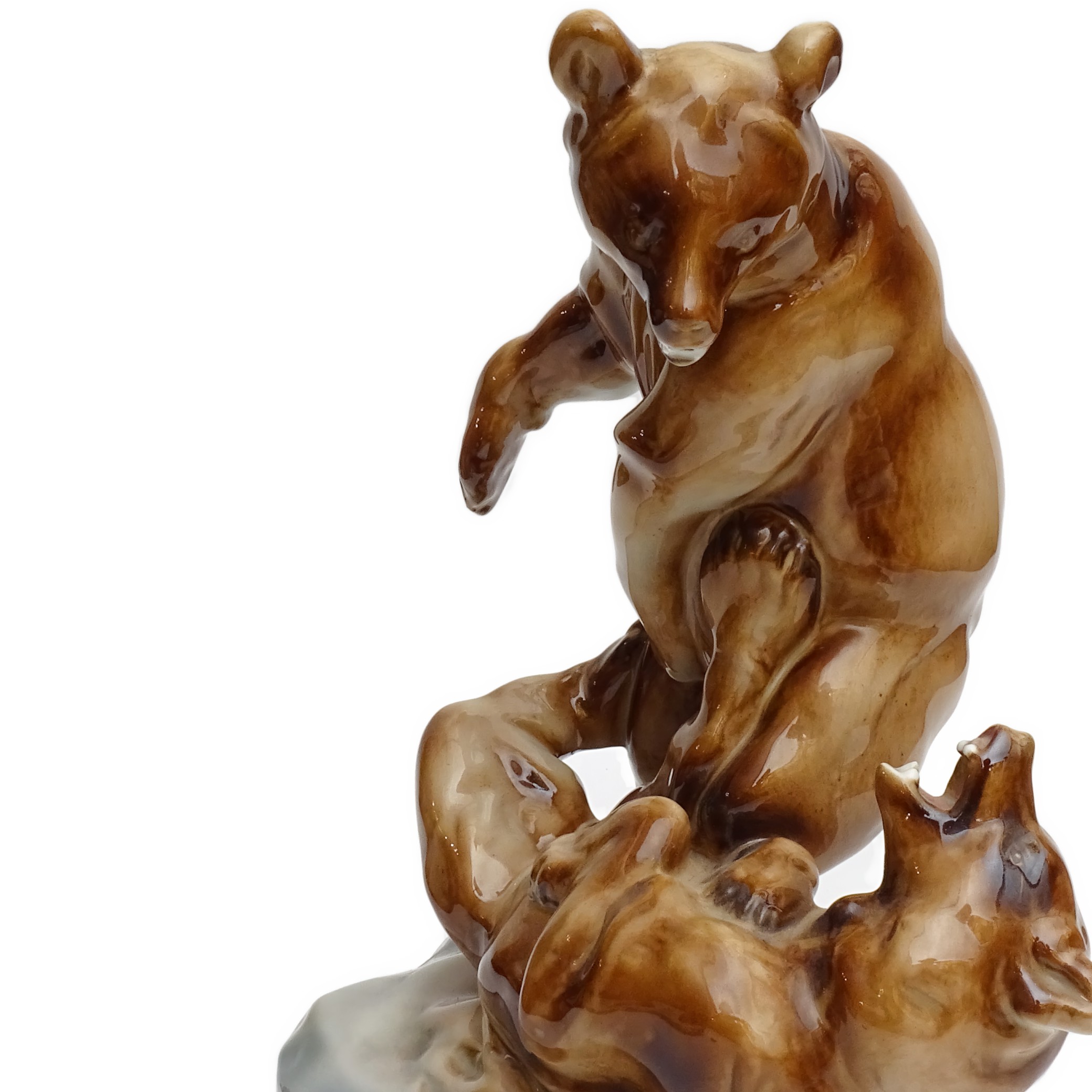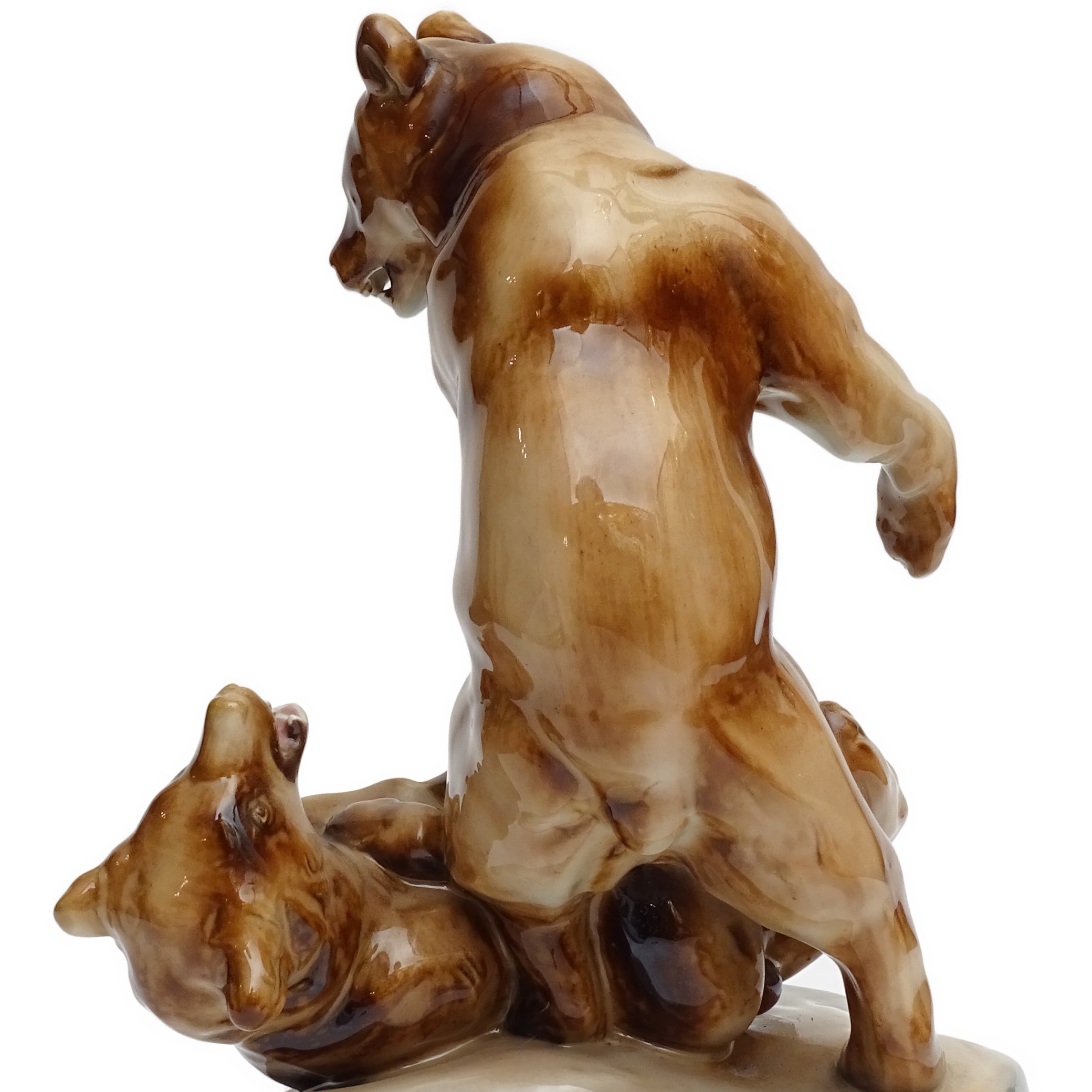 Zsolnay Grizzly Bears - Hand Made Antique Fighting Bears Porcelain Statue