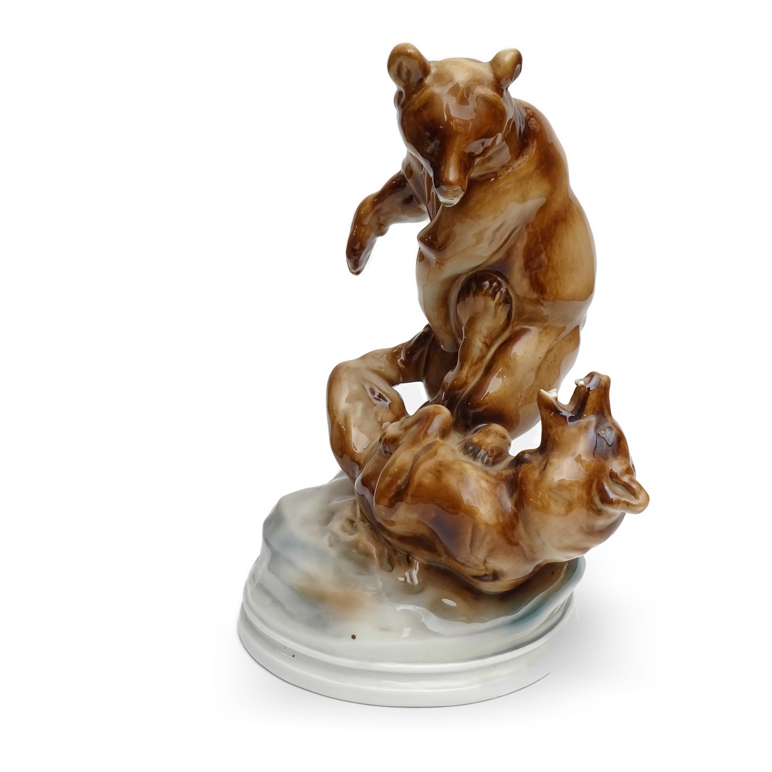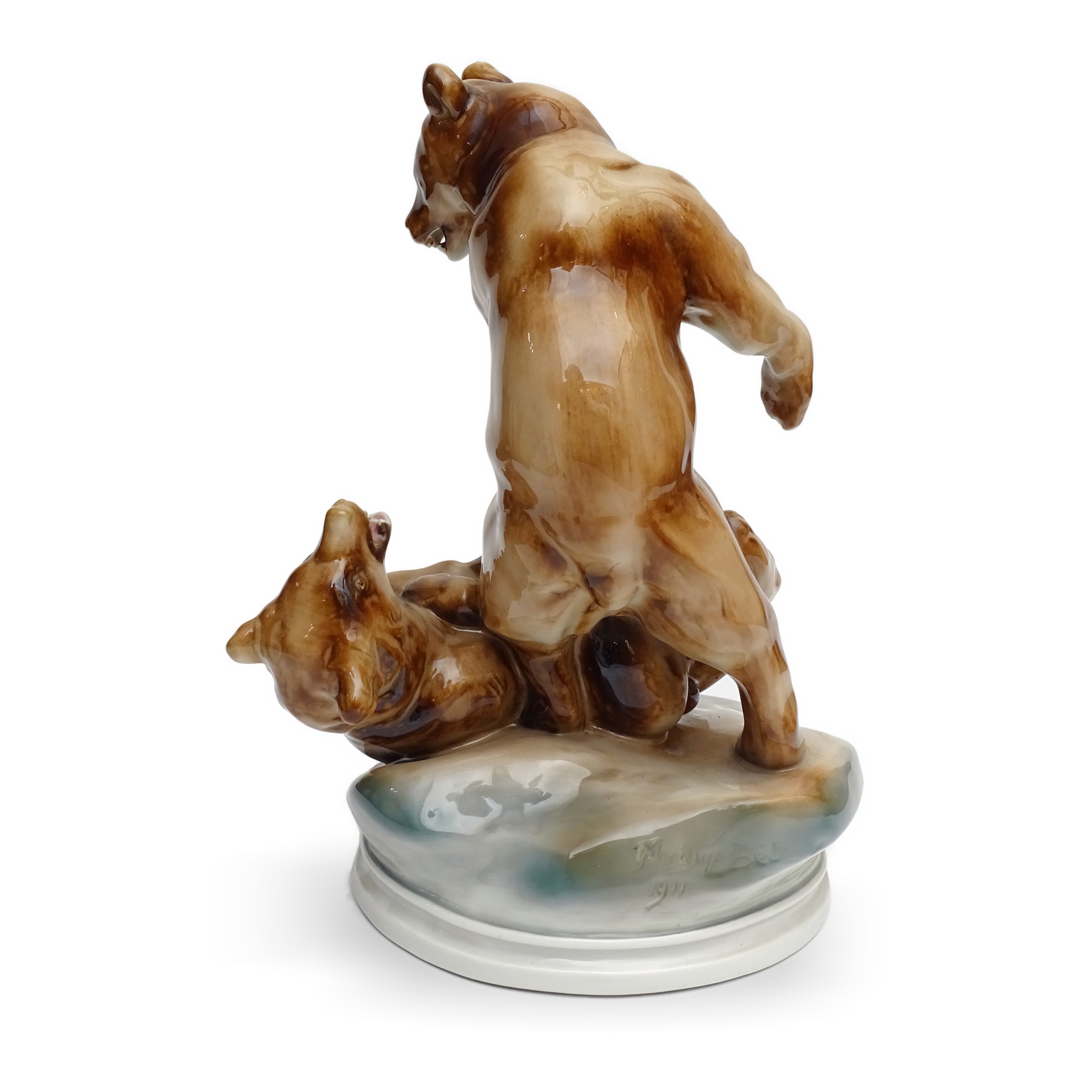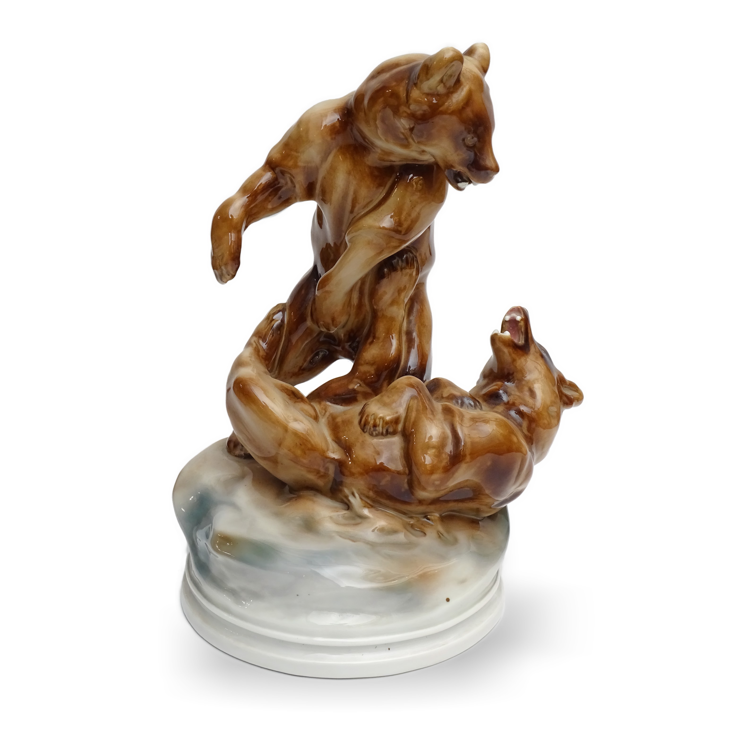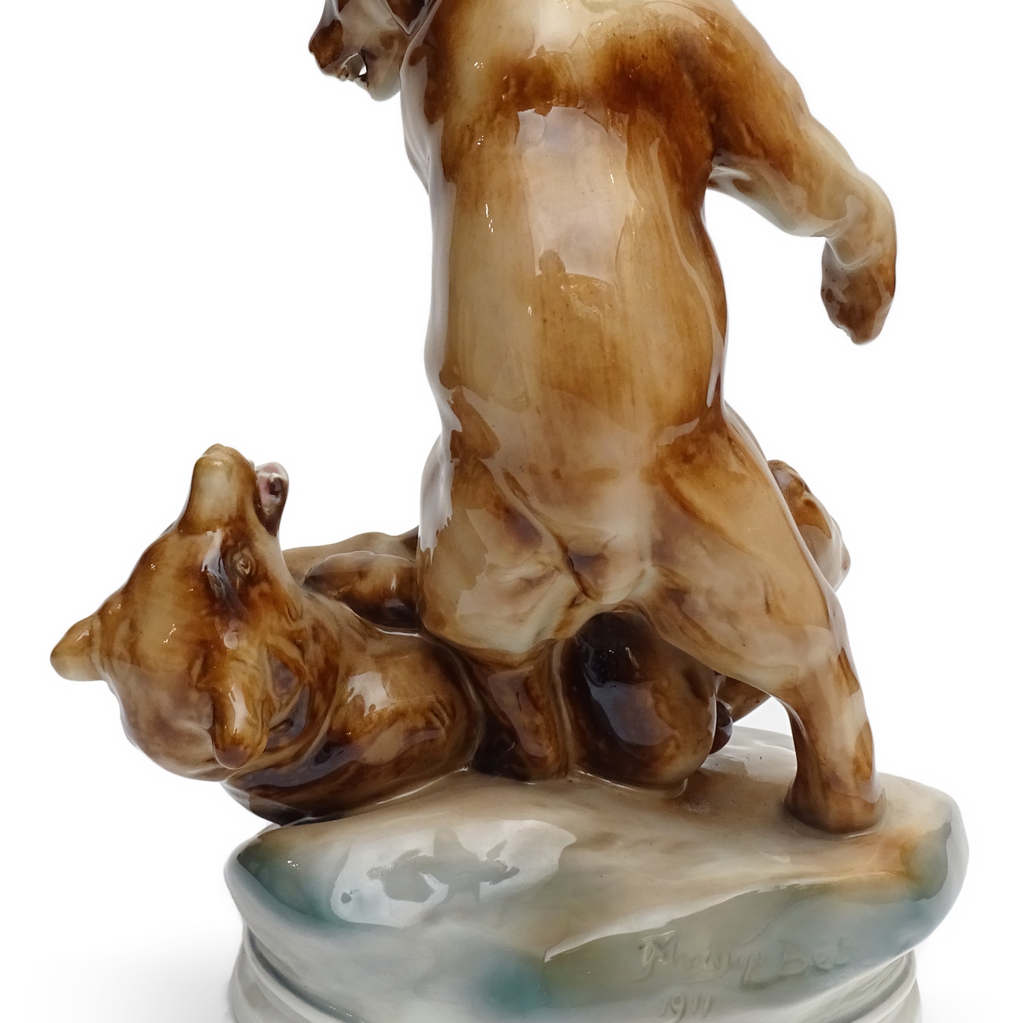 Zsolnay Grizzly Bears - Hand Made Antique Fighting Bears Porcelain Statue